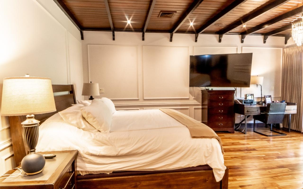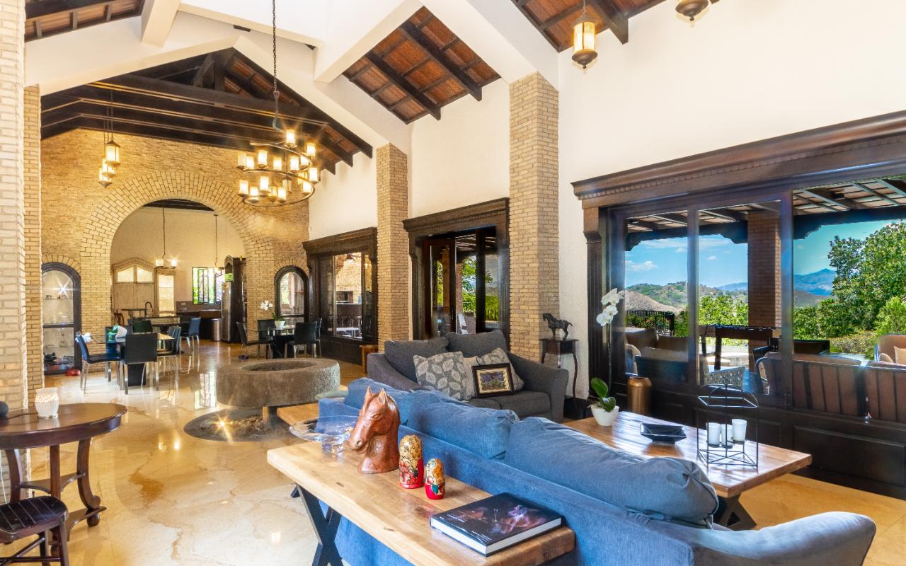 The private wing of Tuscan Estate consists of four spacious and cozy bedrooms, each with an en-suite bath, walk-in closet, and customized ceiling decorations. The master bedroom boasts its own private terrace with panoramic views, and a bath with marble finishes, a Jacuzzi, and skylight. The property also features an independent office structure with A/C, half bath, and large windows offering natural views, and an inferior private level perfect for a home gym, yoga area, or Turkish bath.