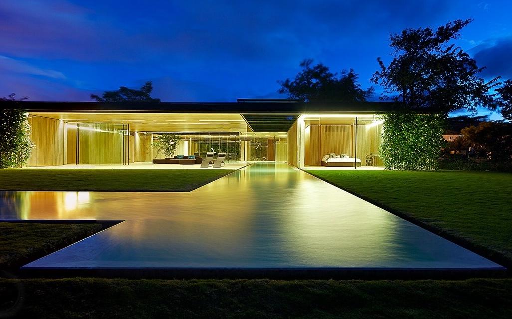 ID# 113897. Luxurious residence for sale in Valle del Sol, Santa Ana, 651 sqm construction, 1.320 sqm land, 4 bedrooms, 4 baths. The Wood House is a luxurious, contemporary and character filled residence that oozes charm and appeal, is a truly unique and highly desirable lifestyle opportunity. Immaculately presented as a new architectural concept designed with practicality in mind, featuring functional materials, on-trend interiors showcasing local wood floorboards and walls, and floor-to-ceiling expanses of glass. Perfectly intertwines its 651 sqm architectural structure with the surrounding nature within its 1.320 sqm lot. Superbly ambitious concept that meticulously creates a unique ambiance for every space where structural boundaries are blurred by layers of glass, vegetation, water and the sky itself. Wood House is a stunning home that offers a centrally located open plan layout at its best with cleverly designed, spacious social areas featuring a fully luminous living room, a comfortable TV/family room (or gym), a splendid kitchen with a spectacular granite table and high-end Bosch appliances, a marvelous terrace facing the 25-meter swimming pool with one of the most amazing and jaw-dropping designs ever: starting inside the house and leading towards the garden. An extreme glow of natural lighting bursts into the gorgeous living room by the craft-designed glass ceiling. The kitchen is a statement of class and elegance without sacrificing on function, where the gloss of the absolute black granite dematerializes through its reflections and shapes a sculptural floor that forcefully outstands over all the social area. All the 4 full bedrooms are smartly arranged along the peripheries of the social zone, leaving an intermediate space between the private areas and the volumes for social use. The house responds to the existing landscape characteristics and adapts to the topography of the place, swirling around its primal goal of openness and see-through concept where nature plays a mayor roll of being the cover-up and privacy guardian of this majestic home.