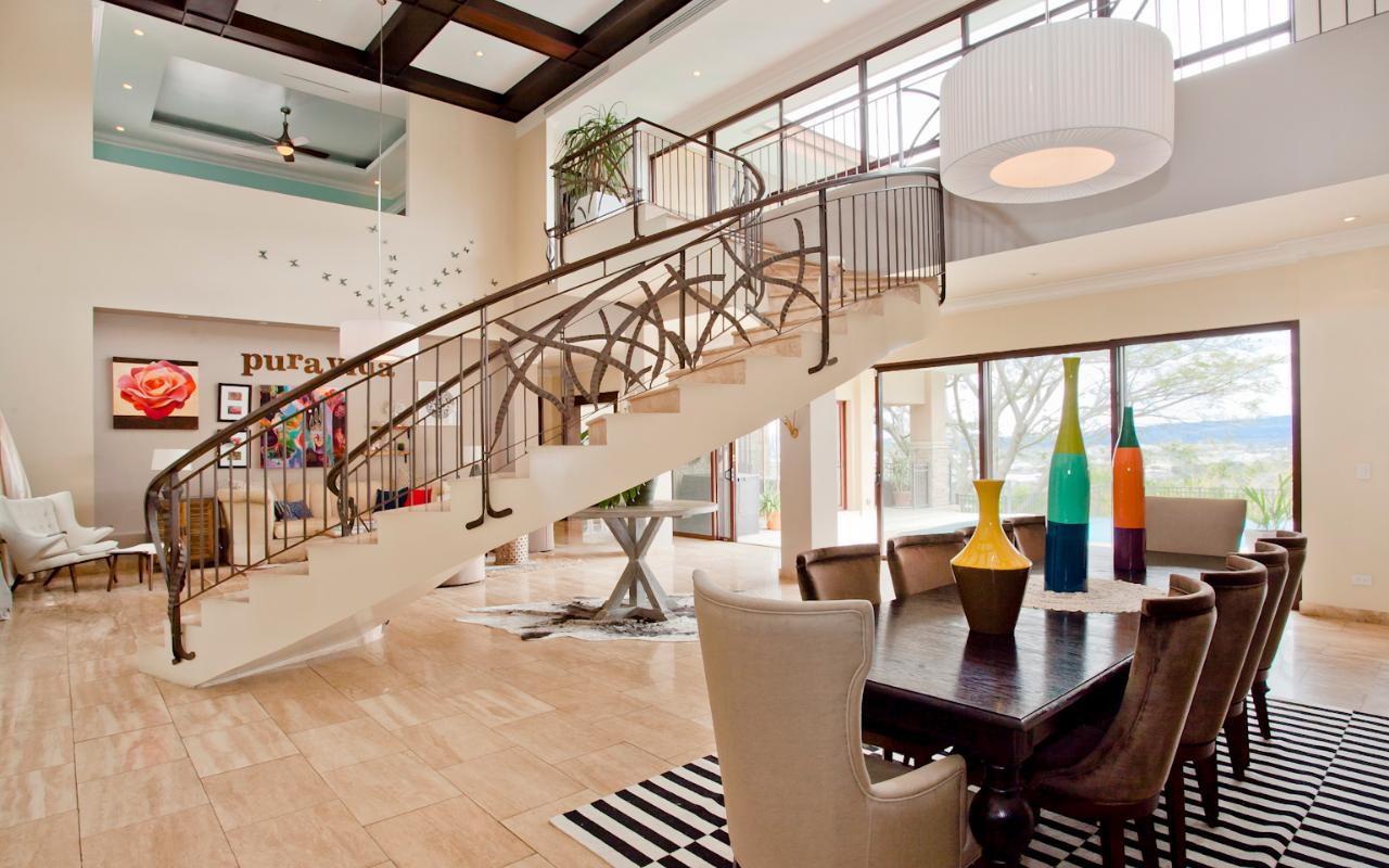 Located in lower E section, this home is located at the end of a cul-de-sac, providing the utmost in privacy, exclusivity, and of course, unobstructed postcard views. The owners of this residence from design took advantage of the views to provide an iconic impression upon arrival home. Unlike most residences in Villa Real with challenging entries, this estate residence welcomes you with an expansive, flat driveway with plenty of parking, leading to the home’s spacious 3 car oversized, enclosed garage. It’s landscaping and contemporary facade with stone accents welcomes residents and guests highlighted by its custom high metal weave double door. While the exterior of the home is impressive, as the doors open, the wide two-story atrium, winding staircase, sky and valley view’s capture even the most critical eye. Following the impactful entry, eyes are drawn to the details such as the marble floors, floating staircase, and intricate wood ceiling design framing the space. The second floor hallways and lofts are designed for the view and to overlook the main level while providing a homey feel to this magnificent estate. The main level takes you through the formal living and dining room split by the impressive marble staircase. To the left in the “west wing” a spacious home office, a large casual TV living room boasting access and views from its covered terrace of the valley of Santa Ana, and guest bathroom with jaw dropping custom finishes from the quartz countertops, imported cabinetry, and lattice door woodwork found throughout the home. Returning through the formal living area the exterior balconies with roll down shades wrap around the entire back of the home along the infinity edge pool and jacuzzi, raised green terrace and BBQ area. Inside the “east wing” of the home you find its bright breakfast nook, functional open kitchen with expansive island and gas range, along with state of the art appliances. The kitchen’s open floor plan with TV family room is ideal for entertaining family and friends. Conveniently down the hall from the kitchen, is another guest bathroom, mudroom to hang backpacks and soccer shoes leaving the home clean as you come from the home’s oversized 3-car garage. Off the hallway is a large sunny laundry room, and private service quarters. Take the elevator down to the lower level and spacious home gym or theatre room with full bathroom and steam shower, or upstairs to the upper level instead of using the main central staircase or spiral stairs on the terrace bringing you to the private quarters of the home. The “west wing” of the upper level includes a TV room open loft, and a bedroom with walk in closet, private bathroom and balcony with sunset views. On the opposite wing, you find a true master suite. The balcony with endless valley and sunset views, his and hers walk-in closets, and a true, spa inspired master bath. His and her dual vanities, and a free standing tub sits in front of the private rain shower with its overhead and wall jets providing a luxurious experience. Along the hall, overlooking the main level is an upstairs kitchenette along with work or study space and the two other expansive bedrooms with walk-in closets sharing a large split bathroom. This home is a custom masterpiece combining intelligent design and functionality built to the highest standards ideal for comfortable family living. Features: Heated private pool and jacuzzi, multiple terraces with stunning views, elevator, home gym or theatre room, triple garage, air conditioning, maid’s and exterior workmen’s quarters.