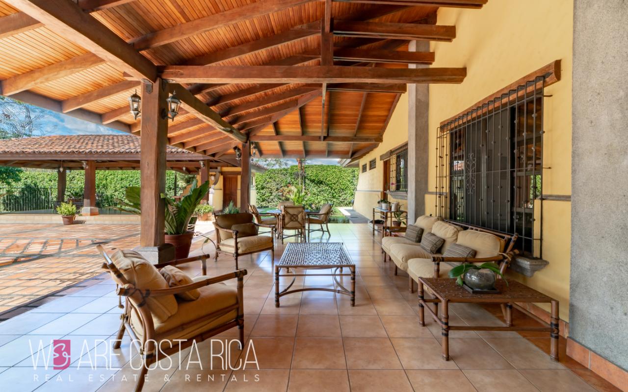 ID# 114077. Luxury house with pool for sale in La Guácima, Hacienda Los Reyes, 1.500 sqm construction, 7.162 sqm land, 10 bedrooms, 8.5 baths. Welcome to a world of refined luxury and unrivaled elegance, where nature and sophistication intertwine to create a harmonious living experience. This remarkable estate, situated in the exclusive enclave of Hacienda Los Reyes, is a rare gem that epitomizes the epitome of luxury living in Costa Rica. Sprawling across 7.162 sqm of prime land, this grand property boasts an impressive 1.500 sqm of construction, with an exquisite blend of colonial architecture and modern amenities that offer the ultimate in comfort and style. From the moment you step into the property, you will be captivated by the lush greenery, manicured gardens, and the serene ambiance that envelops this idyllic retreat. The magnificent estate features a stunning main home that is designed to keep you cool and refreshed, even on the hottest of days. With large social areas, including terraces, decks, a pool house, swimming pool, and well-maintained gardens, this home is a perfect oasis for those who appreciate the finer things in life. The spacious living room with its double-sided fireplace is the perfect place to entertain guests, while the four bedrooms with two shared bathrooms offer ample space for your loved ones. The master bedroom, complete with air conditioning and a luxurious jacuzzi, provides the perfect sanctuary for relaxation and rejuvenation. The social area/tv room and staff quarters complete the picture of comfort and convenience. In addition to the main home, there is a second home on the property that is equally luxurious and sophisticated. With a modern renovated kitchen, full bedrooms, and bathrooms, this home is perfect for accommodating an entire family comfortably. The second home is an ideal place to host guests or to provide extra space for family members. One of the most unique features of this estate is the third building on the property, which is dedicated to the equestrian lifestyle. With seven stalls for horses on the ground level and straw and saddle rooms, this building is perfect for those who love horses and want to keep them on their property. The second floor of this building features an apartment with a terrace that offers breathtaking views of the principal polo field of the country. This two-storey structure is the only one on the property, and the rest of the buildings are comfortably built on one level, ensuring easy access for everyone. The property is perfectly flat, with lots of greenery that provides a sense of calm and tranquility. The colonial buildings are built with the best materials and have been designed to provide the ultimate in comfort and luxury. The location of the property is convenient, as it is just minutes away from the major Route 27, which can take you to the city or the beach. However, the property is located off the main road through an agricultural easement, which means that privacy and peace are guaranteed. And what's more, beyond the backyard of this magnificent estate, you will be treated to the premier polo field of the country, providing a truly unique and exclusive view. This is truly a special property that offers the best of both worlds - Colonial life with urban living. It is the perfect place for a family who wants to be close enough to major urban areas but wants the advantages of quiet and peaceful ranch living. Whether you want to keep horses, be in touch with nature, or simply want to enjoy the luxury and sophistication of this magnificent estate, this property is the perfect place for you.