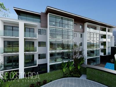 Contemporary apartment with amazing views for rent in Escazú, exclusive condominium, 90 sqm construction, 2 bedroom, 2 bathrooms, US$1.500/mo. Comfortable unit with fine finishes and featuring an open concept social area that integrates living, dining and kitchen, space characterized by its floor-to-ceiling windows for abundant natural light and incredible panoramic views. The private area features 2 bedrooms, master with walk-in closet, and 2 full baths. Parking space for 2 vehicles and a 1.5 sqm bodega. The condominium has 24/7 security and amenities like club house, pool, gym, sauna, Turkish bath, walking trails and yoga decks. Excellent location, close to supermarkets, shopping malls, banks, schools, medical centers, restaurants, entertainment venues and the route 27.