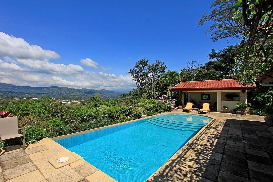 Beautiful TURN-KEY luxury dream villa for sale in Atenas with guest house! Privately located in a quiet exclusive gated residential area. The entire property offers magical mountain views and is blended in tropical flowers and plants. The property even has it’s own little coffee plantain. This luxury 355 m2 house sits on a 7000 m2 of land and is built in 2007. Located on a private hill in a residential area with a guard and controlled access. The entire property is very charming and decorated in French Style with high-quality furniture. When entering the main house you’ll find a beautiful spacious and bright living and dining area with high ceilings. The mesmerizing view to the terrace with infinity pool and the mountains makes you feel you arrived literally in paradise! The main house comes with 3 good size bedrooms, 3 full and 1 half bathroom. The beautiful European-style kitchen is fully equipped and comes with all the modern appliances, including a wine cooler. The sliding doors towards the terrace can all be opened, so you have a very nice breeze coming into the house. Next to the swimming pool is a bbq area with at the rear a working place. At the side of the house is a very nice terrace surrounded by a tropical garden full of birds, flowers and other wildlife. On this side of the house is a laundry area. The guest house is privately situated and has a construction area of 55 m2. It comes with one charming bedroom with two queen beds, a full bathroom, kitchen and a side room which can be used as a 2nd bedrooms or office. Furthermore, guests can enjoy the terrace with amazing mountain views! This property can be sold completely Turn-Key including furniture and decoration. Price discussed.