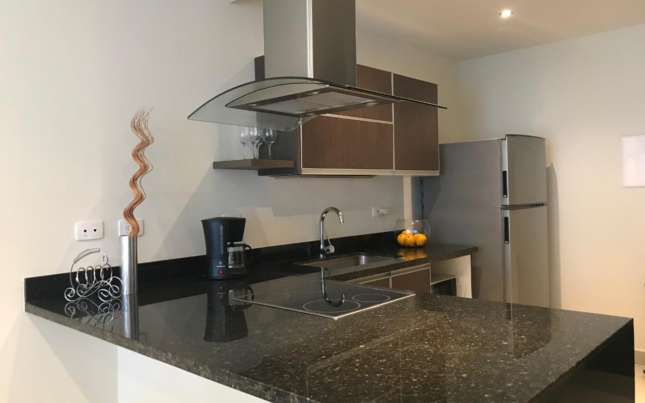 Furnished apartment for rent in Santa Ana, exclusive condominium, 72 sqm construction, 1 bedroom, 1 bathroom, US$1.000/mo (maintenance fee, Internet and cable TV included). Contemporary apartment featuring an open concept design with fine finishes that integrates living, dining and kitchen with breakfast bar. Small private terrace. Laundry room with tower washer/dryers. Private area featuring one bedroom and one full bath. A/C in all the unit. Parking space for 1 vehicle. Ideal for newlyweds, young couples or single executives. Exclusive condominium with excellent location, close to supermarkets, shopping malls, banks, schools, restaurants, entertainment venues and route 27. Amenities: security 24/7, pool, BBQ area, playground and tennis court.