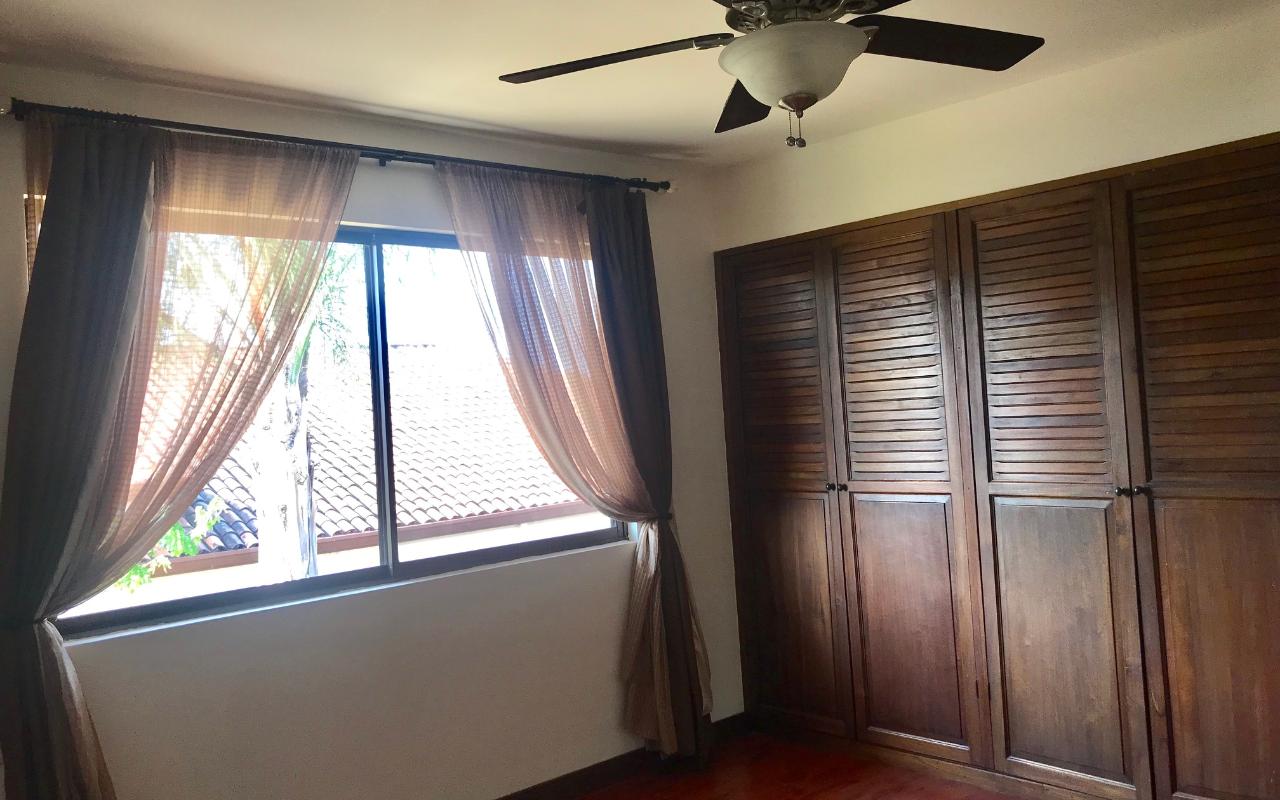 ID# 114309. Beautiful classic home for rent in Santa Ana, Hacienda del Sol condominium, 433 sqm construction and 586 sqm lot, 3 bedrooms, 3 bathrooms, US$3.500/mo (includes maintenance fee and appliances). Two-story house featuring traditional architectural design with fine finishes and elegant touches in vaulted ceilings and woodwork details. The first floor has a nice entrance vestibule, leading towards the social area with living and formal dining. Ample kitchen with beautiful cabinetry set, breakfast bar and equipped with stove, dishwasher and fridge. Laundry room with washer/dryer, large bodega, full service quarters. The second floor features a TV room, office, 3 bedrooms with private bath and attic. Outdoors, nice terrace with BBQ area facing the back garden. Garage for 2 vehicles. Hot water tank with hydro-pneumatic pump supplies all the house. Private, secure and exclusive condominium which offers a great environment for families. Amenities: pool, BBQ rancho, playground, parking for visitors. Excellent location, close to supermarkets, renowned shopping centers, fine restaurants, popular entertainment venues, private schools, financial entities and the route 27 to the Pacific coast.