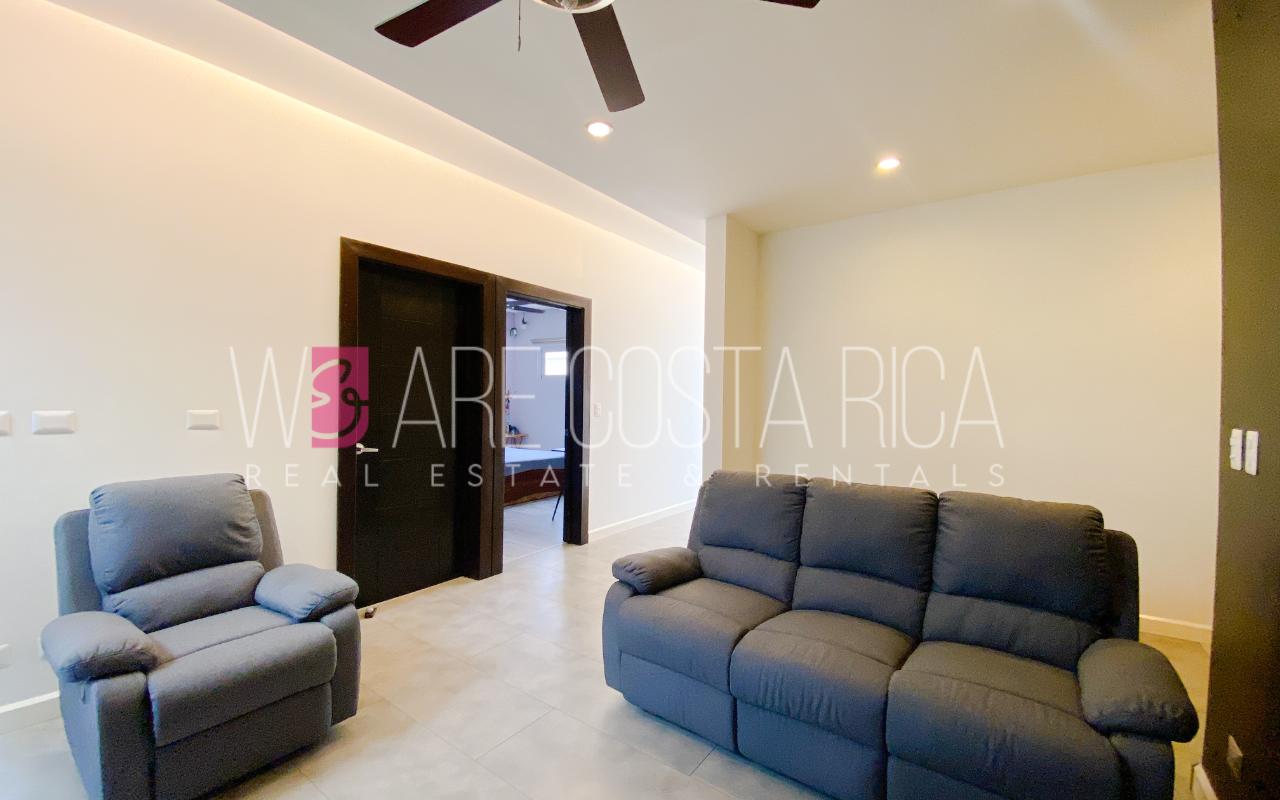 ID# 114362. Spectacular contemporary residence for sale in Hacienda Los Reyes, La Guácima, 630 sqmt construction, 1.300 sqmt land, 4 bedrooms, 5 baths, US$850.000. Dream modern house. This one-story house reflects its own personality, with lots of light and spaciousness, one of its main features, apart from its luxury finishes like its imported Italian porcelain floors. Its ample social areas invite to a very active life in this aspect. Open concept, all integrated, living, dining, bar, terrace, and its spectacular gourmet kitchen. The kitchen has granite finishes over sober white cabinets, and all the appliances are state-of-the-art stainless steel, so this will become one of the favorite spaces of the house. Floor-to-ceiling windows provide a wonderful view of the garden and the pool area with sun deck and BBQ, so social activities are a must. In the private area, all bedrooms have en-suite bath. the master suite also has a large walk-in closet and A/C. The house has office and service room with bath. Garage for 2 vehicles with bodega, and additional unroofed parking for 2-3 cars. Hacienda Los Reyes is a very secure and private condominium that offers great amenities to its residents, like its one-of-a-kind golf course, club house, wonderful surrounding green areas and common social spaces. Strategic location, close to a variety of urban facilities, the international airport and the most popular beaches through main access roads and highways.