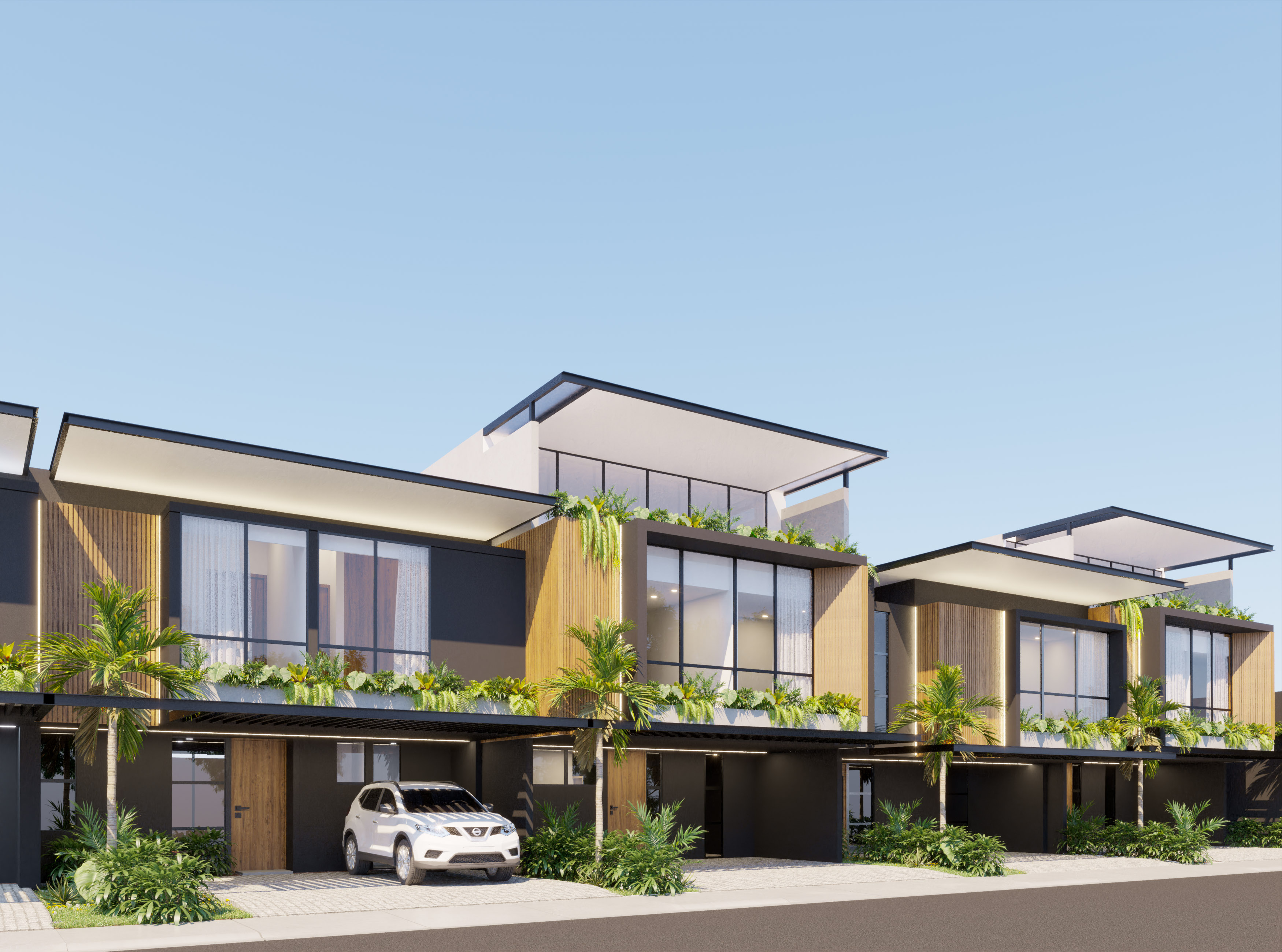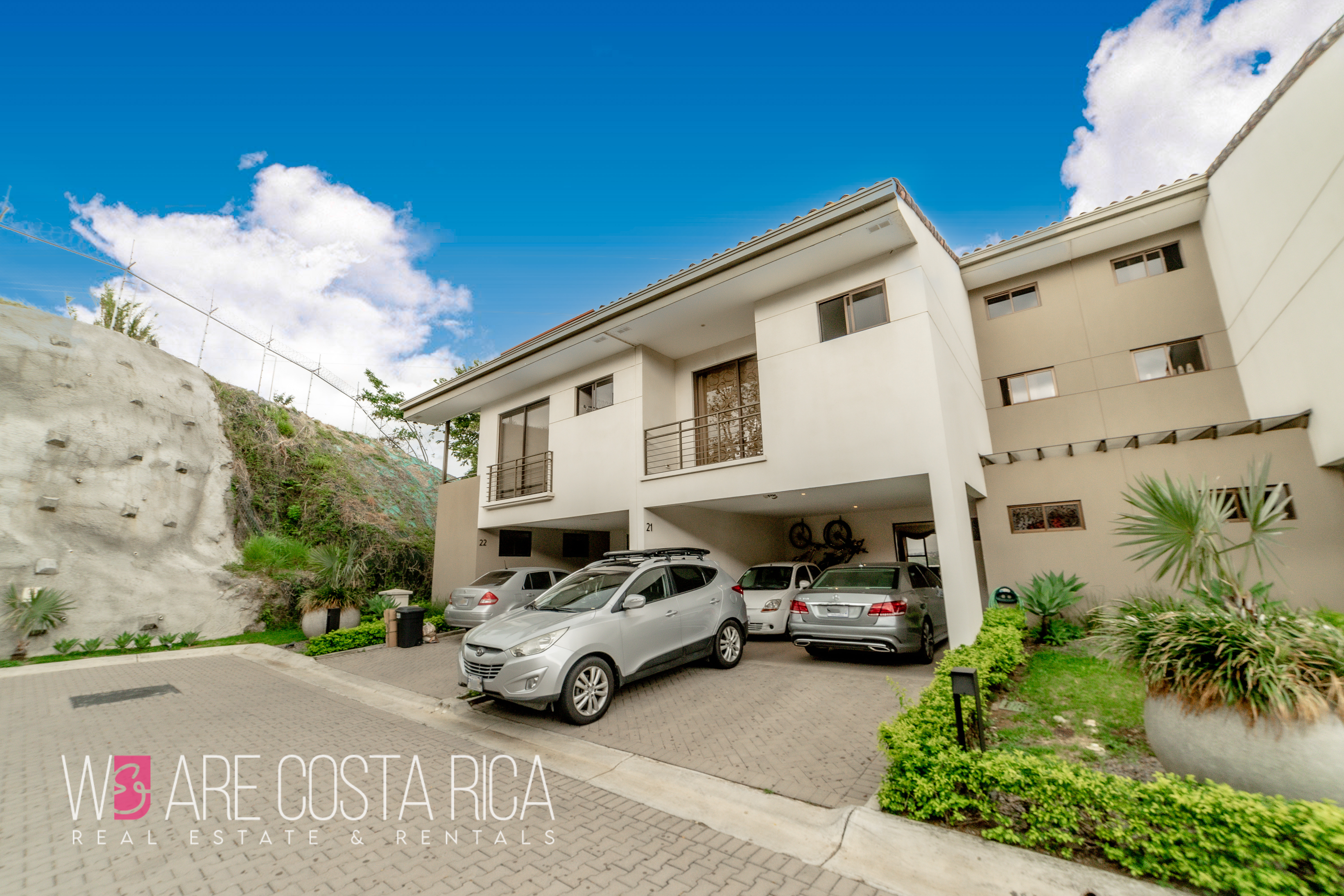 ID# 114404. Brand new contemporary townhouse for sale in Escazú, Altos de Guachipelín condominium, 338 sqm construction and 295 sqm land, 4 bedrooms, 3.5 bathrooms, US$435.000. Two-story home featuring a modern design with fine finishes and ample spaces with lots of natural light. The first floor features an open concept, starting with the living, dining room and integrated kitchen, all facing and connected to the back garden by large windows and sliding glass doors. Laundry room, half bath for visits, full service quarters, and roofed garage for 2 cars complete the first level. The second floor features 4 bedrooms, each with walk-in closet, 2 of them have private bath and the other 2 share a full bath. The house has bodega an attic for storage, and A/C preview installation in bedrooms. The condominium offers 24/7 security and amenities like pool, rancho and beautiful green areas. Maintenance fee: US$340/mo. Ideal environment for families. Excellent location, close to supermarkets, shopping centers, hospitals, banks, schools, restaurants, entertainment venues, the route 27.