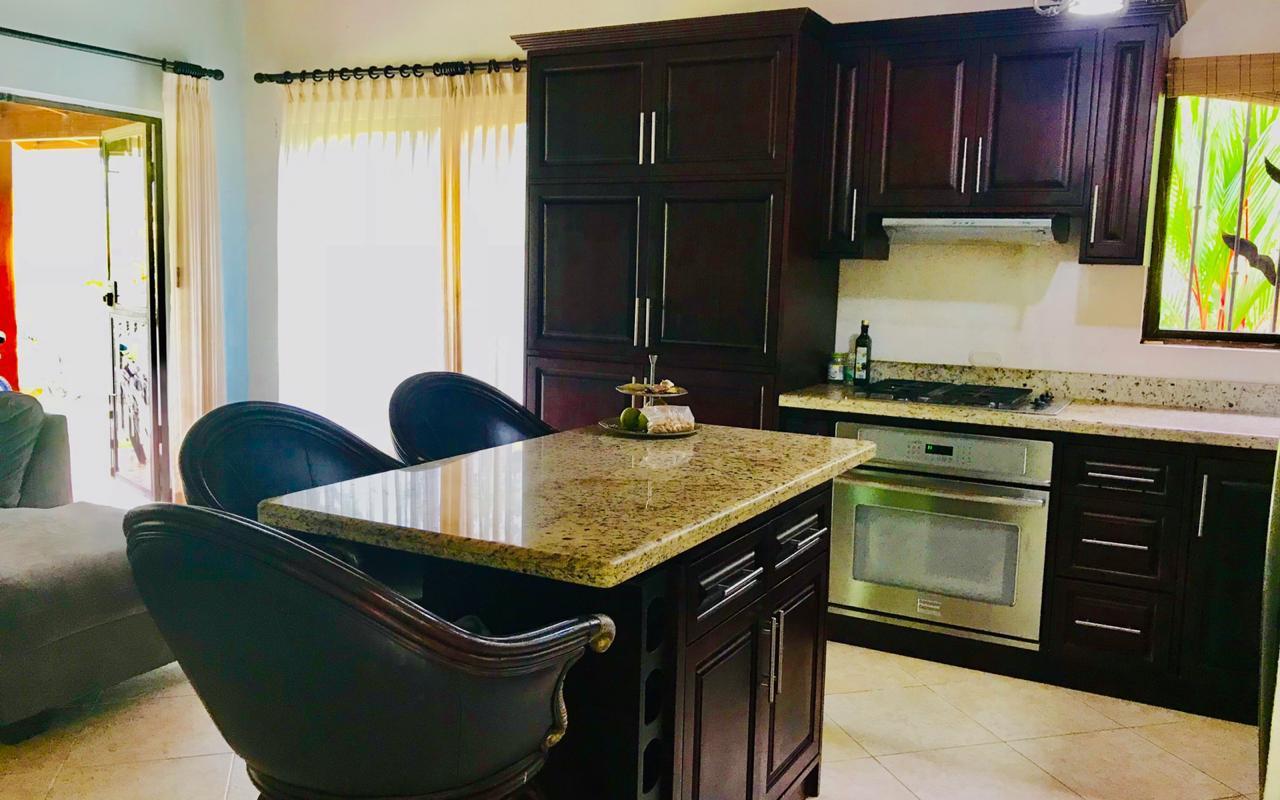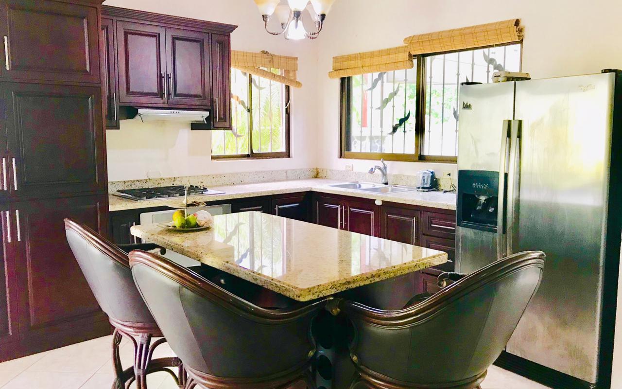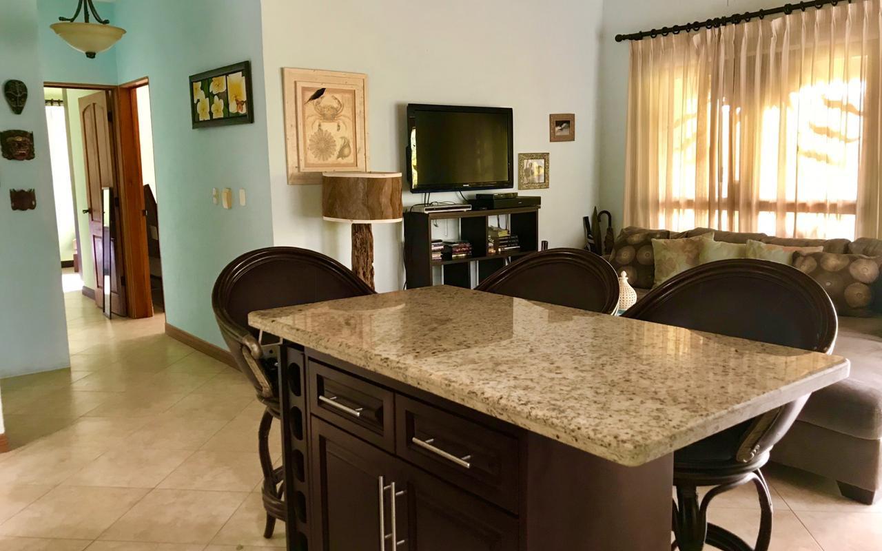 ID# 114553. Cozy furnished beach house for sale in Hermosa Beach, Puntarenas, Valle Perdido condominium, 200 sqm construction and 5.000 sqm land, 2 bedrooms, 2.5 bathrooms, price of US$259.000. Beautiful home featuring high quality finishes and a contemporary functional design. Wonderful mountains views all around the condominium from the green tropical forest that surrounds it. Open concept social area where the living and dining open towards the terrace through glass sliding doors that also provide abundant natural light. The terrace is the ideal spot for bird watch lovers, lots of macaws, toucans, and other species come to the nearby trees. The kitchen has granite countertops, fine wood cabinets and large island. Both bedrooms have private bath and ample closets. The house has a full service room, BBQ area and garage for 2 vehicles. There’s plenty of green areas within the property, enough space to build and independent apartment or a pool, if desired. Secure residential condo with excellent location within a very exclusive zone, two minutes away from Hermosa beach and all the joy it can bring.