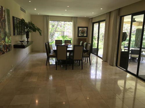 ID# 114569. Beautiful townhouse for sale in Hacienda del Sol, Santa Ana, 511 sqm construction and 770 sqm land, 3 bedrooms, 3.5 bathrooms, US$730.000. On the first level you will find a guest 1/2 bathroom, living and dining areas, family room, gym, terrace and beautiful backyard with a covered grill out area. The kitchen is spacious and comes with all stainless-steel appliances: refrigerator, range stove with oven, hood extractor, dishwasher and microwave. Additionally, there is a laundry room, maid's quarters with full bathroom and 3-car covered carport. On the second floor there is a family / TV room and 3 spacious bedroom suites each one with its own bathroom and walk-in closet. Another room that currently serves as an office could be converted into 4th bedroom. The bathrooms feature wood cabinets with marble counter tops. The master suite has its own private balcony with panoramic views, walk-in-closet and the master bathroom has double vanity and a Jacuzzi tub. Common areas include: 2 children's pools, 2 swimming pools, 2 club houses, 2 tennis courts, 2 playgrounds, soccer field, 24/7 security and the best access to the Escazú - Santa Ana area.