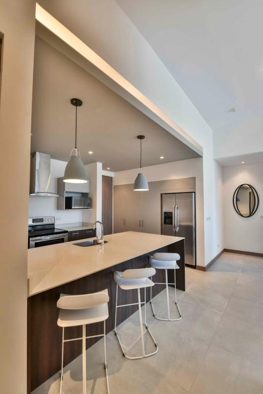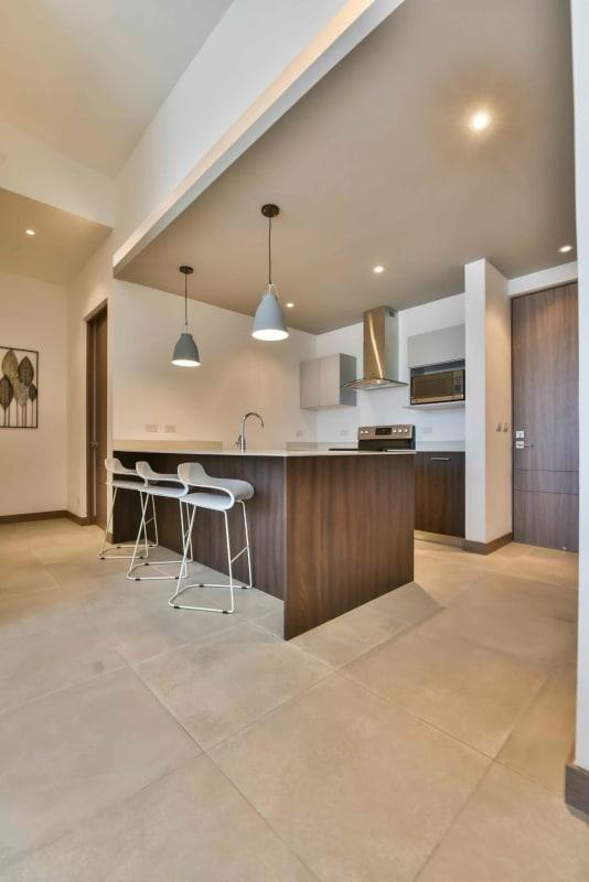 ID# 115207. New furnished apartment for rent in Santa Ana, Kuora condominium, 120 sqmt, 2 bedrooms, 2 baths, US$1.800/mo. This is a contemporary unit featuring an open-concept design with social area and integrated kitchen. It comes all furnished and equipped. There are high ceilings and large windows for a sense of more amplitude and good amount of natural light. The kitchen has breakfast nook and it includes stainless-steel appliances. The master bedroom has an ample walk-in closet and private bath. Bedrooms and living include the curtains. The unit disposes of A/C central system. It has 2 parking spaces. The condominium has 24/7 security with controlled access. Amenities: club house, 2 pools, green areas, gym and parking for visitors. Excellent location, close to supermarkets, shopping malls, banks, schools, restaurants, and entertainment venues.