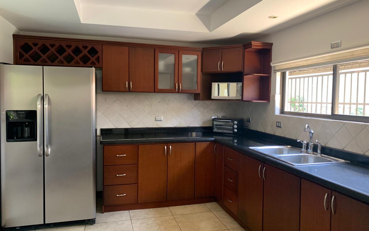 ID# 115287. Fully-furnished house for rent in Santa Ana, private condominium, 3 bedrooms, 2.5 baths, US$1.400/mo. Optional: only appliances @ US$1.200/mo; unfurnished @ US$1.100/mo. Two-story house with traditional architecture, ample spaces and fine finishes. The first level has living, dining and a large kitchen. The kitchen is very spacious and well illuminated, and has a large amount of wooden cabinets. There is a TV room that opens to the terrace and backyard. There is an equipped laundry room, and for storage there’s a bodega and an attic. The private area upstairs has 3 ample bedrooms and 2 full baths with fine finishes. The condominium is located in downtown Santa Ana and has excellent access to all the urban facilities of the area. the complex has only 4 units, it is very private and secure.