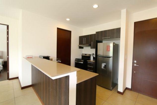 ID# 115303. Apartment with views for sale in Escazú, Distrito 4 residential condominium, 94 sqmt, 2 bedrooms, 2 baths, US$260.000. Modern apartment, totally furnished. Open concept in social area with living room, dining and integrated kitchen, fully equipped and with breakfast nook. There is access to a balcony with views of the club house and the mountains. The master bedroom has A/C, a large walk-in closet and en-suite bath. The secondary bedroom has closet and uses the separated bath. This unit has laundry room, pantry and disposes of 2 parking spaces. Distrito 4 is a residential condominium with several buildings. It also has a commercial plaza with stores, supermarket, cafeteria, restaurants and health/beauty services. Its residents have exclusive access to all these amenities.