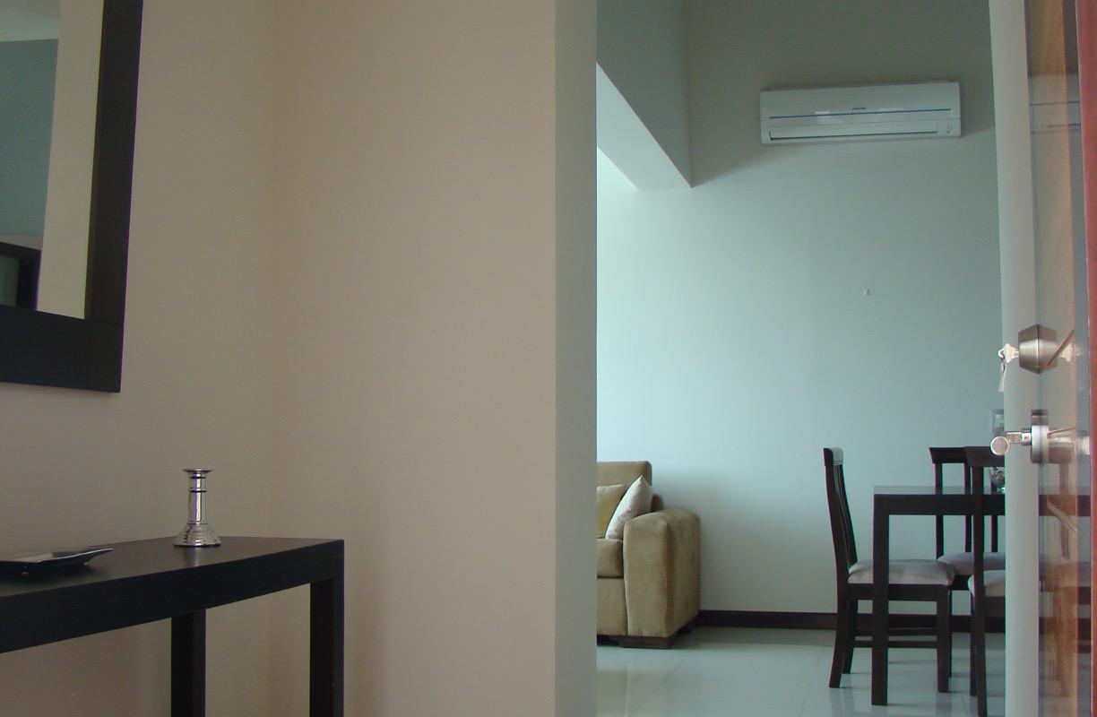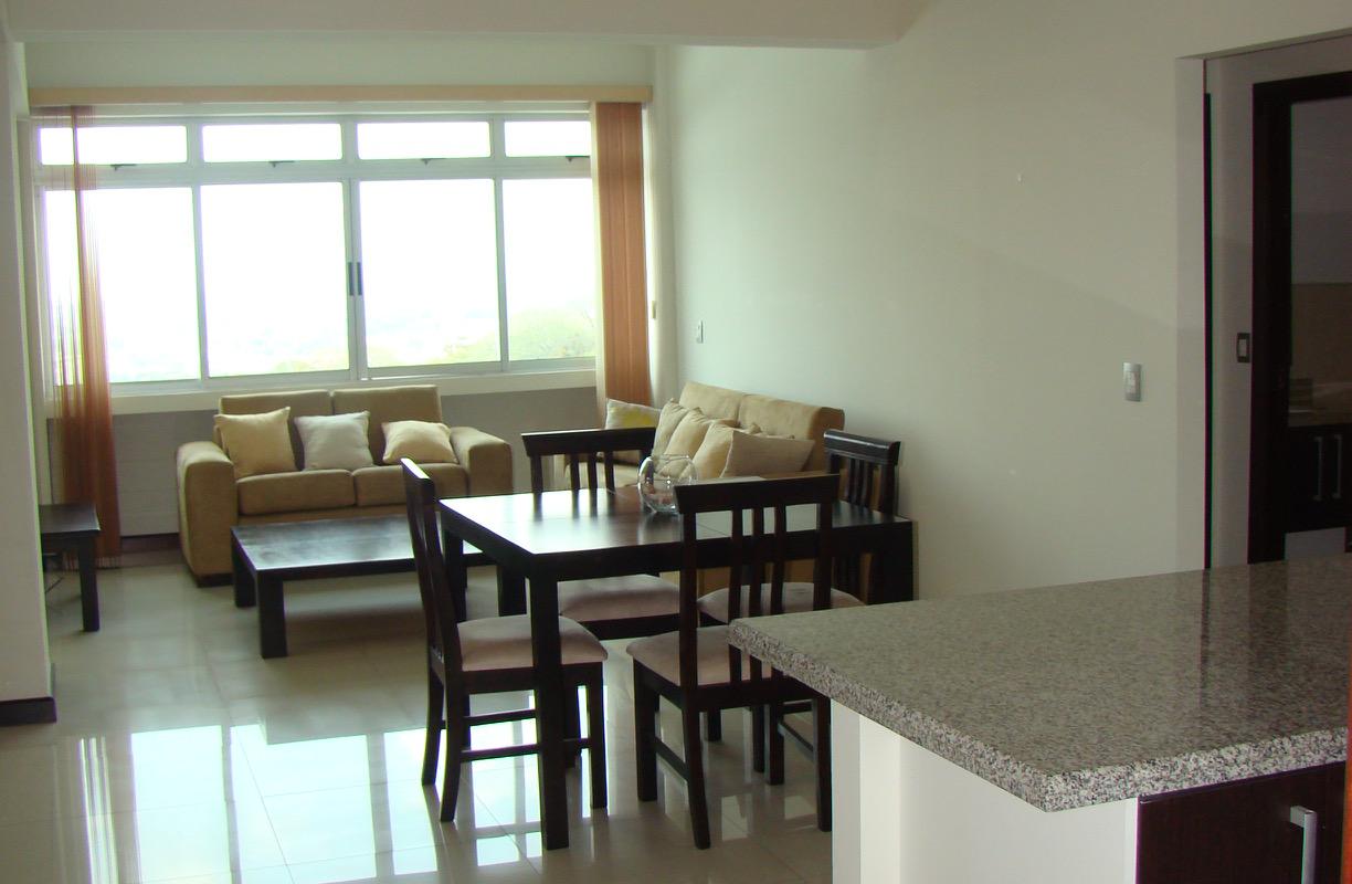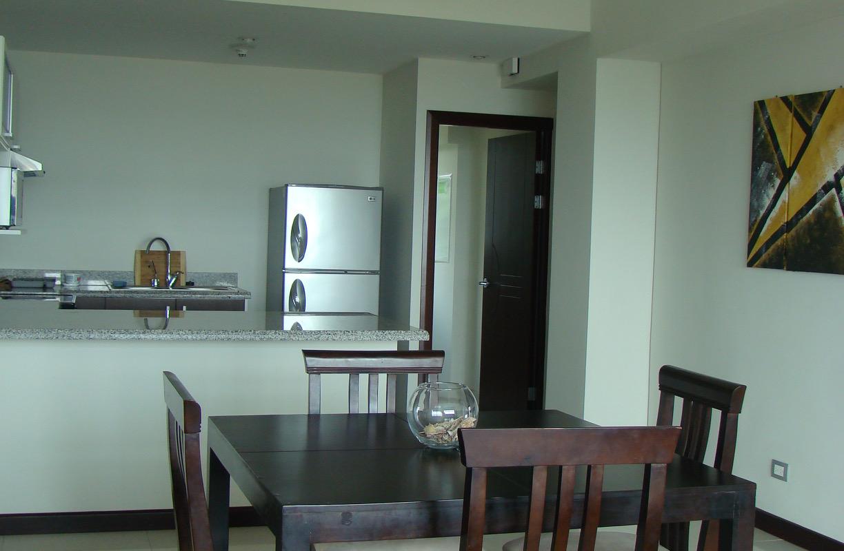 ID# 115304. Apartment for sale or rent in Escazú, Terrazas Infinitas condominium, 150 sqmt, 2 bedrooms, 2 baths, US$290.000 or US$1.500/mo (furnished). The apartment features living, dining and integrated kitchen. The kitchen has modern appliances, granite countertops and breakfast nook. There is TV room and laundry room. The master bedroom has private bath and walk-in closet. The secondary bedroom has closet. The bathrooms have showers and marble countertops. There is A/C in master bedroom and living room. The unit disposes of 2 roofed parking spaces and a bodega. The condominium offers 24/7 security and amenities such as pool, BBQ rancho, gym and green areas.