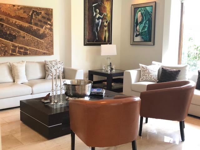 ID# 115323. Luxury home for sale or rent in Santa Ana, Bosques de Río condominium, 606 sqmt construction, 1.000 sqmt land, 3 bedrooms, 3.5 baths, US$1.100.000 or US$5.000/mo. Fully furnished 2-story home featuring a unique personalized architecture and design with luxury finishes like marble floors, quartz countertops and water mirror. Open-concept distribution on first floor with large windows for natural light and ventilation. This indoors social space integrates to the terrace and garden. The terrace has a bar area and a jacuzzi. Stunning kitchen with huge center island that has breackfast nook incorporated. It has fine wooden cabinets and modern appliances. An inferior level has a wine cellar with a small resting area. There is also a half guest bath, laundry room, service quarters and garage for 2 vehicles (additional parking space in the driveway). The second floor harbors the private area of the house with 3 ample bedrooms, each with its own bath and walk-in closet. The master bedroom also has a private office and access to a balcony with views. Bosques del Río is a private condominium of only 22 houses. It has ample cobblestoned streets and sidewalks, subterranean electric wiring, perimeter wall and 24/7 security, controlled access and CCTV monitoring system. Amenities: club house, pool (heated with solar panels), playground and beautiful green areas. It is located a few minutes away from supermarkets like Price Smart and Automercado, banks, private hospitals and schools, the route 27 and the Club Hípico La Caraña.