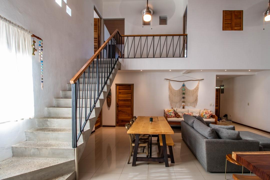 ID# 115365. Independent turn-key home for sale in Nosara, Guanacaste, 172 sqmt construction, 3 bedrooms, 2 baths, US$565.000. Beautiful, recently renovated and fully furnished 2-story house. It has custom details and fine finishes. The first floor has an open-concept design with double-height ceilings and lots of natural light. There is living, 8-seat dining and integrated kitchen. The kitchen has modern appliances and features a gorgeous and unique Guanacaste-wood island with breakfast nook. There is also a full laundry room, a front garden, a built-in jacuzzi, 2 surfboard lockers, and parking space for 2 vehicles. The second floor features the private area of the house with 3 ample bedrooms and 2 full baths with showers. The house has excellent location, close to the beach, restaurants and other great amenities in the area of Playa Guiones.