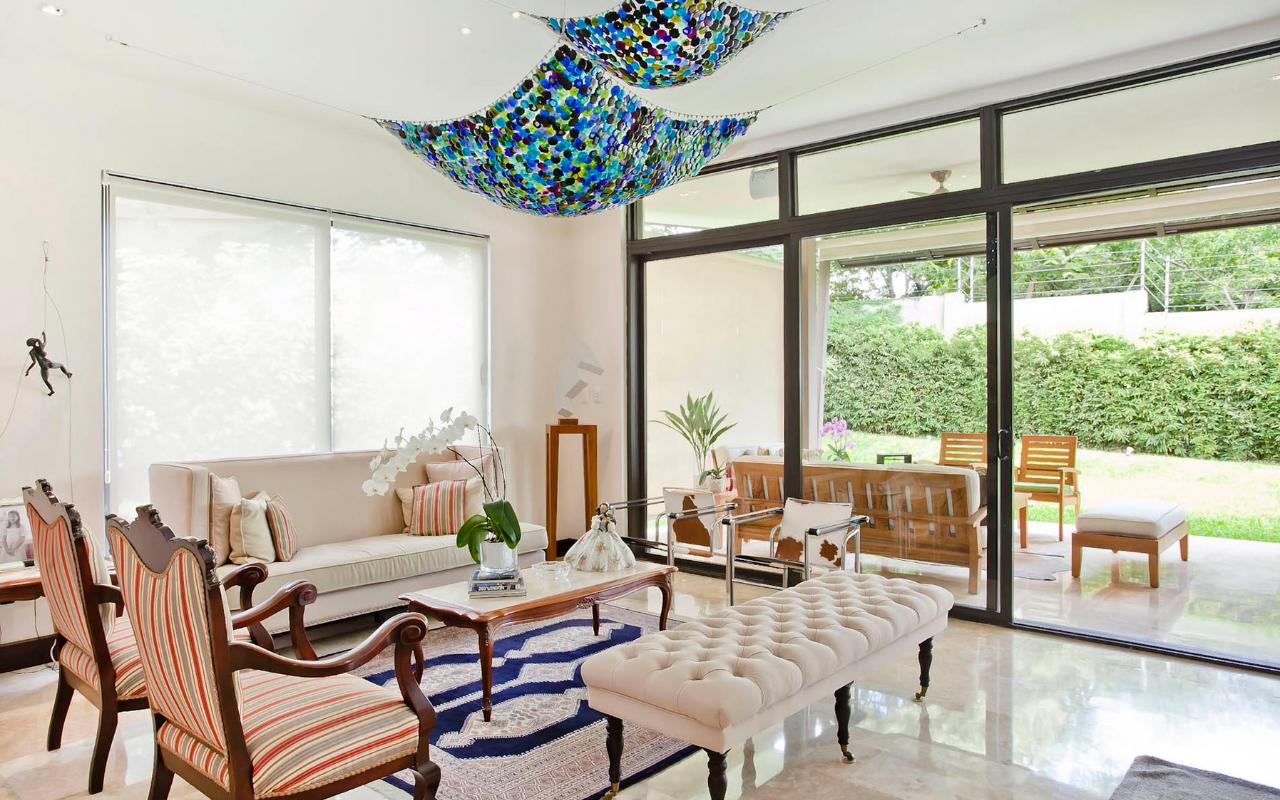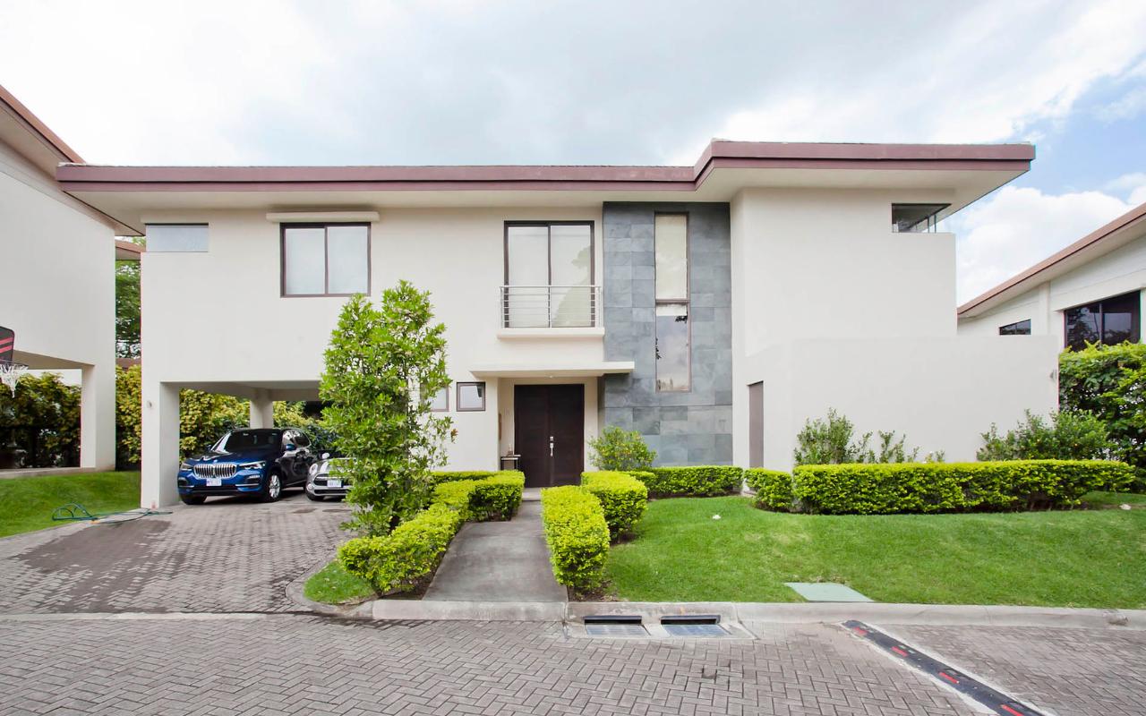 ID# 115381. Contemporary home for sale in Santa Ana, private condominium, 407 sqmt construction, 782 sqmt land, 4 bedrooms, 4.5 baths, US$712.000. Casasol Executive Residence is a wonderful luxury home located in one of the most exclusive residential communities in Santa Ana. This 2-story house features ample and comfortable spaces, where natural light boosts through and it is filled with the finest finishes and details. The first floor has the social area with a modern open-concept plan with living, dining, terrace and a huge open kitchen. The terrace has an ample sitting area and it overlooks the large backyard. The whole social space is ideal for entertaining. The kitchen has center island, dinette area and full stainless-steel appliances. The service area has laundry room and maid’s quarters. A very stylish stairway leads to the second floor which harbors the private area of the house. It has 4 bedrooms, 3 full baths and a TV room or playroom. The house has a garage space for 4 vehicles, 2 roofed, 2 unroofed. All bedrooms and social areas dispose of mini-split A/C units. This property is totally apt for families looking for a comfortable, tranquil and private everyday life, away from noisy streets but close enough to all the necessary commercial/service amenities that the areas of Santa Ana and Escazú have to offer.