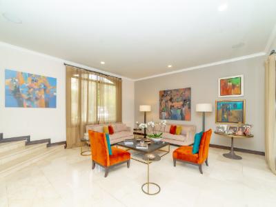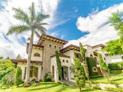 ID# 115391. Completely renovated luxury house for sale or rent in Santa Ana, Valle del Sol condominium, 970 m² of construction, 1,271 m² of land, 4 bedrooms, 4 bathrooms, US$3,000,000 or US$10,000/month. Experience the ultimate in sophisticated style and elegance with this magnificent 2-story house, completely renovated, featuring a total of 970 m² of construction and situated on an impressive lot of 1,271 square meters. With 4 bedrooms and 4 bathrooms, this luxurious residence is truly a dream come true. Upon entering this exquisite home, you will immediately be struck by the attention to detail and luxurious touches everywhere. The house features classic colonial architecture, with vaulted ceilings, French doors and windows, stone columns, hand-forged iron railings, and custom woodwork. From the moment you step into the grand foyer, you will know that this is a home like no other. The living space is expansive, with plenty of room for entertainment and relaxation. You will be impressed by the beautiful bar area overlooking the garden, perfect for hosting parties or simply relaxing with a drink after a long day. The fully equipped gourmet kitchen features modern stainless-steel appliances including a refrigerator, microwave, stove, and dishwasher, ideal for preparing delicious meals for your family and friends. The master bedroom is a true oasis of tranquility, with a large en-suite bathroom featuring a luxurious jacuzzi and a spacious walk-in closet. The secondary bedrooms are equally impressive, with private bathrooms and ample closets. But the real attraction of this magnificent house is the outdoor space. The beautiful terrace overlooks the private pool, creating a tranquil and serene environment perfect for relaxing and soaking up the sun. The covered barbecue area is ideal for hosting outdoor parties and gatherings, while the pool area features a relaxing waterfall and jacuzzi, surrounded by lush gardens. This luxurious house also includes a fully equipped laundry room, full maid's quarters, and a pantry. There are two offices, perfect for working from home, as well as two storage rooms for your favorite vintages. The family room is an excellent space for relaxation and quality time with loved ones. The covered garage has capacity for three vehicles, with additional parking available in the driveway. In addition, this spectacular house is now listed on Airbnb, allowing for a minimum rental of 3 nights at a rate of $1,100, including cleaning service and breakfast, from June to November. During the months from April to December, the rate will be $1,500 per day. Valle del Sol is an exclusive residential community, recognized for its exceptional privacy and security. This prestigious neighborhood features an 18-hole golf course, beautiful green areas, modern underground infrastructure, and 24/7 complete surveillance with controlled access. Experience the ultimate in luxury living with this magnificent fully renovated house in Valle del Sol. Don't miss this rare opportunity to own a home of exceptional beauty and sophistication. Schedule a visit today!
