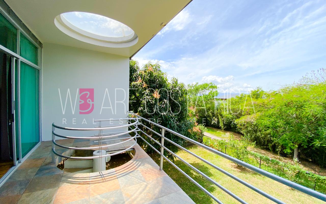 ID# 115409. Modern house for rent in La Guácima, Hacienda los Reyes, 320 sqmt construction, 1.100 sqmt land, 4 bedrooms, 2.5 baths, US$320.000. Two-story contemporary home with a fresh open-concept design, lots of natural light and the finest finishes. Living room with integrated kitchen and it all connects to the terrace and backyard. The social space has high ceilings and floor-to-ceiling windows and sliding doors. The laundry room has patio. The private area upstairs has 3 ample bedrooms with hardwood flooring and there are 2 full baths. One en-suite bath in the master bedroom and the other is shared by the secondary bedrooms. All rooms have beautiful ceiling fans. The property has a garage up front for 2 vehicles plus additional parking space in the driveway. Hacienda Los Reyes is an exclusive residential community that offers 24/7 security (patrolled) and amazing amenities to enjoy: golf course, club house, tennis courts, gym, swimming pools. It is strategically located close to a variety of shops and restaurants, the international airport and private schools.