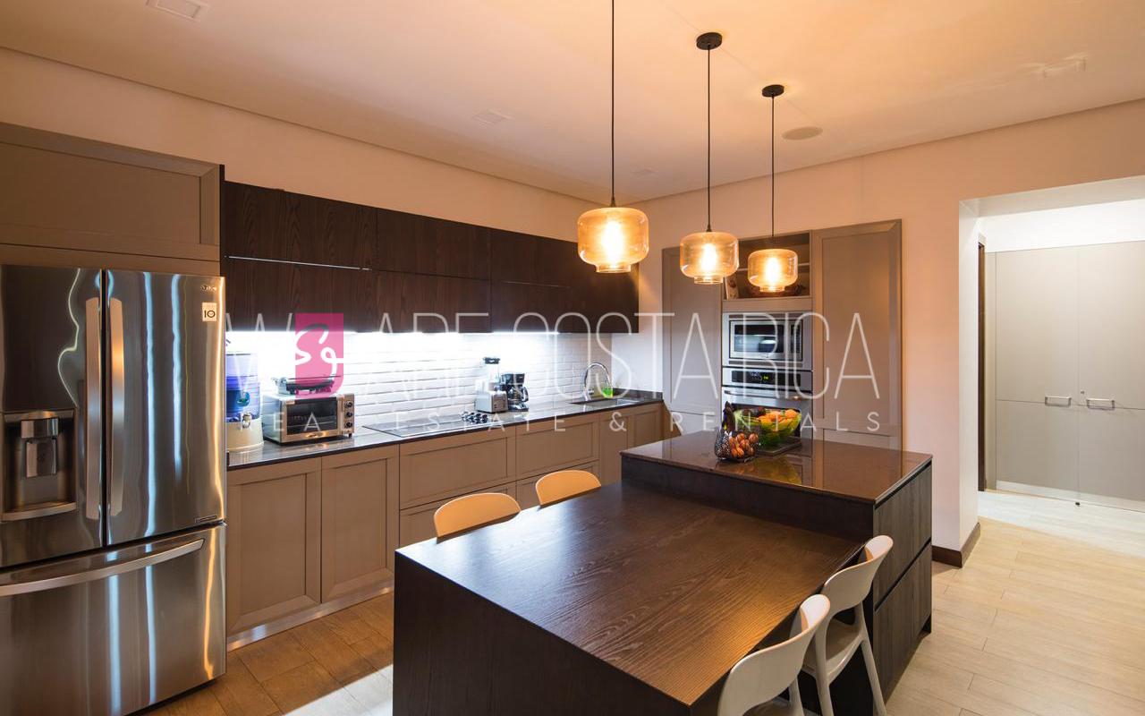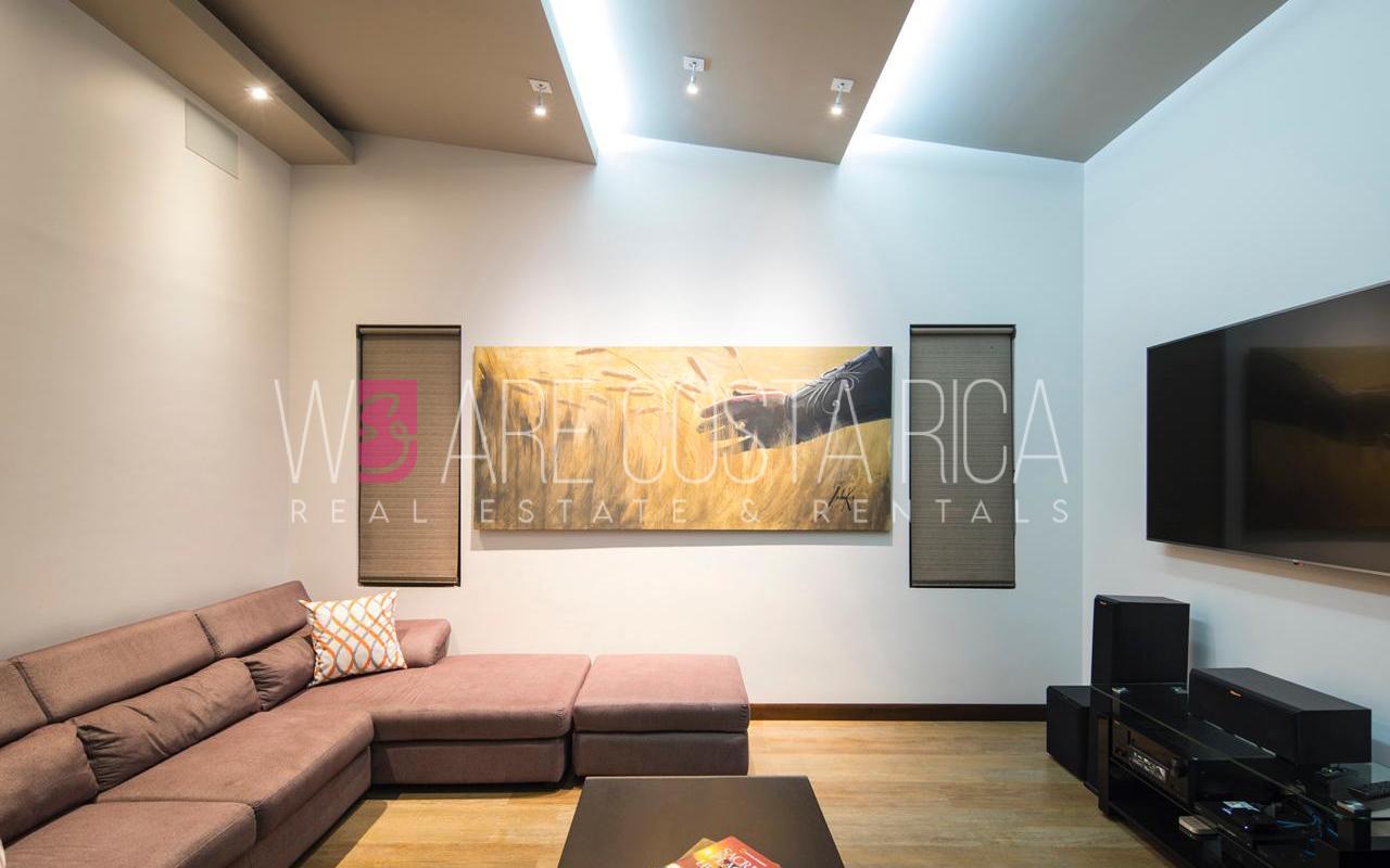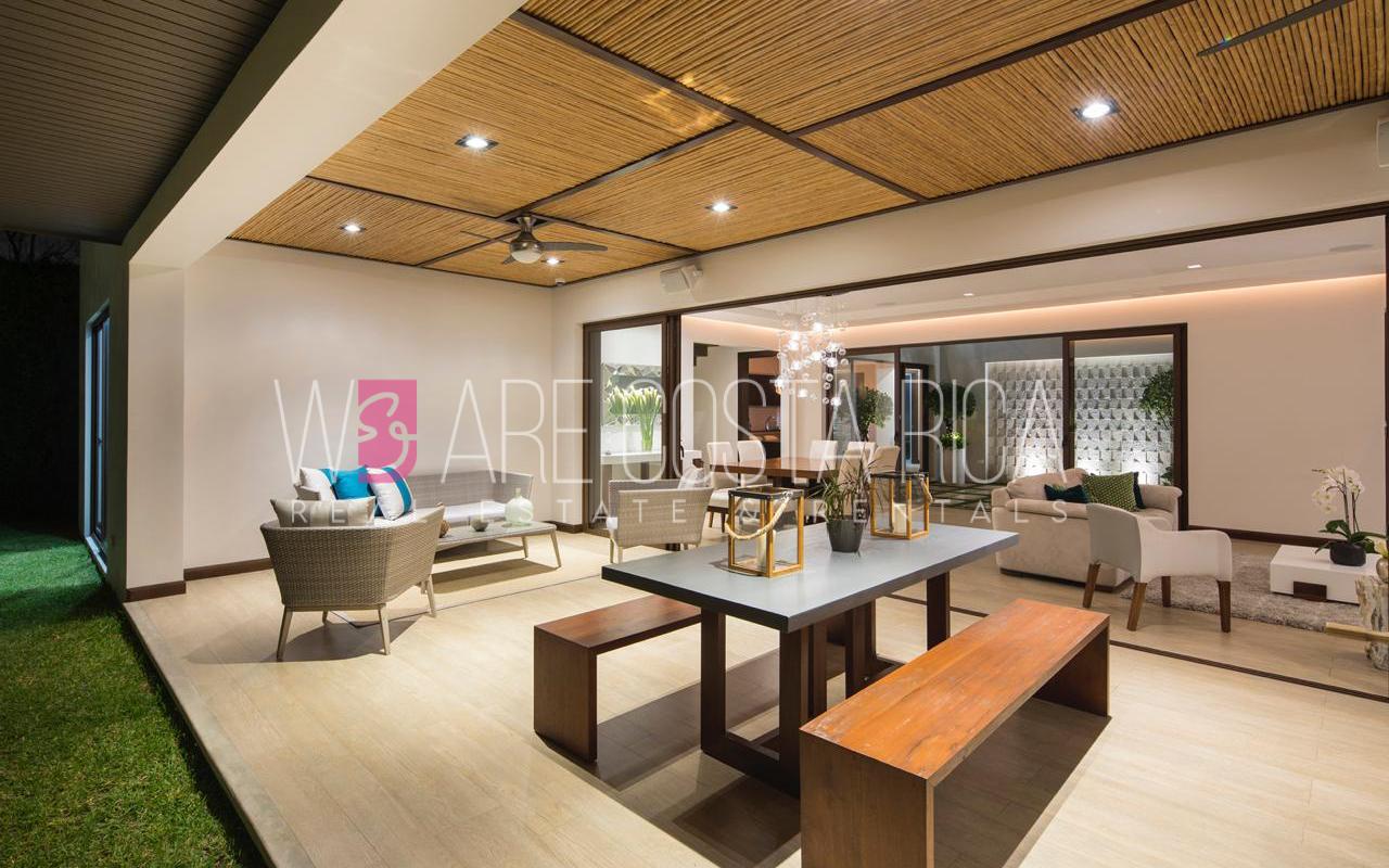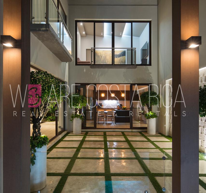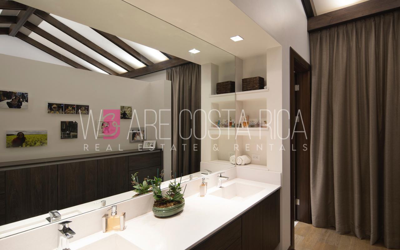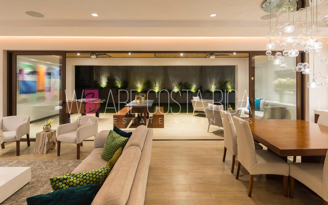 ID# 115440. Contemporary Boutique house for sale in Valle del Sol, Santa Ana, 405 sqmt construction, 550 sqmt land, 4 bedrooms, 3.5 baths, US$895.000 (negotiable). Gorgeous 2-story house with modern design, filled with abundant natural light and with deluxe finishes. Open concept integrating living, dining and outdoors terrace to create a large cool space for entertaining, with full view of the garden. Separated kitchen with finishes in granite, oversized island and totally equipped with built-in appliances, all stainless-steel. There’s home office and playroom. All the bedrooms have walk-in closet and private bath. They are very luminous given their floor-to-ceiling windows, and they have hardwood floors. Garage for 4 vehicles. Valle del Sol is guarantees privacy and full security to its residents. It is one of the most sought after residential condominiums in Santa Ana given its 18-hole golf course, modern subterranean infrastructure, and gorgeous green areas.