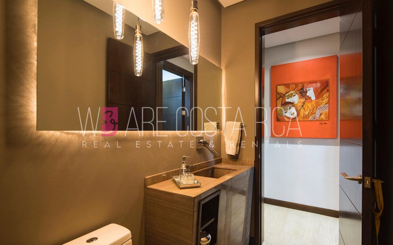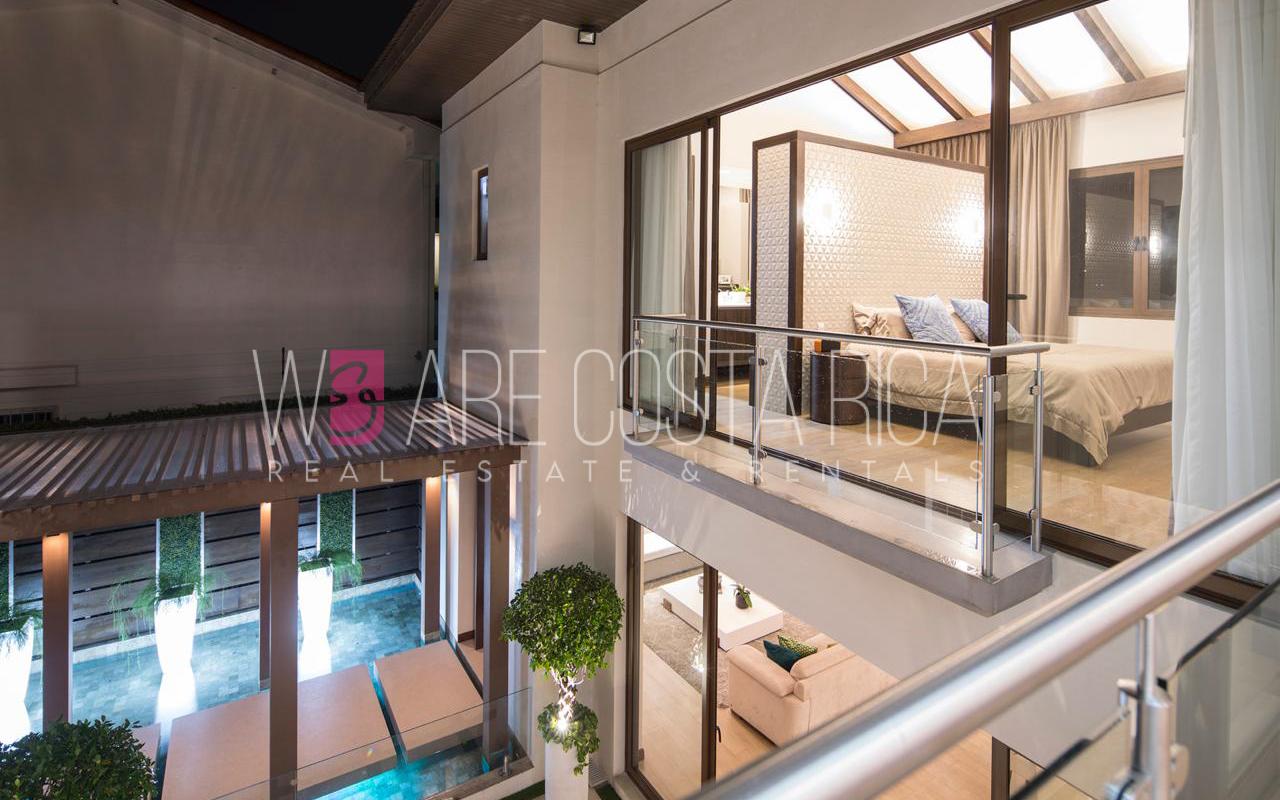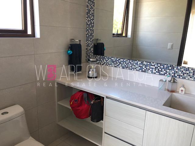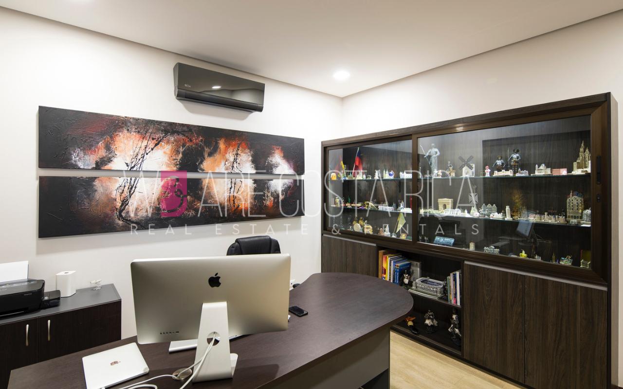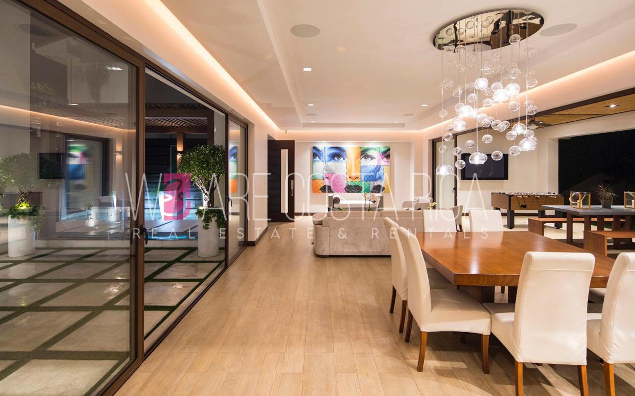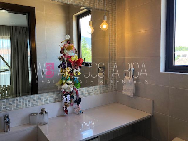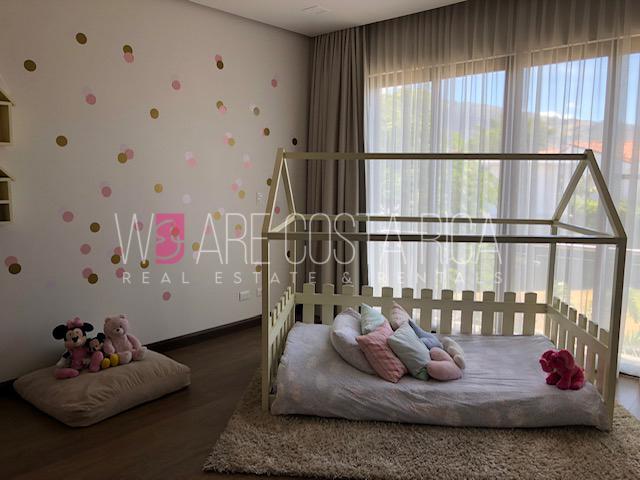 ID# 115440. Contemporary Boutique house for sale in Valle del Sol, Santa Ana, 405 sqmt construction, 550 sqmt land, 4 bedrooms, 3.5 baths, US$895.000 (negotiable). Gorgeous 2-story house with modern design, filled with abundant natural light and with deluxe finishes. Open concept integrating living, dining and outdoors terrace to create a large cool space for entertaining, with full view of the garden. Separated kitchen with finishes in granite, oversized island and totally equipped with built-in appliances, all stainless-steel. There’s home office and playroom. All the bedrooms have walk-in closet and private bath. They are very luminous given their floor-to-ceiling windows, and they have hardwood floors. Garage for 4 vehicles. Valle del Sol is guarantees privacy and full security to its residents. It is one of the most sought after residential condominiums in Santa Ana given its 18-hole golf course, modern subterranean infrastructure, and gorgeous green areas.