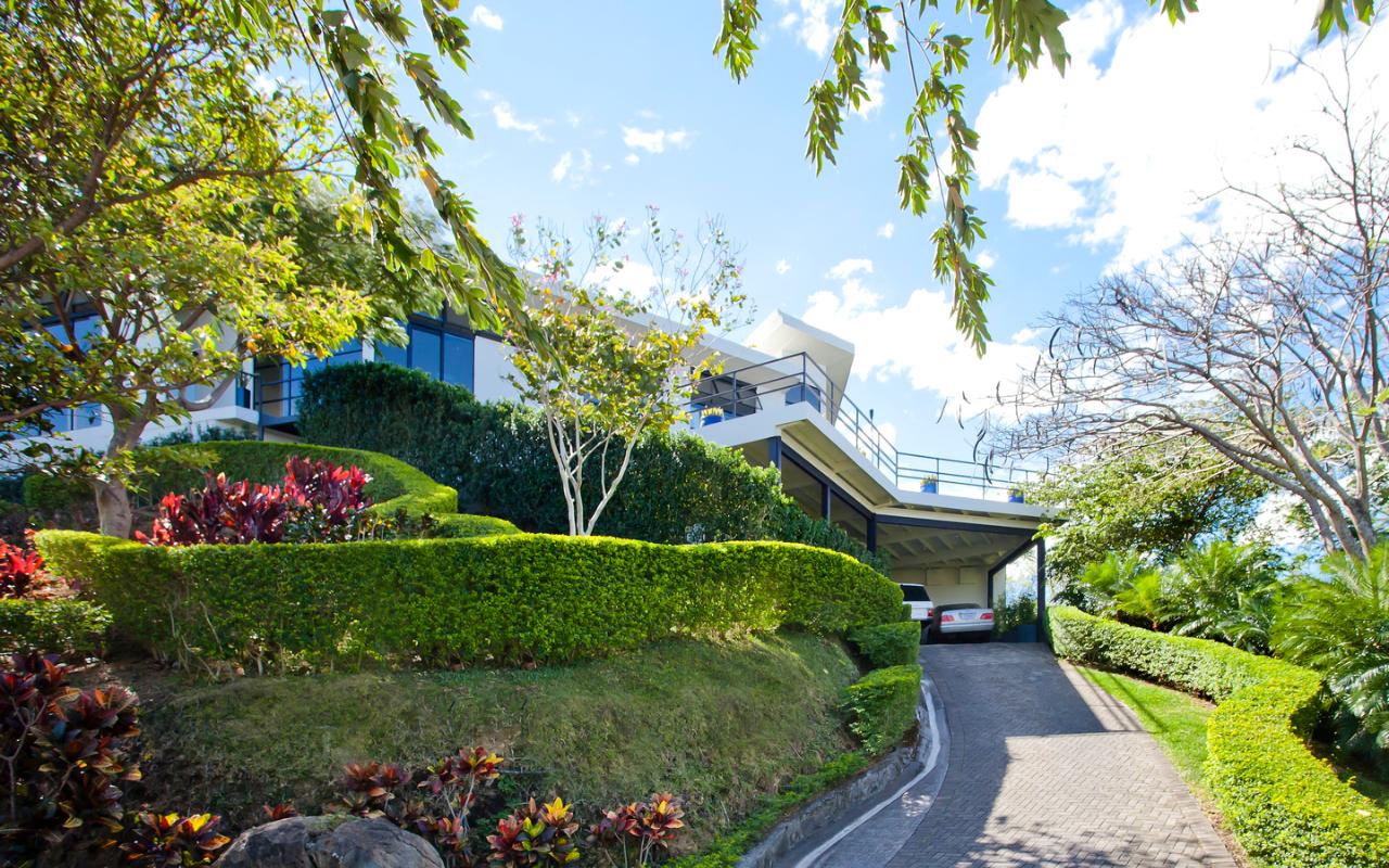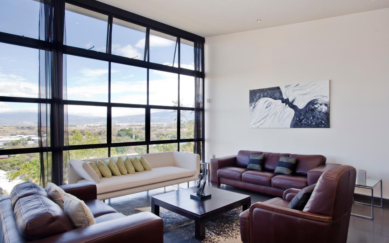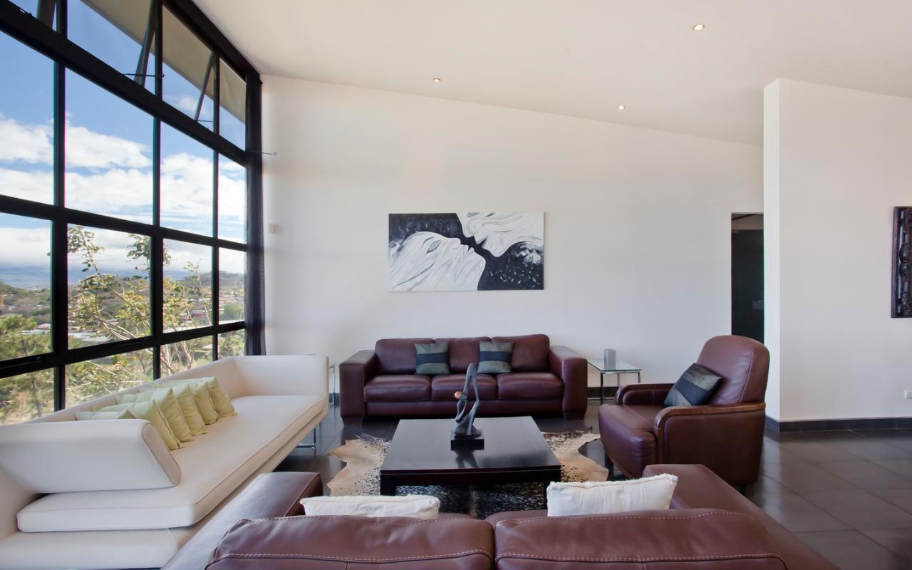 ID# 115463. Contemporary house with pool for sale in Santa Ana, 425 sqmt construction, 3.175 sqmt land, 3 bedrooms, 4 baths, US$699.000. Amazing 2-story house featuring a supreme modern design, where vast natural light flows throughout and a spectacular view turns all heads around. Expansive terrace and pool deck, ideal for entertaining. The house has an open floor plan with integrated kitchen, for a very large social area. On both sides of the social space there are full bedrooms, one has large walk-in closet. In a lower level there’s the pool, terrace, guest room, and access to the wonderful garden. The upper level is entirely reserved for the master suite. It has walk-in closet, walk-in shower and a private walk-out terrace overlooking the pool and with amazing panoramic views. The property has prime location, only 10 minutes away from Santa Ana and Escazú, cities that harbor the finest restaurants, shops, private schools and entertainment venues.