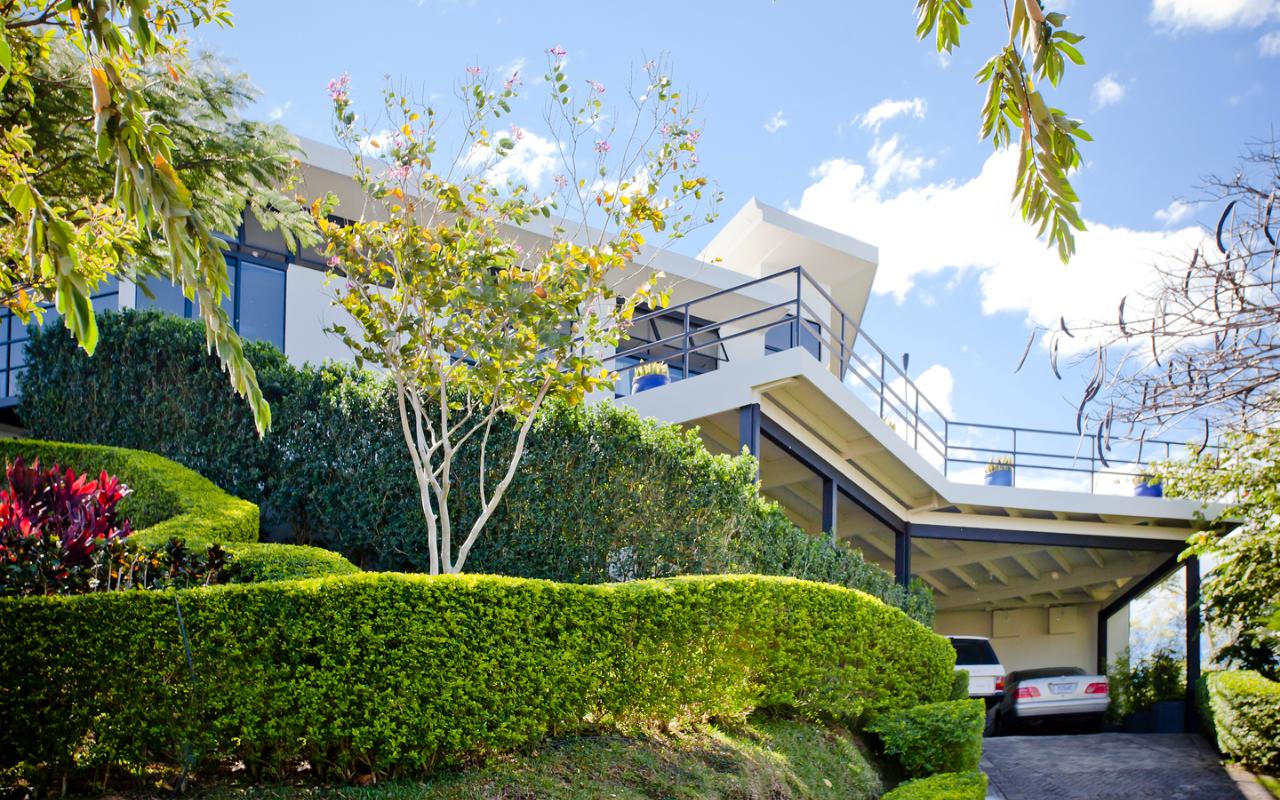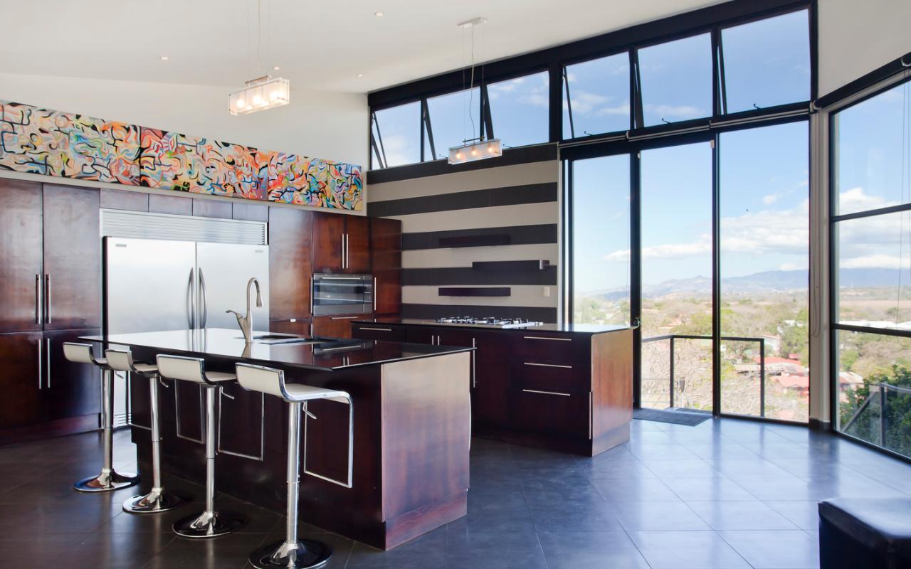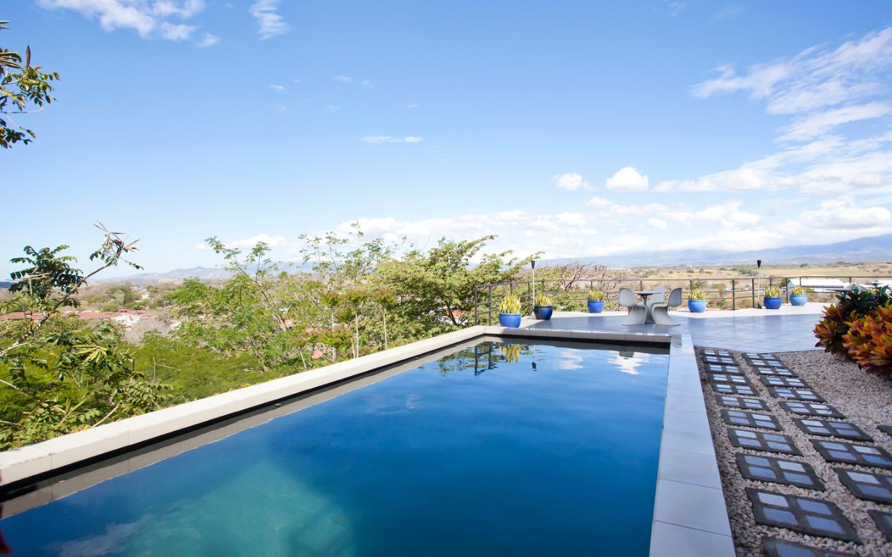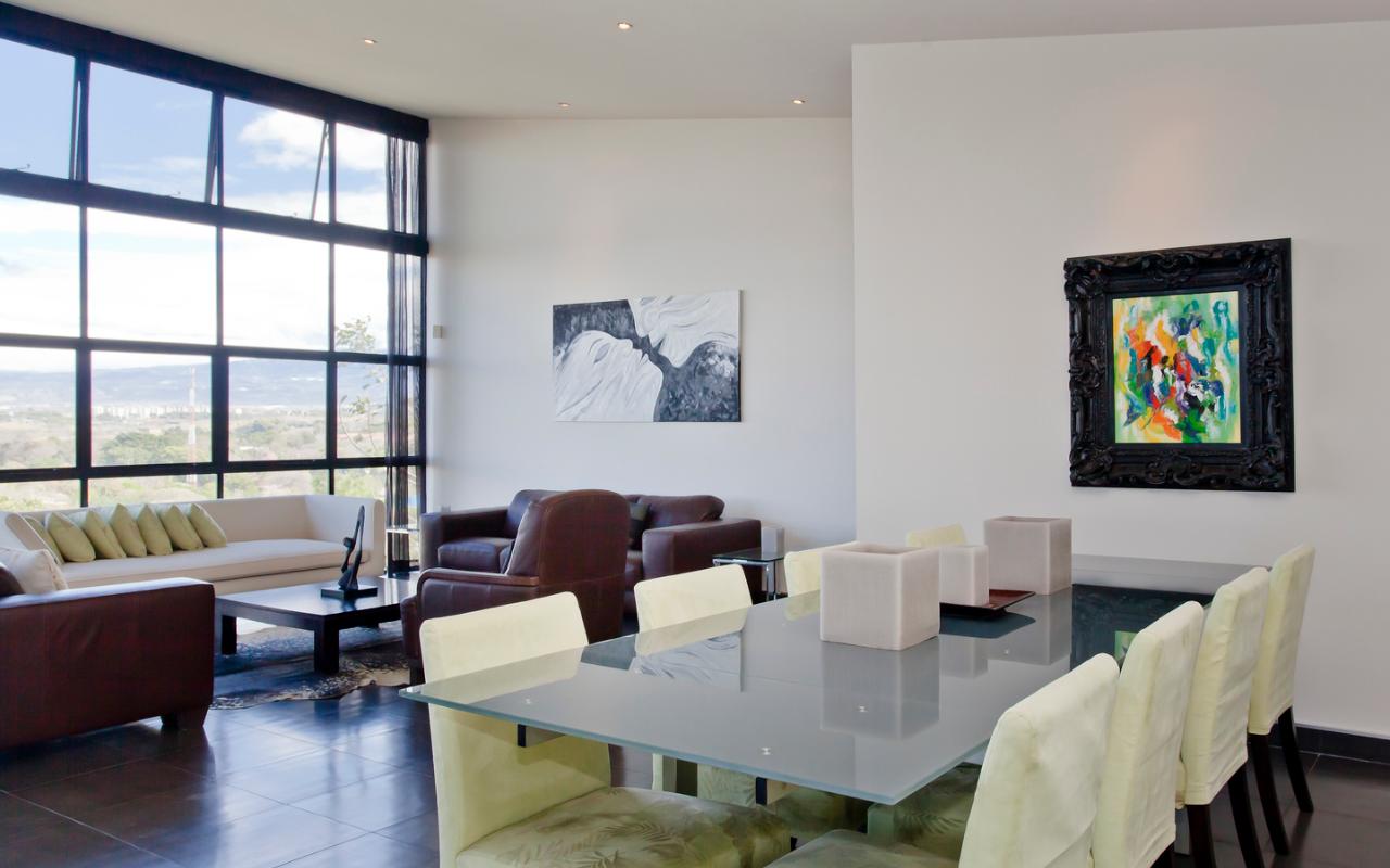 ID# 115463. Contemporary house with pool for sale in Santa Ana, 425 sqmt construction, 3.175 sqmt land, 3 bedrooms, 4 baths, US$699.000. Amazing 2-story house featuring a supreme modern design, where vast natural light flows throughout and a spectacular view turns all heads around. Expansive terrace and pool deck, ideal for entertaining. The house has an open floor plan with integrated kitchen, for a very large social area. On both sides of the social space there are full bedrooms, one has large walk-in closet. In a lower level there’s the pool, terrace, guest room, and access to the wonderful garden. The upper level is entirely reserved for the master suite. It has walk-in closet, walk-in shower and a private walk-out terrace overlooking the pool and with amazing panoramic views. The property has prime location, only 10 minutes away from Santa Ana and Escazú, cities that harbor the finest restaurants, shops, private schools and entertainment venues.