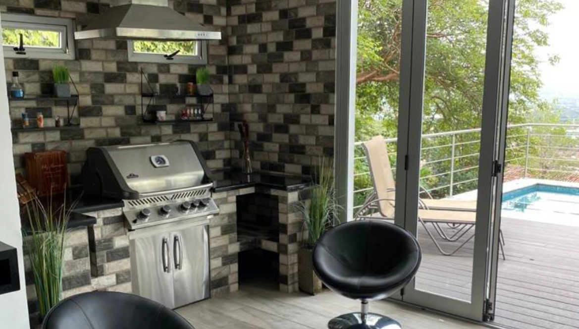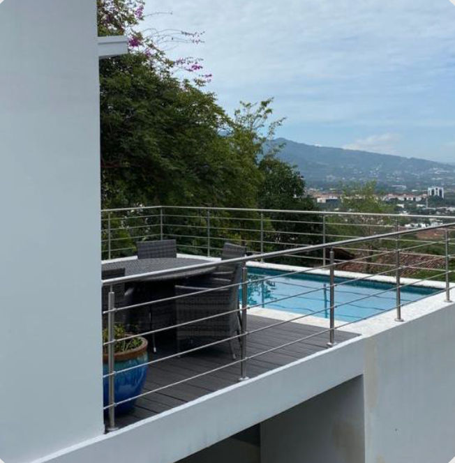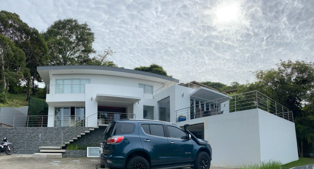 ID# 115485. Luxury house with pool for sale in Santa Ana, Villa Real condominium, 550 sqmt construction, 1.180 sqmt land, 4 bedrooms, 4 baths, US$995.000. “Casa Ibiza” is a wonderful residence with a luxury contemporary design, outdoors areas ideal for entertainment, and breathtaking views. Three levels, excellent distribution. Open concept on indoors social space. Ample separated kitchen, fully equipped, black quartz countertops. Terraces and pool with amazing views. There is BBQ area and sundeck. All bedrooms have their private bath. Roofed garage for 2 cars, driveway space for 6-7 more vehicles. Villa Real has been consistently one of the most sought after residential communities in the West Central Valley. High security, stunning mountain views, as well as country-club-like amenities including a semi-olympic pool, tennis courts, basketball court, clubhouse and walking trails.