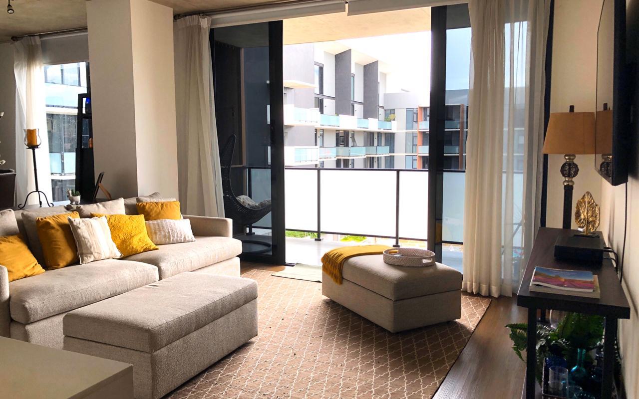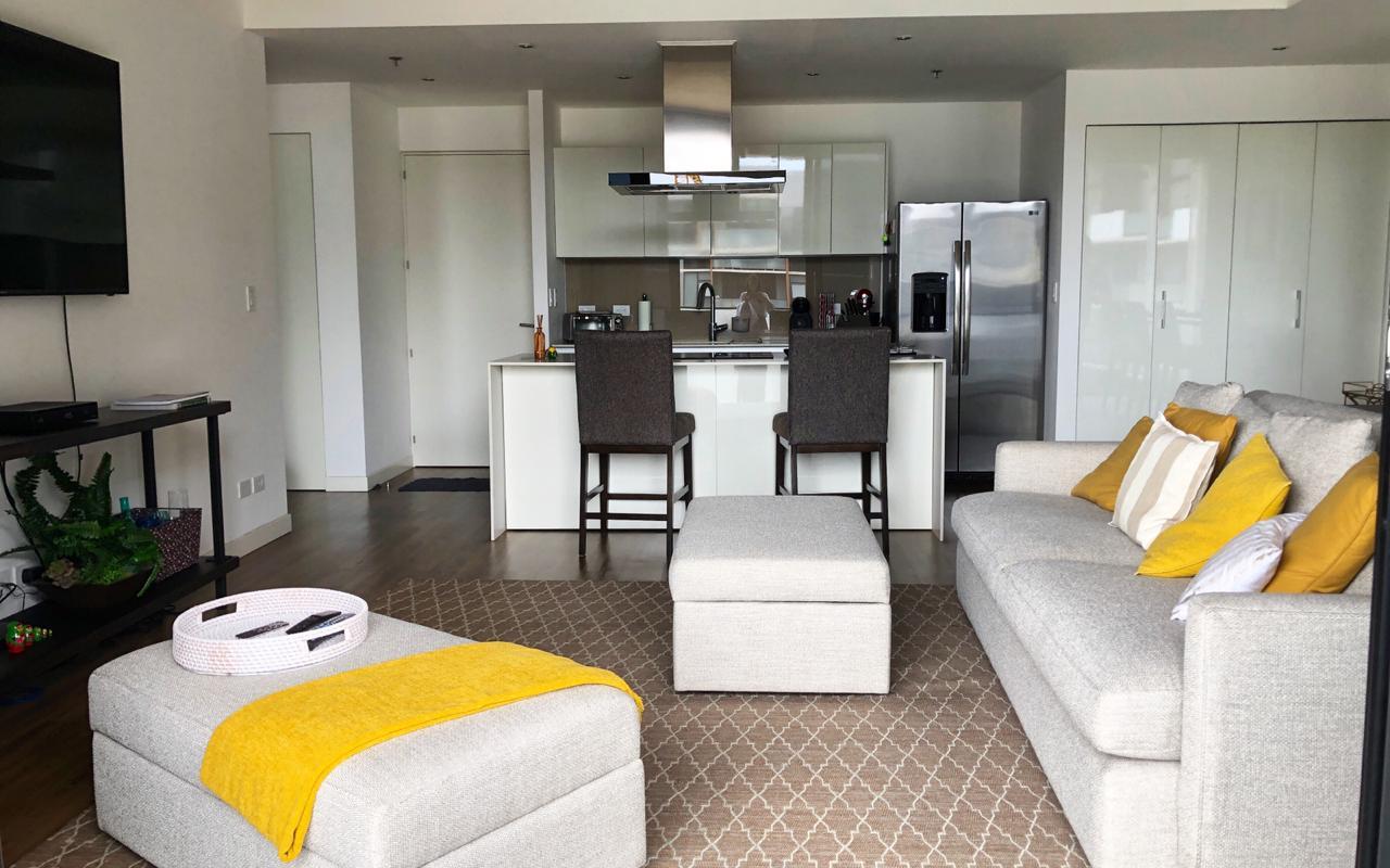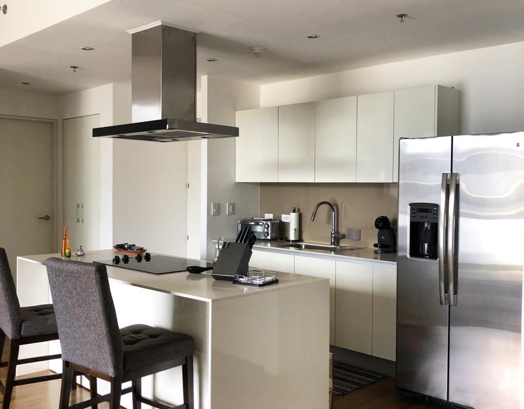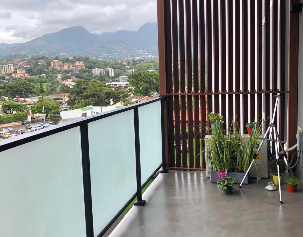 ID# 115489. Apartment with views for sale or rent in Escazú, private condominium, 93 sqmt, 2 bedrooms, 2 baths, US$280.000 or US$1.900/mo (fully-furnished). Contemporary apartment located in the mountains of Escazú. Open-concept design, fine finishes and stunning panoramic views. Good natural light in all the apartment. All floors are hardwood, except baths that are ceramics tiles. Social area with open integrated kitchen, which has breakfast nook and modern appliances. Large balcony with space for sitting area. The master bedroom has walk-in closet. Internal laundry area (equipped). Includes 2 A/C units and blackout curtains. Two parking spaces.
