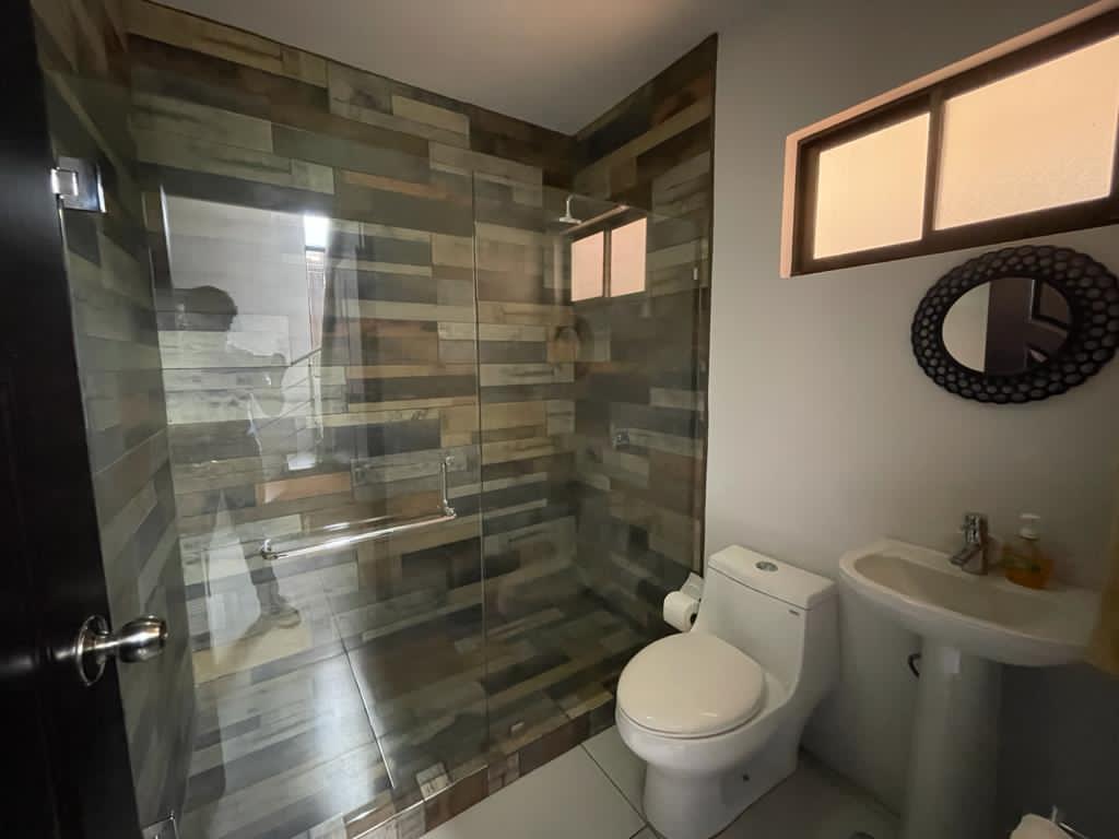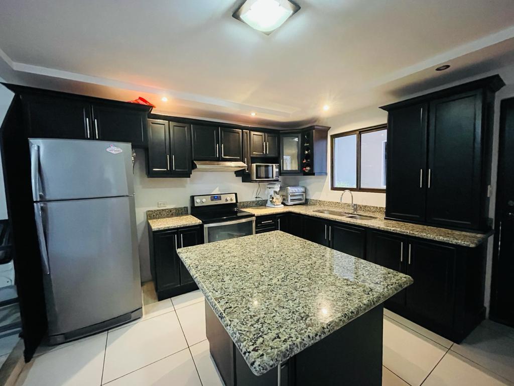 ID# 115738. Independent house for sale in Santa Ana, private condominium, 221 sqm construction, 176 sqm land, 3 bedrooms, 3 baths, US$163.000 (negotiable). Beautiful 2-story house, modern open concept, fine finishes, good natural light. Living and dining with integrated kitchen. The kitchen has island and granite countertops. The first floor also has a full bath, an office (or extra bedroom), independent laundry room, backyard connected to the garage. Roofed garage for 2 vehicles, that has anti-slip floor. The second floor features a TV room, a master bedroom with private bath with jacuzzi and a walk-in closet. The secondary bedrooms share a full bath. Other characteristics of the property: solar water heater, 3 security cameras, includes the blinds, electric fence, electric gate, septic tank, Helvex and American Standard taps and sanitaryware.