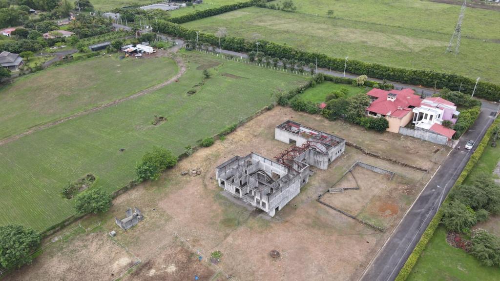 ID# 115739. Se vende amplio terreno en La Guácima, Alajuela, 10.773 m2, US$750.000 (negociables). La propiedad consta del terreno, una casa de 1.000 m2 aún en construcción (obra gris), quintas para caballos y un camino paralelo para acceder a ellas. La casa tiene una arquitectura de estilo mexicano de lujo, se podría terminar y usar idealmente como una casa de retiro, o se podría demoler y cambiar el propósito del terreno. En general, la propiedad tiene excelente ubicación, con buenos accesos y todos los servicios públicos están disponibles. A solo 1 Km del AutoMercado.