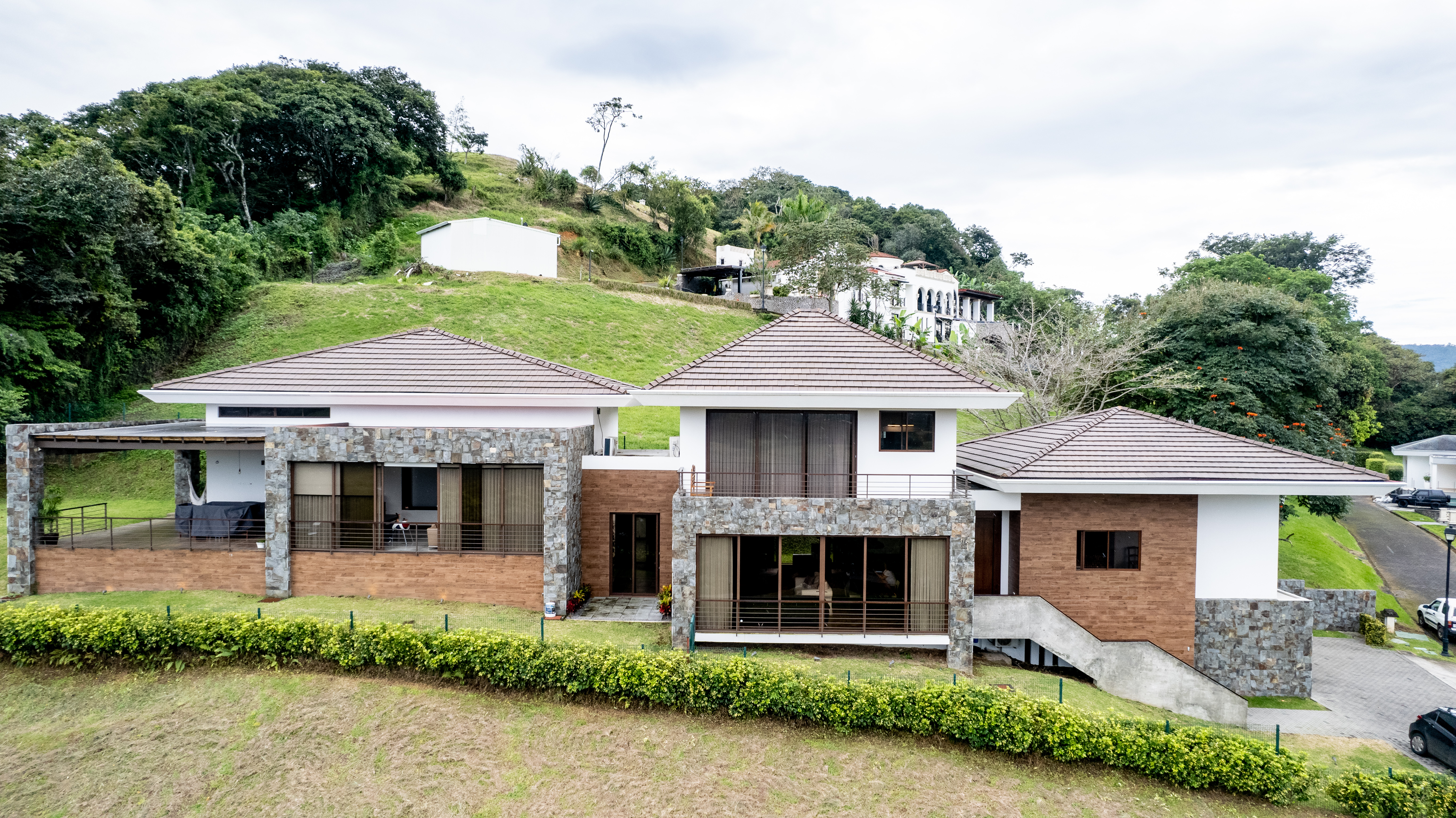 ID# 115877. Independent house with pool for sale in Brasil de Mora, 650 sqm construction, 3.320 sqm land, 4 bedrooms, 4.5 baths, US$1.000.000. Large and beautiful independent property consisting on a main house, an annex module for guests, outdoors area with pool and playground, and beautiful landscaped gardens. The main house is a single-level structure with traditional design, ample spaces, fine finishes and good natural light. It features an entrance vestibule, living, 2 dining rooms (formal and private), large kitchen (includes stove and microwave), studio, half bath for visits, service room, and 4 bedrooms, each one with private bath and the master has A/C split. There’s roofed garage for 2 vehicles. The outdoors space is ideal for entertaining. Pool with deck, rancho, game room, playground, basketball court and green areas. External parking for 15 vehicles. The guest annex has 9 double bedrooms with bath and ceiling fans, living and dining with integrated kitchen, terrace and BBQ rancho.