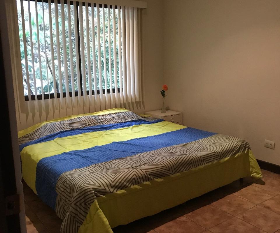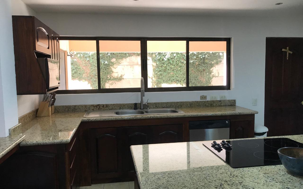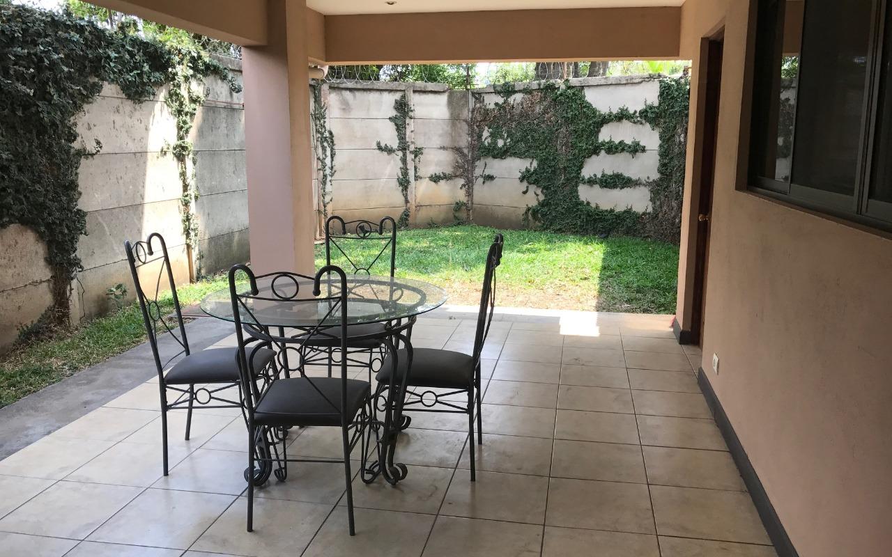 ID# 115907. Independent house for rent in San Antonio, Belén, 250 sqm construction, 340 sqm land, 4 bedrooms, 3 baths, US$1.400/mo + IVA. Two-story house with traditional design, clear and ample spaces, good natural light and fine finishes. Social area featuring an open concept layout with double height ceilings. Terrace with BBQ area that connects directly to the large backyard. Separated kitchen, fully furnished, with breakfast nook, granite countertops, and built-in appliances (vitroceramics top-stove, oven and dishwasher). There is also office, bodega and laundry room. Parking space for several vehicles. The second floor features a very ample master bedroom with private bath and walk-in closet. It also has an A/C unit, the same as one secondary bedroom. Large attic for storage. The property is very secure, it has perimeter wall and main access through electric gate. It has good location, with easy access and close to schools, business centers and shopping malls. Optional: rented furnished.