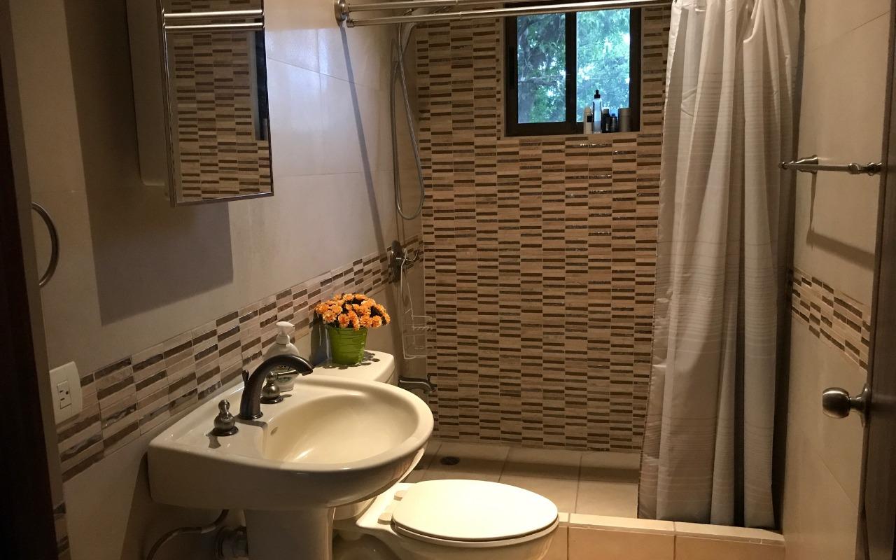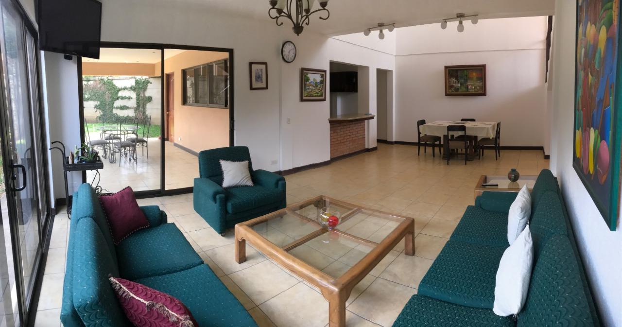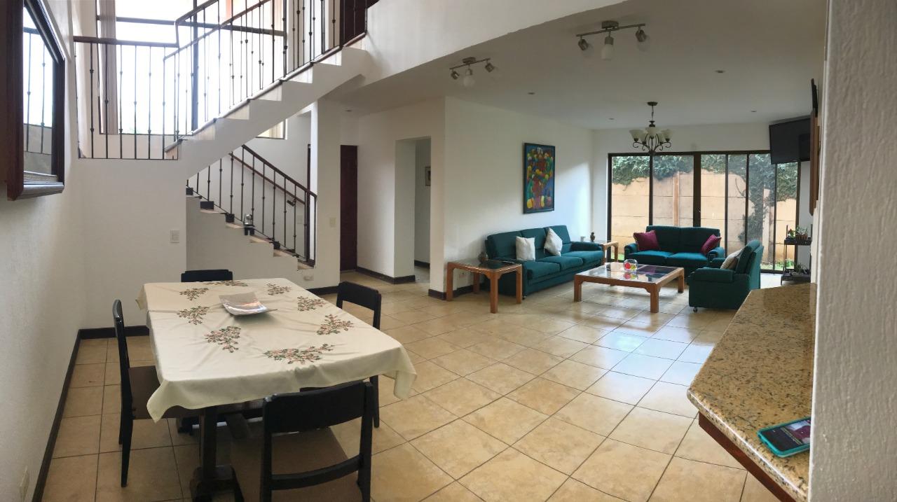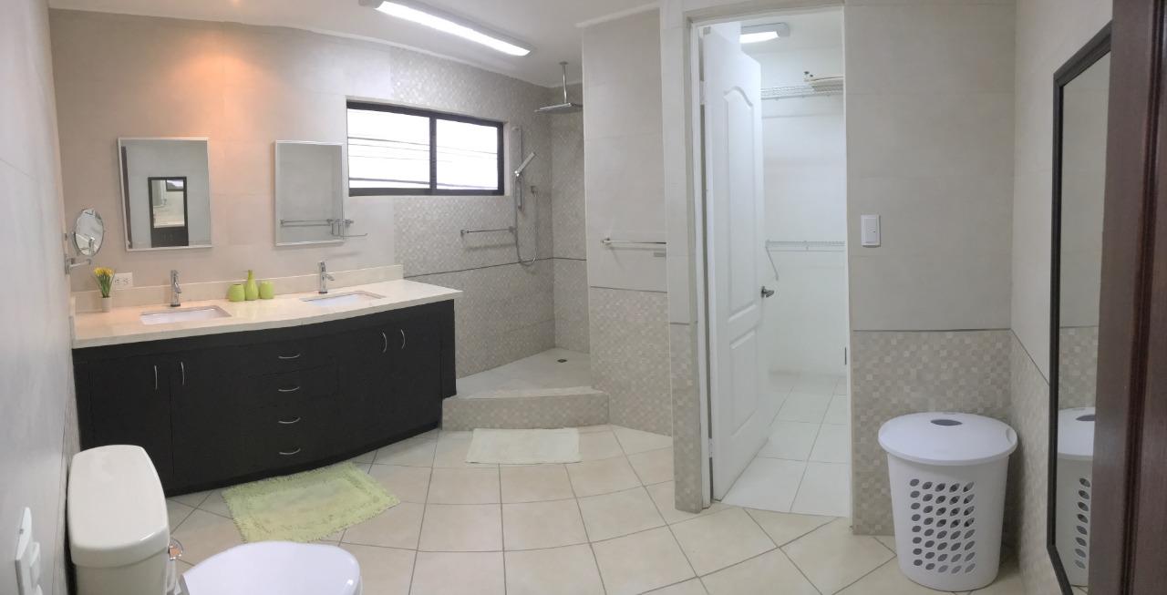 ID# 115907. Independent house for rent in San Antonio, Belén, 250 sqm construction, 340 sqm land, 4 bedrooms, 3 baths, US$1.400/mo + IVA. Two-story house with traditional design, clear and ample spaces, good natural light and fine finishes. Social area featuring an open concept layout with double height ceilings. Terrace with BBQ area that connects directly to the large backyard. Separated kitchen, fully furnished, with breakfast nook, granite countertops, and built-in appliances (vitroceramics top-stove, oven and dishwasher). There is also office, bodega and laundry room. Parking space for several vehicles. The second floor features a very ample master bedroom with private bath and walk-in closet. It also has an A/C unit, the same as one secondary bedroom. Large attic for storage. The property is very secure, it has perimeter wall and main access through electric gate. It has good location, with easy access and close to schools, business centers and shopping malls. Optional: rented furnished.