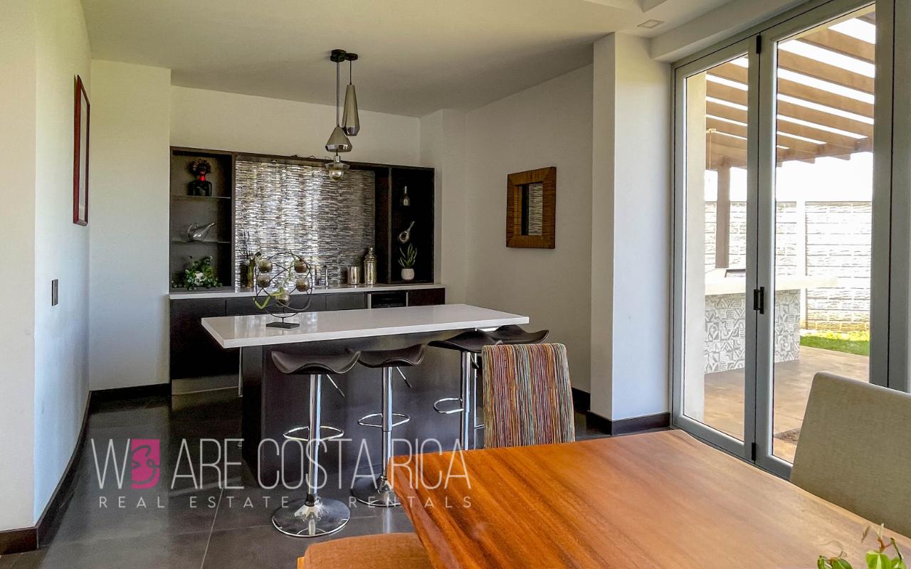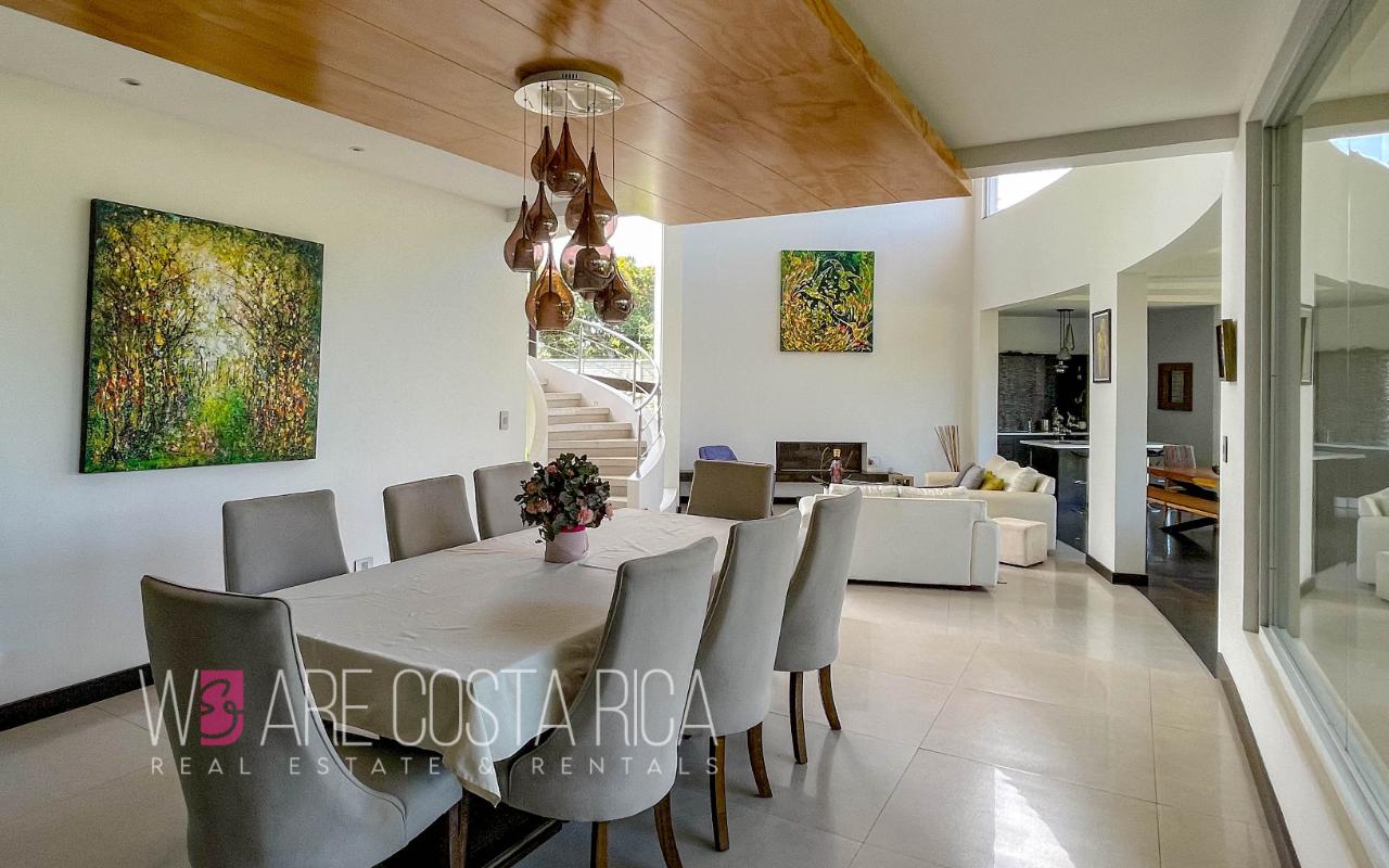 ID# 116248. Luxury independent house for sale in Santo Domingo, Heredia, 600 sqmt construction, 1.600 sqmt land, 3 bedrooms, 2.5 baths, US$1.100.000. Gorgeous 2-story home, with modern architecture, ample spaces, luxury finishes and spectacular valley views. Fresh open concept, high ceilings and large expanses of glass where vast natural light oozes through. Large social space which includes 2 living rooms, formal dining, bar area, and semi-integrated kitchen. Terrace and spacious backyard with panoramic views. Upstairs, 3 bedrooms and 2 full baths. Ample master suite with relaxing hot tub and huge walk-in closet. All bedrooms with views. The house also has large storage rooms, half guest bath, laundry room, service quarters, space for pets and closed garage for 2 vehicles. The property is very secure, it has security system with cameras and it’s surrounded by perimeter wall. Great location in a very centric area with access to a wide variety of urban services and facilities.