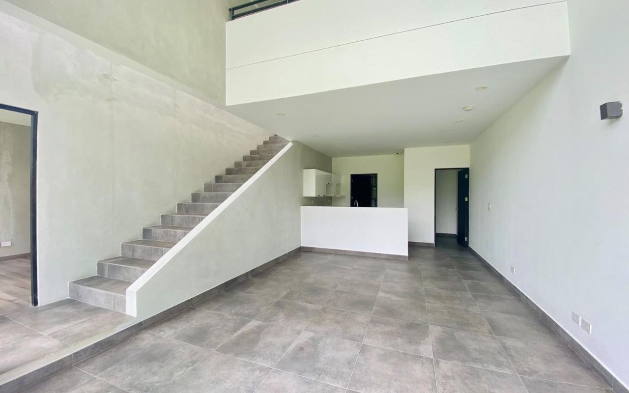 ID# 116277. Contemporary apartment for sale in Guachipelín, Escazú, private condominium, 134 sqmt, 2 bedrooms, 2.5 baths, US$235.000 (negotiable). Apartment with modern design, open concept, fine finishes and a great view. The social space has double-height ceiling and floor-to-ceiling glass which provides vast natural light and amplitude. Integrated kitchen, furnished. Ample bedrooms with laminated floors, one of them is mezzanine-style. There’s laundry area and half bath for visitors. The unit disposes of 2 roofed parking spaces plus a bodega. The condominium offers 24/7 security and amenities like pool, tennis court, and ample green areas with spectacular views.