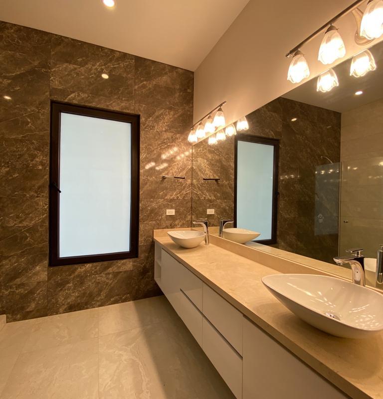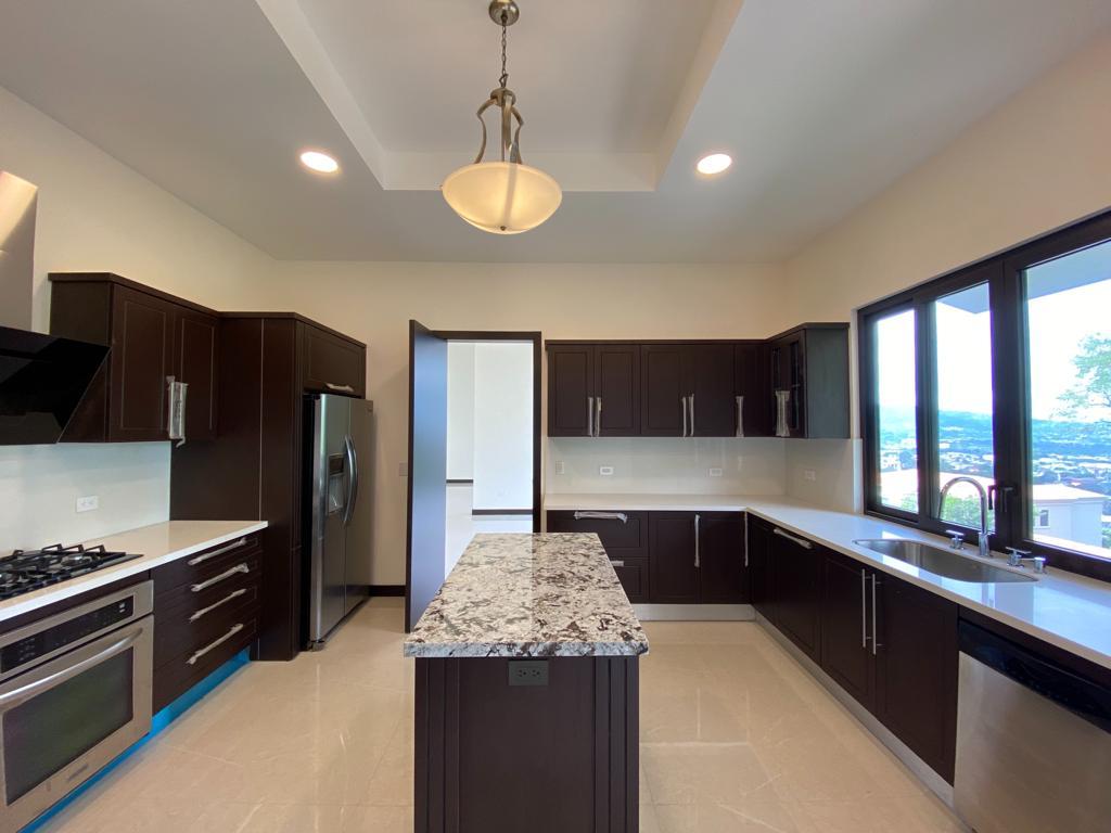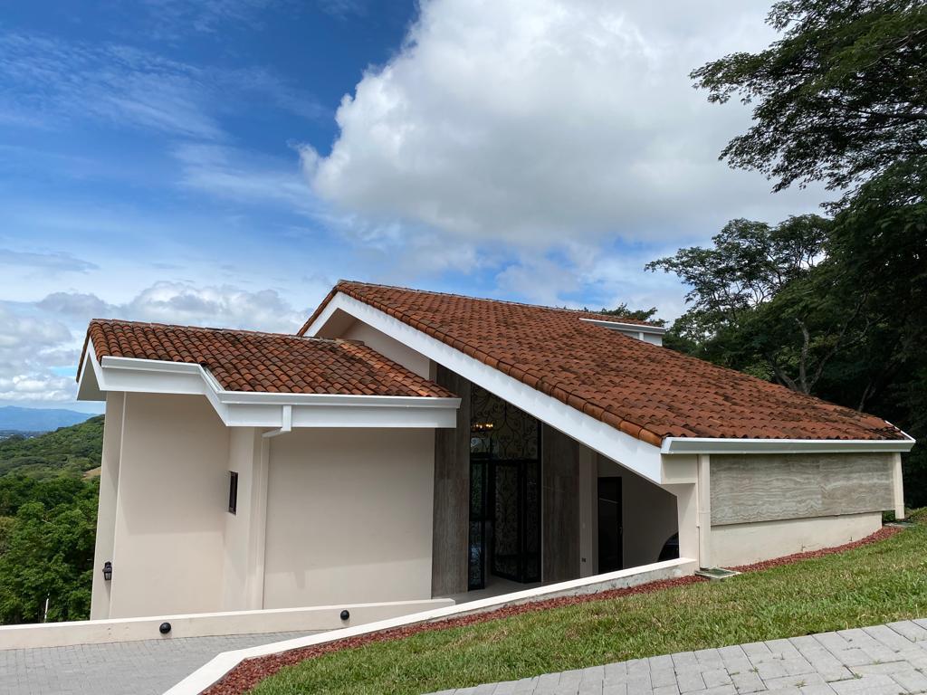 ID# 116326. Gorgeous new home for sale in Santa Ana, Villa Real condominium, 450 sqm construction, 4 bedrooms, 4.5 baths, US$780.000. Beautiful 2-story residence characterized by its ample social space, large green areas and spectacular panoramic views. Modern architecture filled with luxury details and finishes. Vast natural light and freshness due to high ceilings and large windows. Elegant entrance with gorgeous lobby that leads to the formal living and dining. Spacious kitchen with luxury finishes, customized cabinetry and ample breakfast nook. Terrace with views and nice green areas, ideal for having pets. The second floor is dedicated to the family or private area. Large master bedroom with private bath and walk-in closet. Master bath with double vanity. Panoramic views from all bedrooms. The secondary bedrooms also have their private bath. Finally, the property offers an ample parking with the garage and additional space in the driveway. The condominium offers full security, privacy and very cool amenities. The club house is impressive, with multiple swimming pools, gym, massage areas, tennis courts, gardens, and oversized meeting areas throughout. Also, quiet streets, proper sidewalks, and green areas, making this a truly peaceful place and fantastic for raising a family within a safe environment.