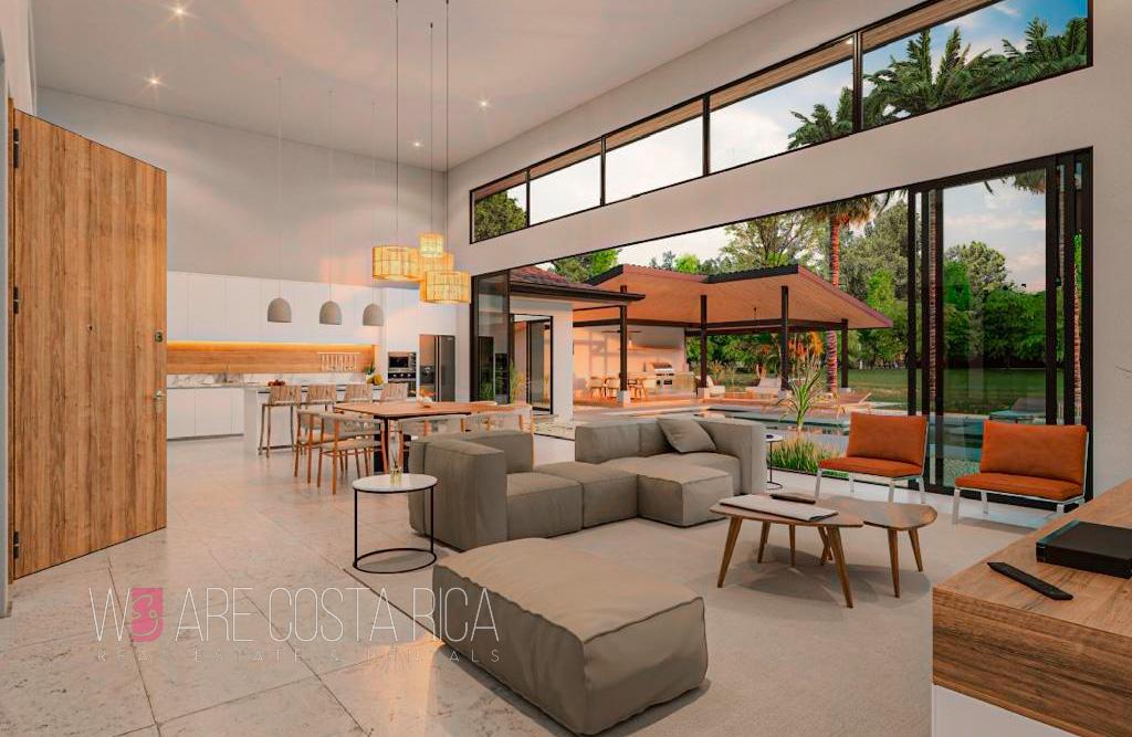 ID# 116384. Luxury beach home for sale in Guanacaste, Hacienda Pinilla condominium, 350 sqm construction, 2.500 sqm land, 4 bedrooms, 4.5 baths, US$1.675.000. Step into a world of refined elegance and natural beauty with this exceptional luxury beach home nestled within the prestigious community of Hacienda Pinilla in Guanacaste. Offering a harmonious blend of sophisticated design and idyllic coastal living, this residence presents a rare opportunity to immerse yourself in tranquility and embrace a truly extraordinary lifestyle. Situated on one of the largest lots in the complex, this magnificent home exudes exclusivity and grandeur. Every detail has been meticulously crafted to create an ambiance of pure luxury and timeless allure. The well-appointed interiors boast an impressive 350 sqm of living space, providing ample room for both relaxation and entertainment. As you step through the elegant entrance, you are immediately greeted by an atmosphere of warmth and serenity. The open concept design seamlessly connects the main living area, featuring spacious dining and entertaining spaces, with a modern, fully integrated kitchen. This creates a seamless flow throughout the home, perfect for hosting gatherings and creating cherished memories with loved ones. Large, floor-to-ceiling windows bathe the interiors in natural light, allowing the stunning views of the surrounding nature to serve as a breathtaking backdrop. From every room, you can marvel at the panoramic vistas of the lush landscapes, capturing the essence of Guanacaste's natural beauty. A true haven of relaxation awaits you outdoors, where a private pool beckons you to indulge in refreshing dips and moments of blissful leisure. The expansive roofed terrace provides the ideal setting for alfresco dining, while the surrounding green areas invite you to bask in the gentle caress of the coastal breeze. Here, you can savor the exquisite blend of comfort and natural splendor, immersing yourself in the unparalleled beauty of Hacienda Pinilla. Beyond the confines of this remarkable home, Hacienda Pinilla offers a world of unparalleled amenities and captivating experiences. This gated beachfront community encompasses over 50 kilometers of biking and hiking trails, where you can explore the enchanting landscapes and immerse yourself in the vibrant flora and fauna that call this place home. Golf enthusiasts will delight in the award-winning beachfront golf course, while those seeking adventure can ride the waves at renowned surfing spots like Little Hawaii and Playa Avellanas. Tennis courts invite friendly matches, and the prestigious JW Marriott resort offers additional dining and entertainment options, ensuring that every desire is catered to within this remarkable coastal sanctuary. Discover the true meaning of refined coastal living at this luxury beach home in Hacienda Pinilla. Immerse yourself in the tranquil ambiance, where elegance and natural beauty intertwine seamlessly. This is an unparalleled opportunity to create a lifetime of cherished memories and experience the pinnacle of Guanacaste's coastal lifestyle.