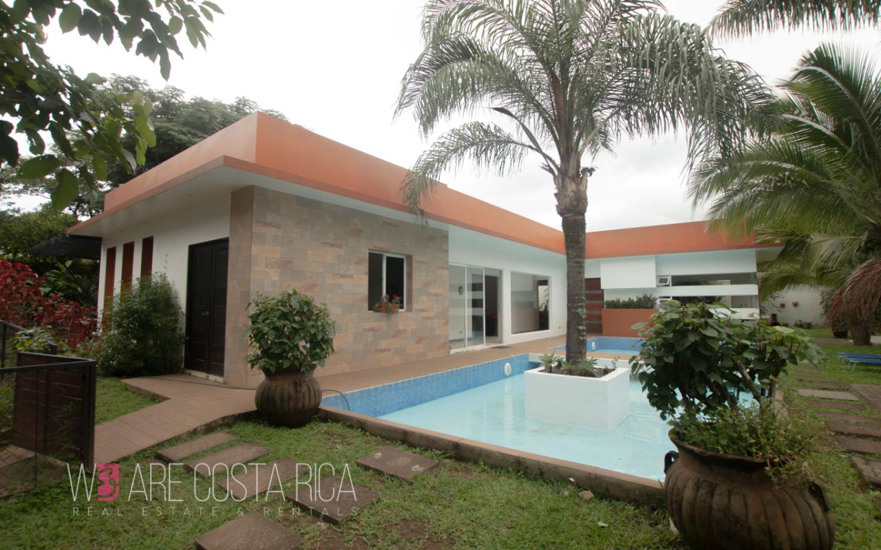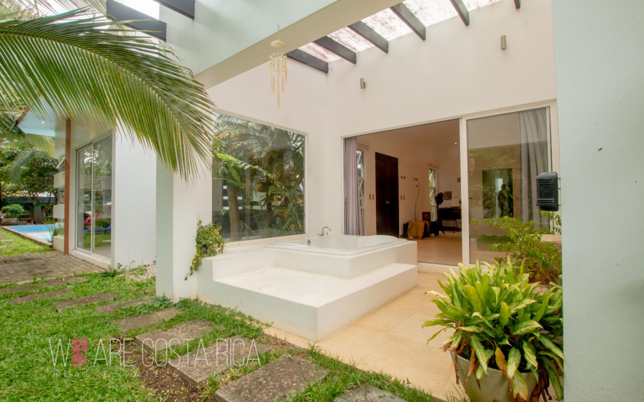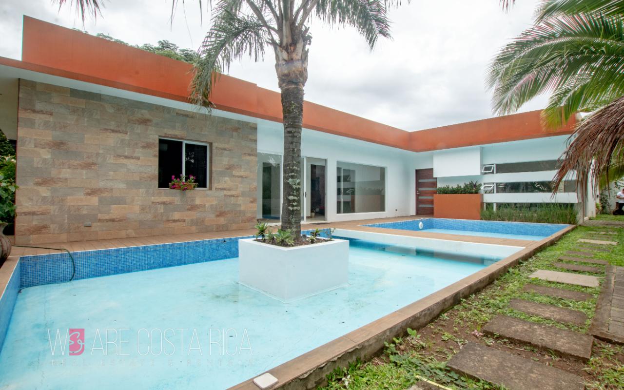 ID# 116411. Single-level home with pool for sale in La Guácima, Caballo Real residential condominium, 450 sq construction, 4.688 sqm land, 2 bedrooms, 2 baths, US$500.000. Beautiful house of contemporary design, all in one level, very open and fresh. Vast natural light oozes through every corner of the house that features the finest finishes. Incredible outdoors area, ideal for entertaining with the jacuzzi in the terrace, and the private pool surrounded by a gorgeous garden and let’s don’t forget that rancho with kitchenette and deck. Open concept distribution with living room, dining and integrated kitchen. The kitchen has granite finishes, a large island/breakfast nook, and comes equipped with stove, oven, fridge and extractor. There’s a guest house, an office, laundry room and garage for 6 vehicles. In the private area of the house, both bedrooms have A/C unit and they also have direct access to the garden. The residential offers 24/7 security, and common spaces with club house, BBQ rancho, playground, beautiful green areas and panoramic views.