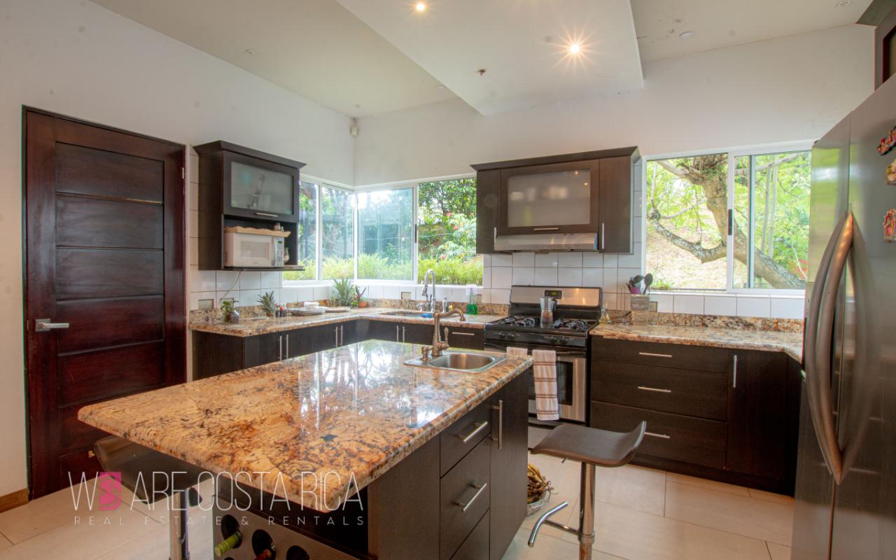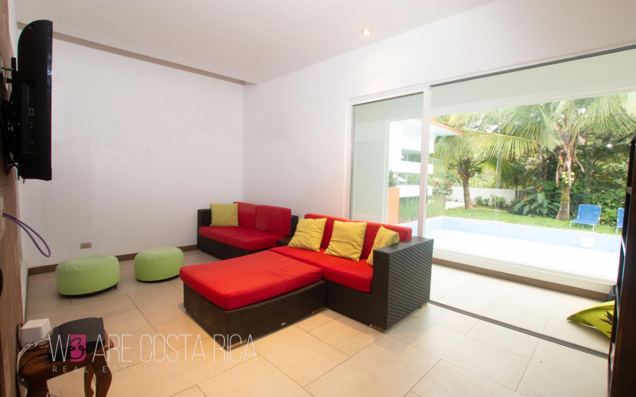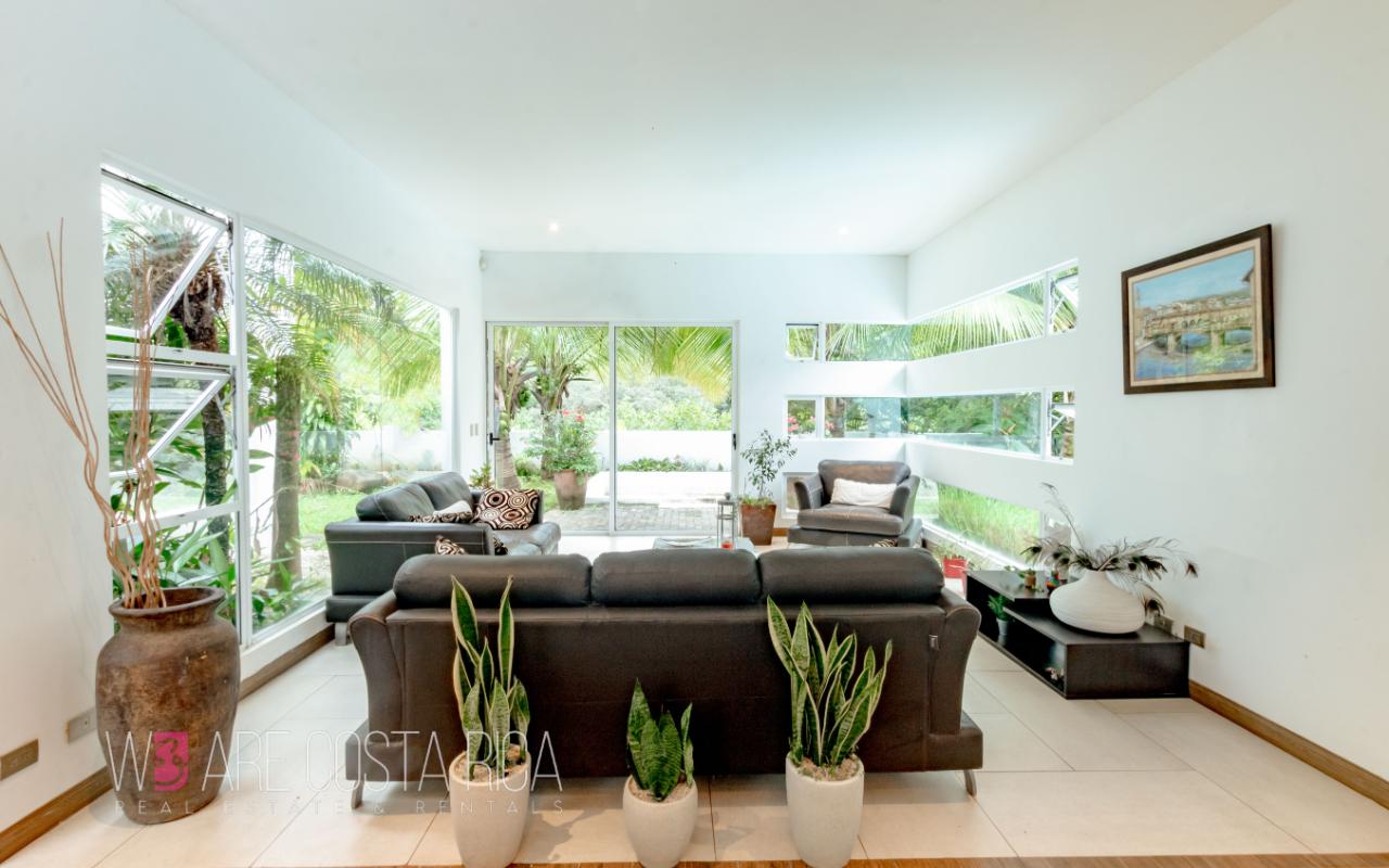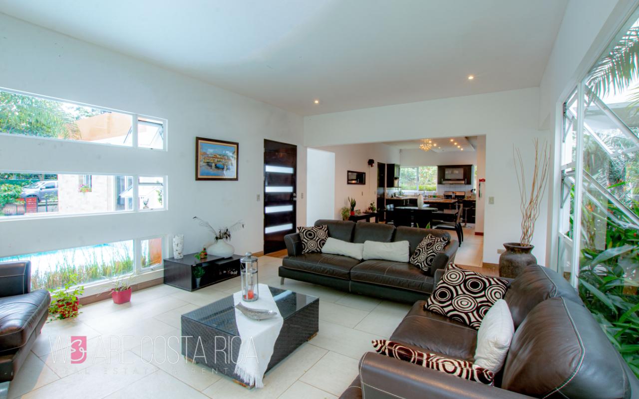 ID# 116411. Single-level home with pool for sale in La Guácima, Caballo Real residential condominium, 450 sq construction, 4.688 sqm land, 2 bedrooms, 2 baths, US$500.000. Beautiful house of contemporary design, all in one level, very open and fresh. Vast natural light oozes through every corner of the house that features the finest finishes. Incredible outdoors area, ideal for entertaining with the jacuzzi in the terrace, and the private pool surrounded by a gorgeous garden and let’s don’t forget that rancho with kitchenette and deck. Open concept distribution with living room, dining and integrated kitchen. The kitchen has granite finishes, a large island/breakfast nook, and comes equipped with stove, oven, fridge and extractor. There’s a guest house, an office, laundry room and garage for 6 vehicles. In the private area of the house, both bedrooms have A/C unit and they also have direct access to the garden. The residential offers 24/7 security, and common spaces with club house, BBQ rancho, playground, beautiful green areas and panoramic views.