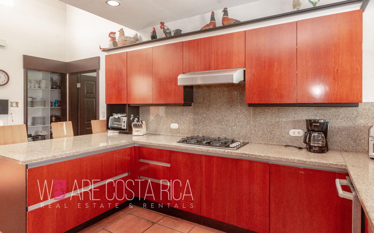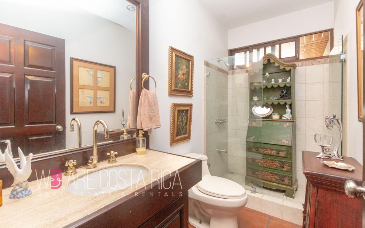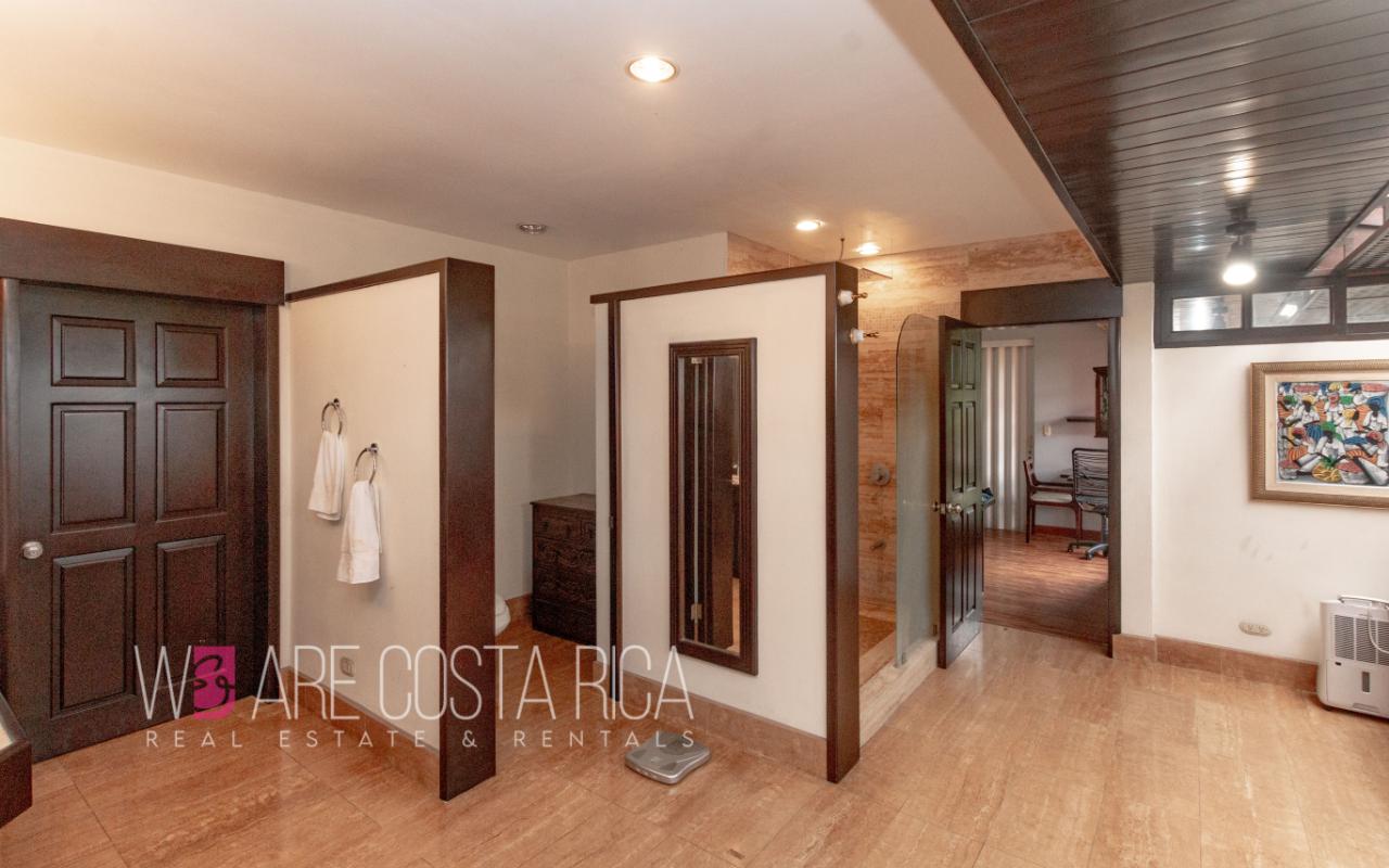 ID# 116462. Luxury residential home with private pool for sale in Los Laureles, Escazú, 500 sqm construction, 4.027 sqm land, 4 bedrooms, 5 baths, US$1.300.000. Indulge in luxury living with this magnificent, one-story residence located in the prestigious Los Laureles neighborhood of Escazú. Featuring 500 sqm of construction and situated on an impressive 4.027 square meter lot, this beautiful home boasts four bedrooms and five bathrooms, making it the perfect sanctuary for those seeking privacy, comfort, and style. From the moment you step into this gorgeous home, you'll be struck by its traditional architecture and impeccable interior design. The large, airy spaces are flooded with natural light, while rustic elements such as stone decorations and exposed beams in double-height ceilings create an elegant yet comfortable ambiance throughout the house. The formal living room and dining room both connect directly to the large, covered terrace, which features a modern BBQ & Grill area, making it the perfect spot for entertaining guests. Overlooking the pool (with solar heating) and the stunning, expansive garden, this area is truly a feast for the senses. The kitchen, which is separate from the living and dining areas, is fully furnished with granite countertops and equipped with top-of-the-line stainless steel appliances, including a refrigerator, stove, oven, microwave, and dishwasher. There is also a fully-equipped laundry room with a washer/dryer, a maid's quarters, a gym, and a covered garage with space for three vehicles and a storage room. The private area of the house features four spacious bedrooms with hardwood floors and five full bathrooms. Each bedroom is equipped with split-type air conditioning units, ensuring a comfortable night's sleep every night. For added security, the house is equipped with an alarm system and a water pump. This luxurious property is situated in a safe residential area that offers plenty of privacy to its residents. With residential land use and 50% density, this is a rare opportunity to build your dream home in one of the most sought-after areas of Costa Rica. Located close to social and sports clubs, shopping centers, hospitals, private schools, restaurants, and entertainment venues, with easy access to Route 27, this location is truly unbeatable. This stunning luxury home is the perfect blend of classic elegance and modern comfort, making it the ultimate dream home for those who appreciate the finer things in life. With its breathtaking design, unparalleled quality, and exceptional location, this is a truly rare opportunity to own a property that will be the envy of everyone who sees it. Don't miss out on this once-in-a-lifetime opportunity to experience luxury living at its very finest!