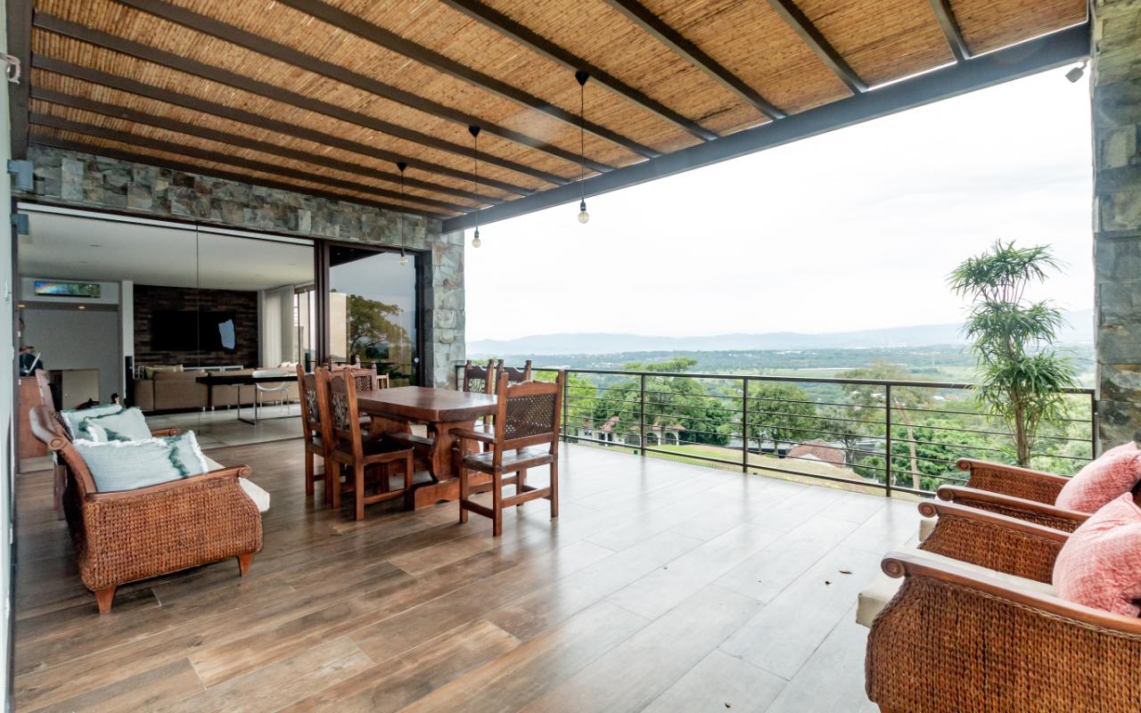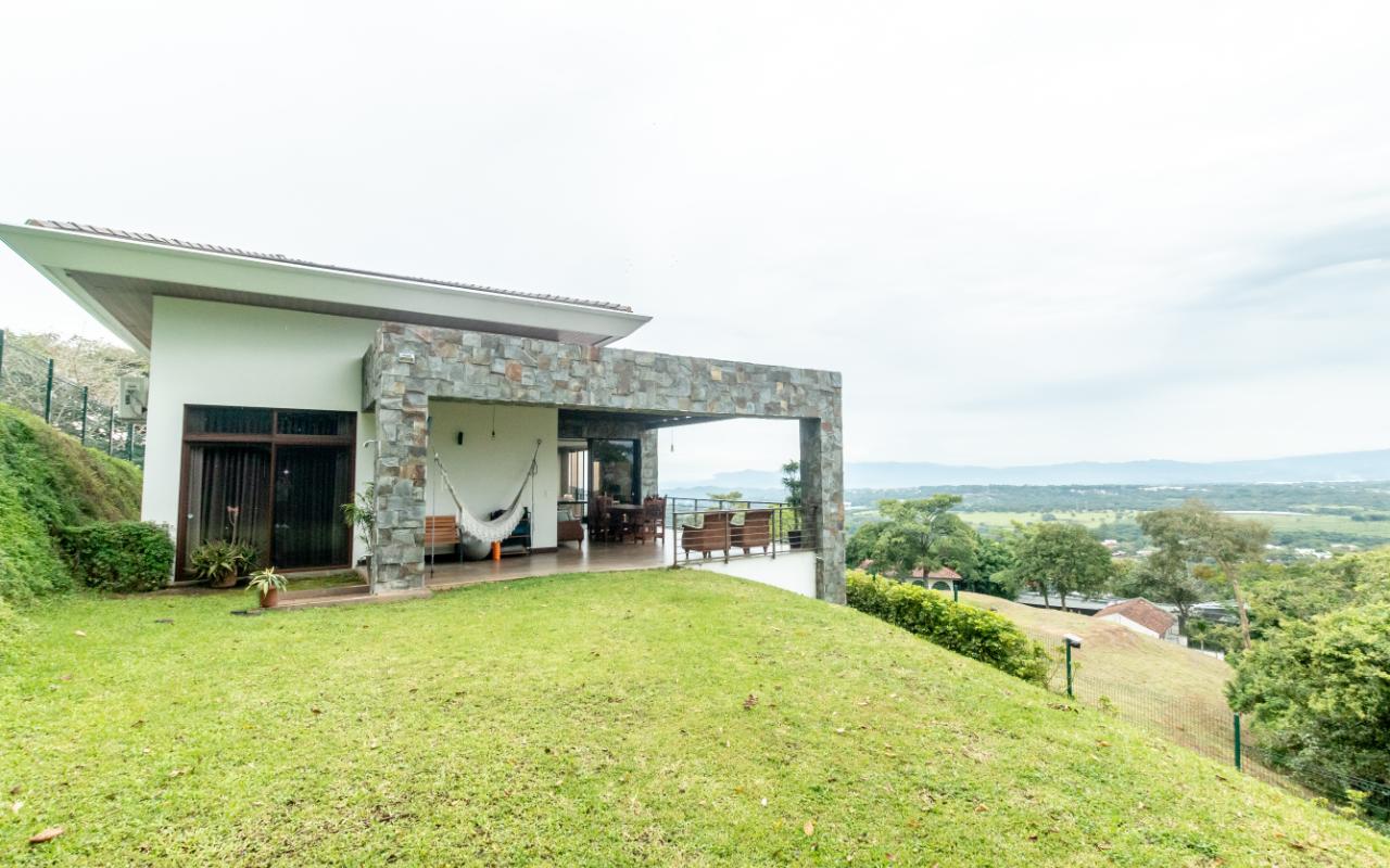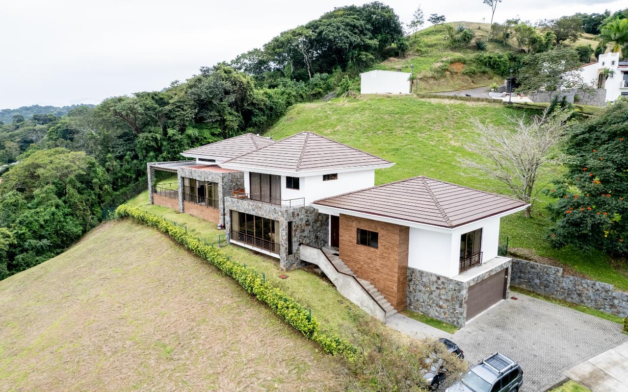 ID# 116471 – Luxury House for Sale in Brasil de Mora, Santa Ana, Altamira Residential Condominium, Costa Rica | 3 Bedrooms | 4 Bathrooms | 600 m² Construction | 2,200 m² Land Casa Luz is a refined luxury residence for sale in Brasil de Santa Ana, located within the exclusive Altamira residential condominium, one of the most private and consolidated gated communities in the western Central Valley of Costa Rica. This elegant two-story home offers 600 m² of construction on an expansive 2,200 m² lot, combining modern architecture, deluxe finishes, generous interior volumes, and truly spectacular 180-degree panoramic views over the valley. Designed for buyers seeking privacy, space, and long-term value, this property represents a rare opportunity in the high-end real estate market of Santa Ana, an area internationally recognized for its excellent climate, strong appreciation, and proximity to the country’s main lifestyle and business hubs. The main level of Casa Luz is dedicated to social living and entertaining, featuring an open yet well-defined layout that flows seamlessly toward large terraces designed to fully capture the sweeping valley views and fresh mountain breezes. Floor-to-ceiling windows surround the social areas, allowing abundant natural light, cross-ventilation, and a constant visual connection with the surrounding greenery. The contemporary kitchen is separated but visually integrated, offering high ceilings, a comfortable dinette area, white quartz countertops, and warm wooden finishes that balance elegance with functionality—ideal for both everyday living and hosting guests. This level also includes a versatile studio or family room, a laundry area, and a full service room with bathroom, providing excellent operational flow for a luxury home of this scale. The thoughtful distribution enhances privacy while maintaining a sense of openness throughout the residence, making it suitable for families, executives, or international buyers relocating to Costa Rica. All bedrooms are designed as private suites, each featuring fine hardwood floors, walk-in closets, and en-suite bathrooms finished with high-quality materials. The primary bedroom stands out as a true retreat, offering a spacious layout and a large private balcony with breathtaking 180-degree views of the valley—perfect for enjoying Santa Ana’s mild climate, cool evenings, and year-round pleasant weather. The property also includes approved blueprints for the construction of a fourth bedroom, adding flexibility and future value without compromising the existing design. Parking is efficiently resolved with a roofed two-car garage located on a lower level, complemented by ample additional driveway space for up to five more vehicles—an uncommon advantage in luxury homes within gated communities. Surrounding the residence are beautifully maintained gardens and green areas that enhance privacy, tranquility, and the overall sense of exclusivity that defines Casa Luz. Altamira condominium offers 24/7 security with controlled access and CCTV surveillance, wide internal streets, underground electrical wiring for a clean visual environment, and a residents’ clubhouse, all contributing to a secure and well-organized community. The location is one of the property’s strongest assets: just minutes from Multiplaza Escazú, Forum 1, top international schools, private hospitals, gourmet restaurants, and essential services, while remaining close to downtown Santa Ana and offering easy access to Escazú and major highways. Juan Santamaría International Airport (SJO) is approximately 30 minutes away, and the Pacific Coast beaches are reachable in about 90 minutes. This luxury house for sale in Brasil de Santa Ana delivers an exceptional combination of panoramic views, architectural quality, generous land, and strategic location within a secure gated community. Casa Luz is ideal for buyers seeking a private residence, a family home with expansion potential, or a long-term investment in one of Costa Rica’s most desirable high-end residential zones.
