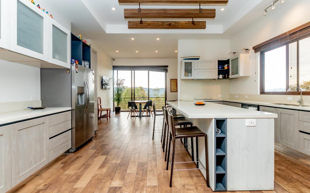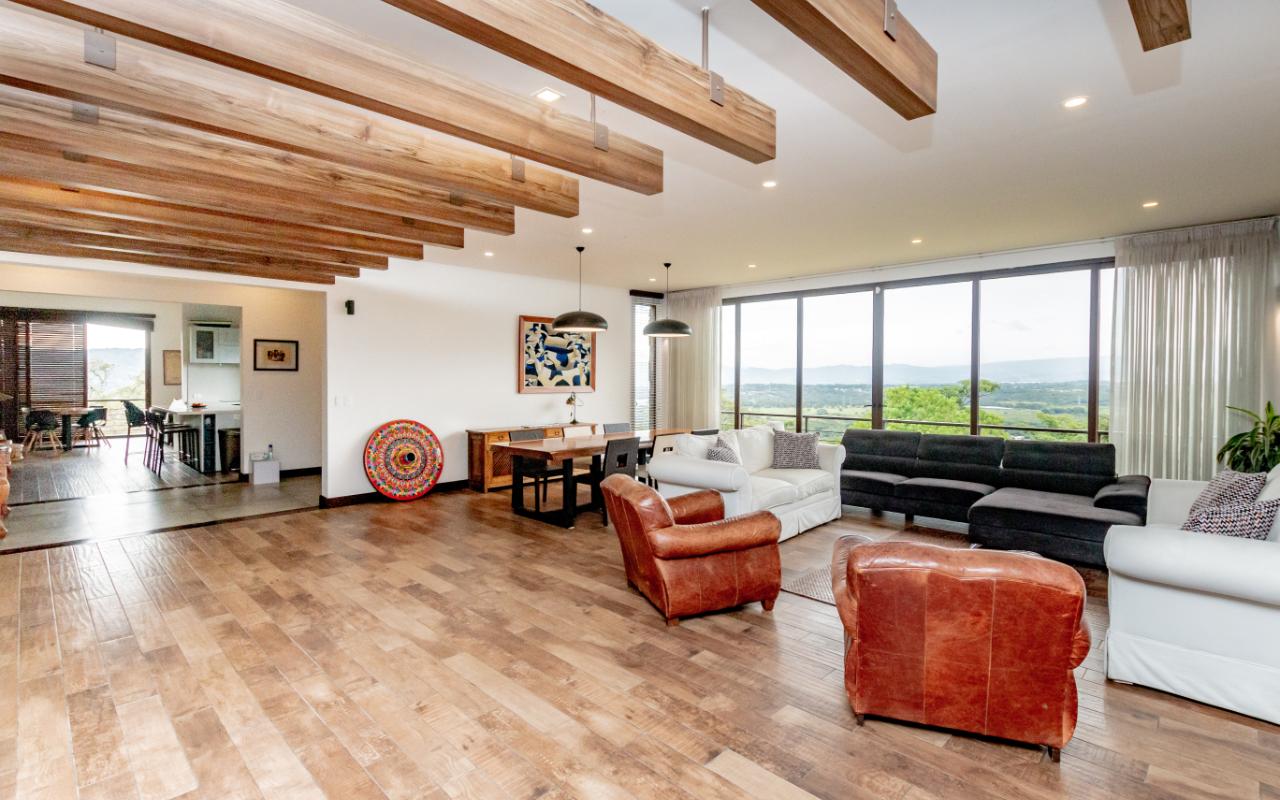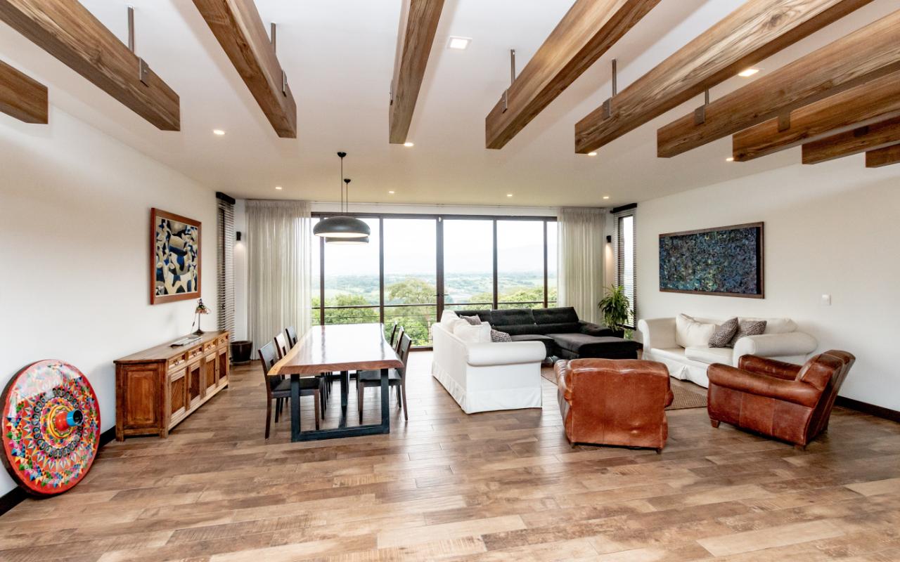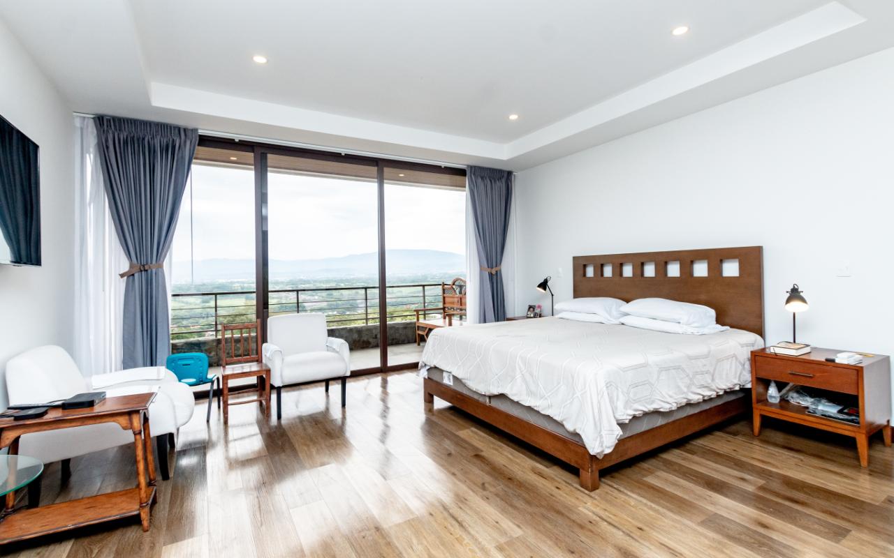 ID# 116471 – Luxury House for Sale in Brasil de Mora, Santa Ana, Altamira Residential Condominium, Costa Rica | 3 Bedrooms | 4 Bathrooms | 600 m² Construction | 2,200 m² Land Casa Luz is a refined luxury residence for sale in Brasil de Santa Ana, located within the exclusive Altamira residential condominium, one of the most private and consolidated gated communities in the western Central Valley of Costa Rica. This elegant two-story home offers 600 m² of construction on an expansive 2,200 m² lot, combining modern architecture, deluxe finishes, generous interior volumes, and truly spectacular 180-degree panoramic views over the valley. Designed for buyers seeking privacy, space, and long-term value, this property represents a rare opportunity in the high-end real estate market of Santa Ana, an area internationally recognized for its excellent climate, strong appreciation, and proximity to the country’s main lifestyle and business hubs. The main level of Casa Luz is dedicated to social living and entertaining, featuring an open yet well-defined layout that flows seamlessly toward large terraces designed to fully capture the sweeping valley views and fresh mountain breezes. Floor-to-ceiling windows surround the social areas, allowing abundant natural light, cross-ventilation, and a constant visual connection with the surrounding greenery. The contemporary kitchen is separated but visually integrated, offering high ceilings, a comfortable dinette area, white quartz countertops, and warm wooden finishes that balance elegance with functionality—ideal for both everyday living and hosting guests. This level also includes a versatile studio or family room, a laundry area, and a full service room with bathroom, providing excellent operational flow for a luxury home of this scale. The thoughtful distribution enhances privacy while maintaining a sense of openness throughout the residence, making it suitable for families, executives, or international buyers relocating to Costa Rica. All bedrooms are designed as private suites, each featuring fine hardwood floors, walk-in closets, and en-suite bathrooms finished with high-quality materials. The primary bedroom stands out as a true retreat, offering a spacious layout and a large private balcony with breathtaking 180-degree views of the valley—perfect for enjoying Santa Ana’s mild climate, cool evenings, and year-round pleasant weather. The property also includes approved blueprints for the construction of a fourth bedroom, adding flexibility and future value without compromising the existing design. Parking is efficiently resolved with a roofed two-car garage located on a lower level, complemented by ample additional driveway space for up to five more vehicles—an uncommon advantage in luxury homes within gated communities. Surrounding the residence are beautifully maintained gardens and green areas that enhance privacy, tranquility, and the overall sense of exclusivity that defines Casa Luz. Altamira condominium offers 24/7 security with controlled access and CCTV surveillance, wide internal streets, underground electrical wiring for a clean visual environment, and a residents’ clubhouse, all contributing to a secure and well-organized community. The location is one of the property’s strongest assets: just minutes from Multiplaza Escazú, Forum 1, top international schools, private hospitals, gourmet restaurants, and essential services, while remaining close to downtown Santa Ana and offering easy access to Escazú and major highways. Juan Santamaría International Airport (SJO) is approximately 30 minutes away, and the Pacific Coast beaches are reachable in about 90 minutes. This luxury house for sale in Brasil de Santa Ana delivers an exceptional combination of panoramic views, architectural quality, generous land, and strategic location within a secure gated community. Casa Luz is ideal for buyers seeking a private residence, a family home with expansion potential, or a long-term investment in one of Costa Rica’s most desirable high-end residential zones.