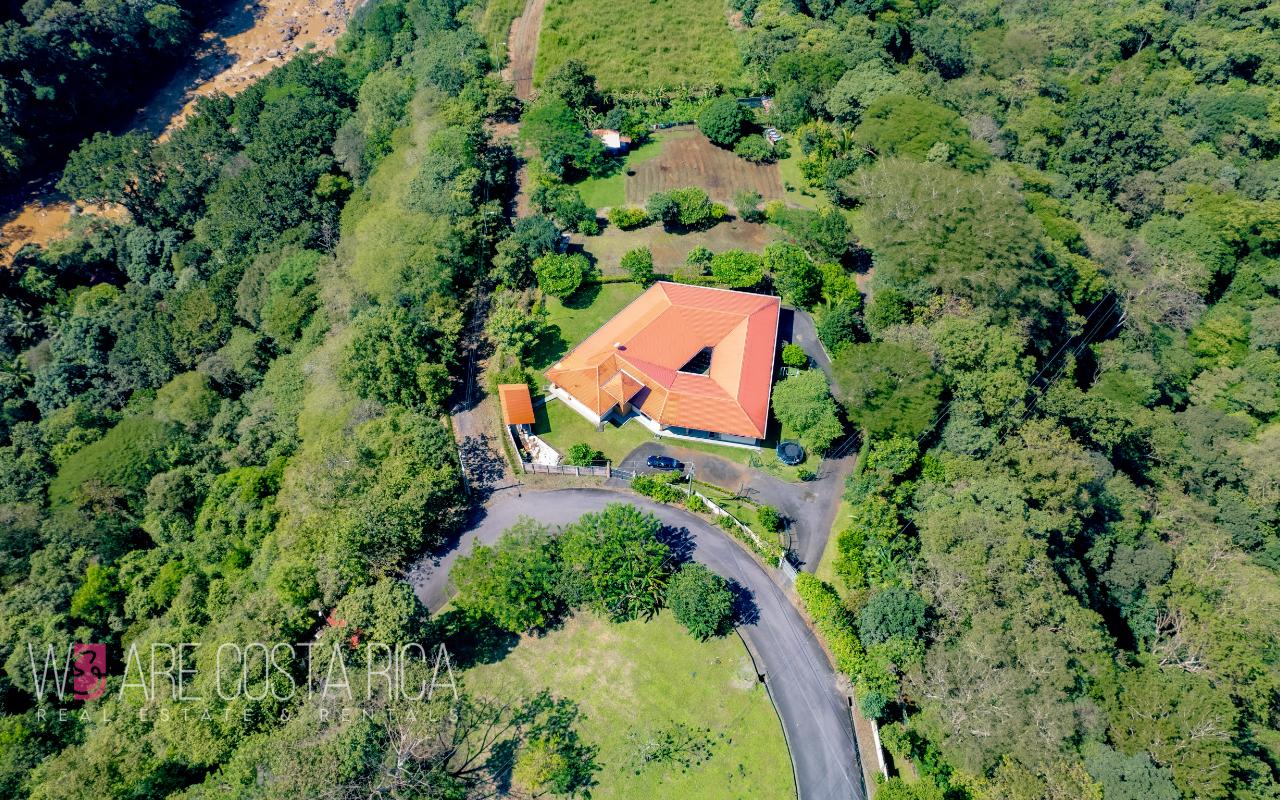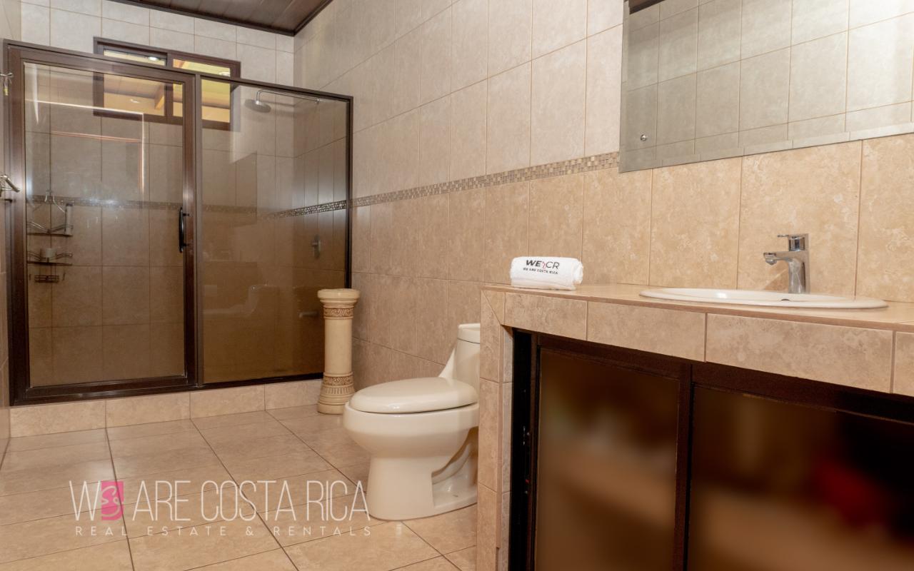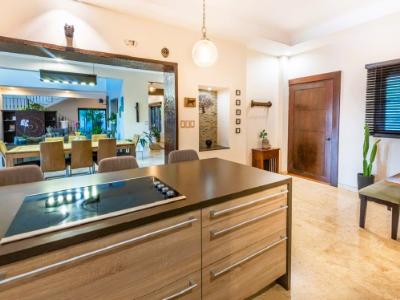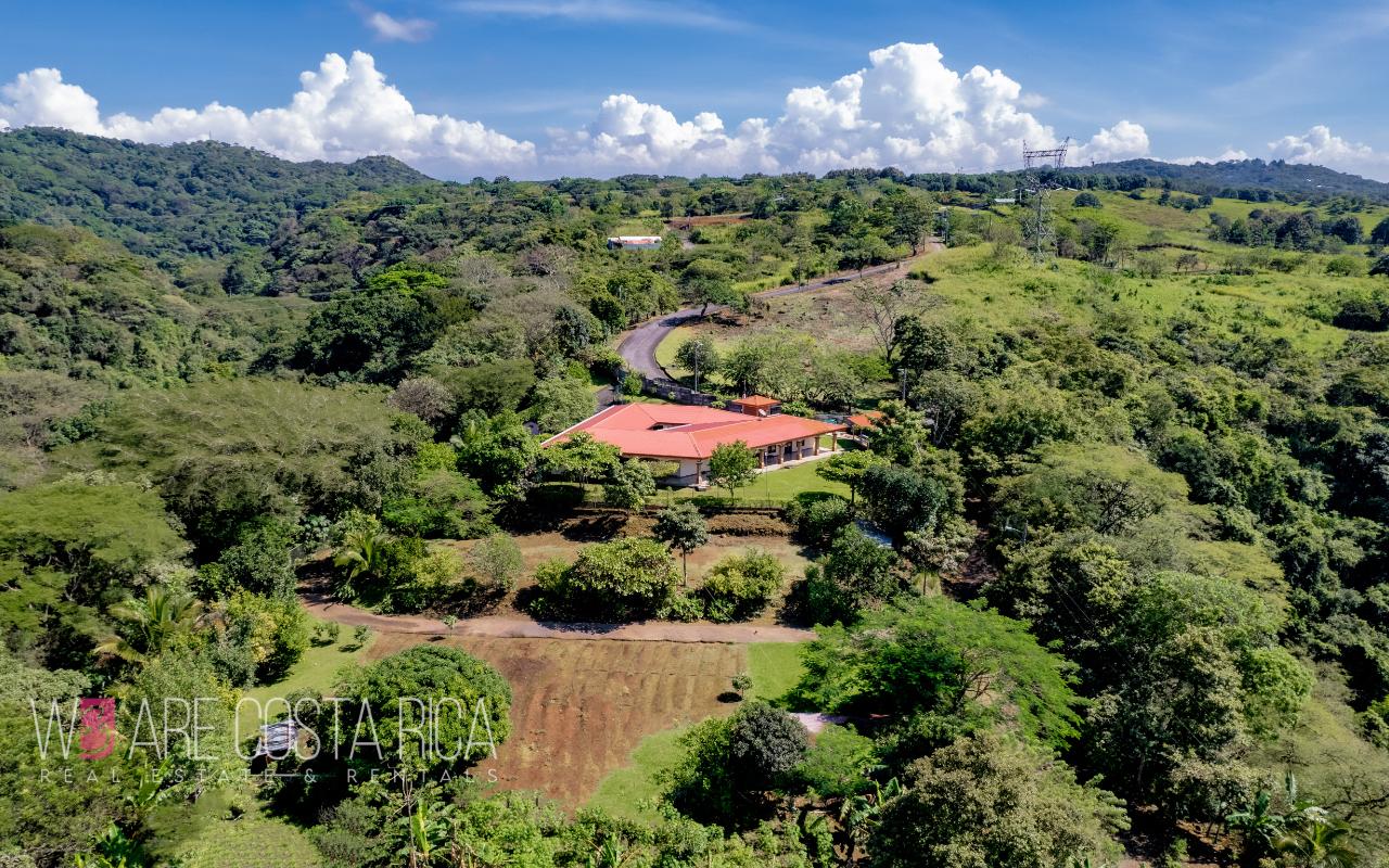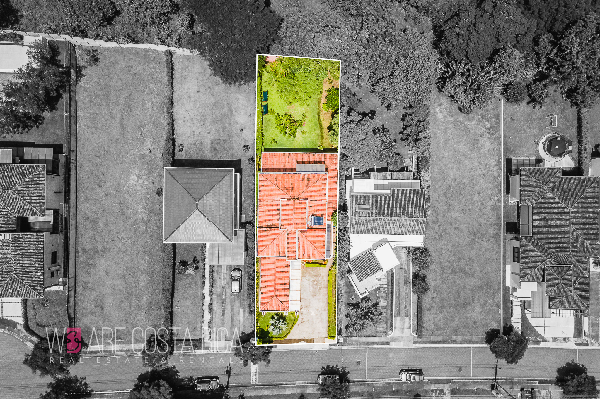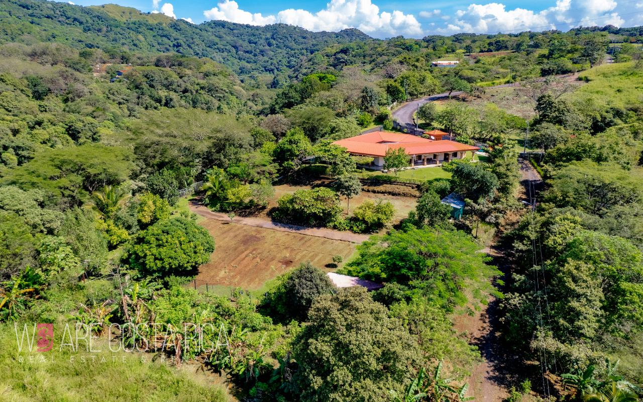 ID#116516. Independent home for sale or rent in Las Vueltas, La Guácima, 500 sqm construction, 14.200 sqm land, 5 bedrooms, 3.5 baths, US$1.400.000 or US$5.500/mo. Beautiful house, one level, it combines a traditional architecture with rustic elements and modern finishes. Excellent wood work in Guanacaste tree wood that can be appreciated in window and door frames, doors, coffered ceilings, and built-in furniture. Spanish porcelain floors and granite countertops. Large social area with fresh open concept. Integrated kitchen with customized furniture, breakfast nook and dinette area. An internal patio provides luminosity and freshness to the entire house. A very large terrace wraps around the house and has a wonderful panoramic view. Ample bedrooms with view to the garden. The house has an office, storage room, laundry room, BBQ area and a roofed garage for 4 vehicles. The extension of the land allows outdoors parking for 20 more cars. The property also has a small house for employees. This house is located within a very secure and tranquil area. It has easy access to downtown La Guácima and all its amenities and services.
