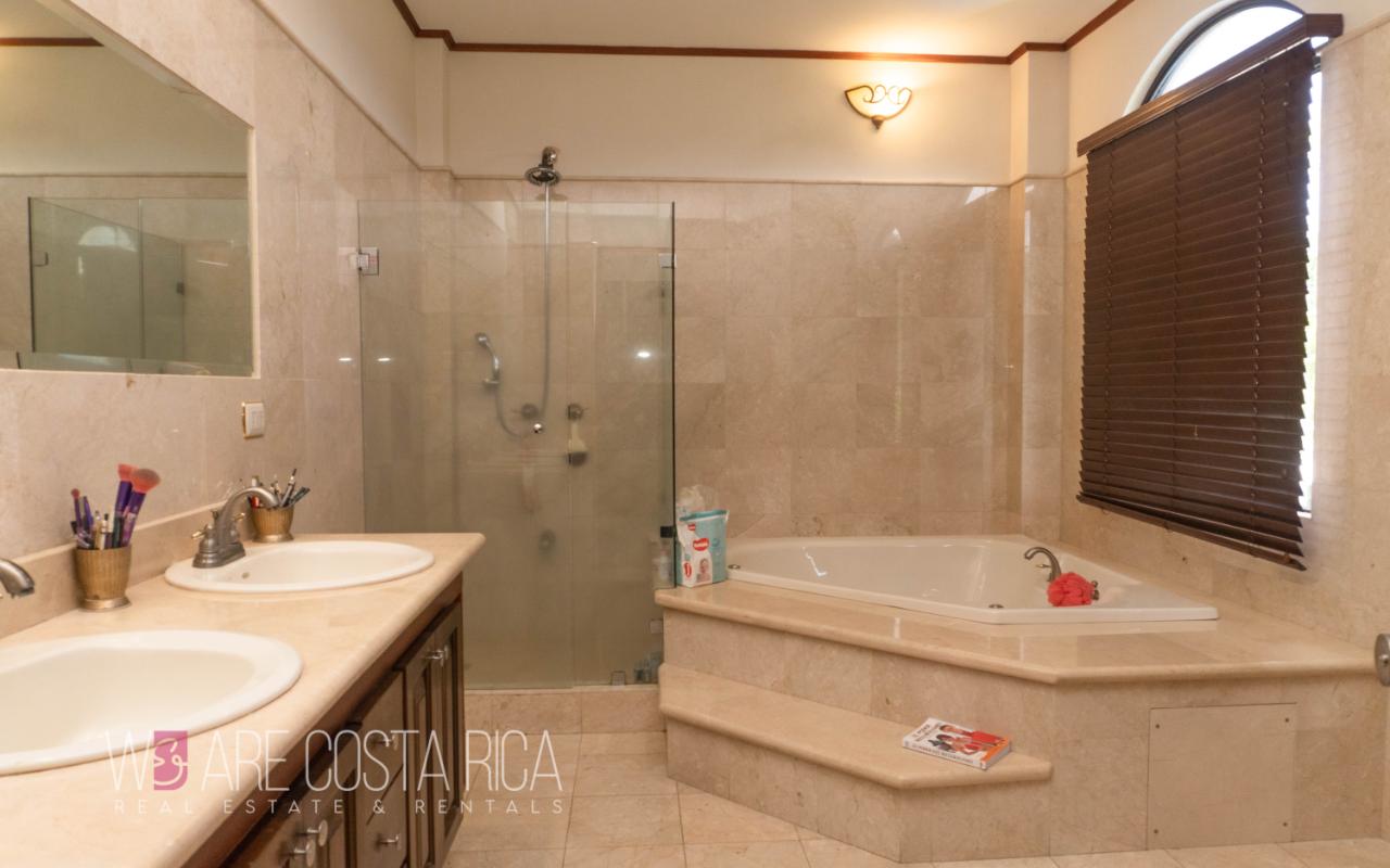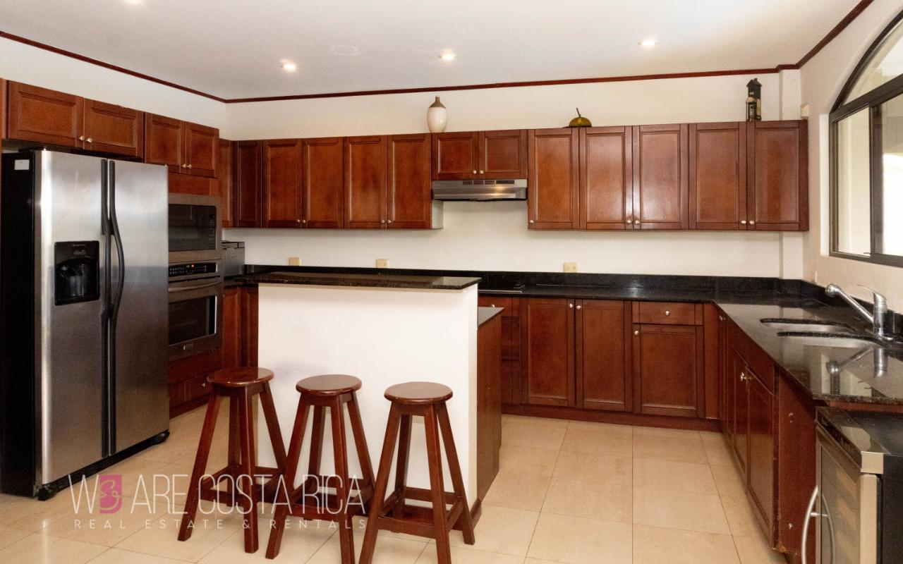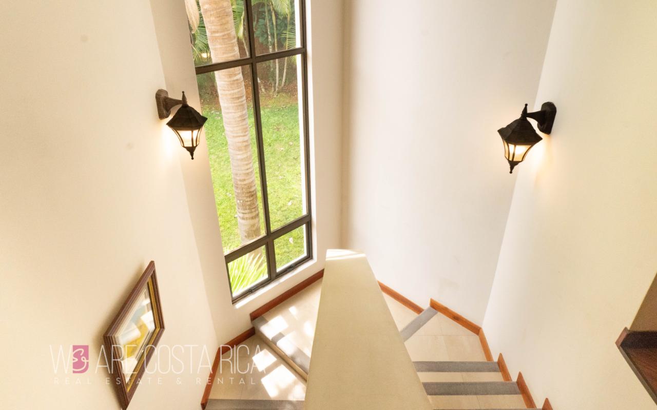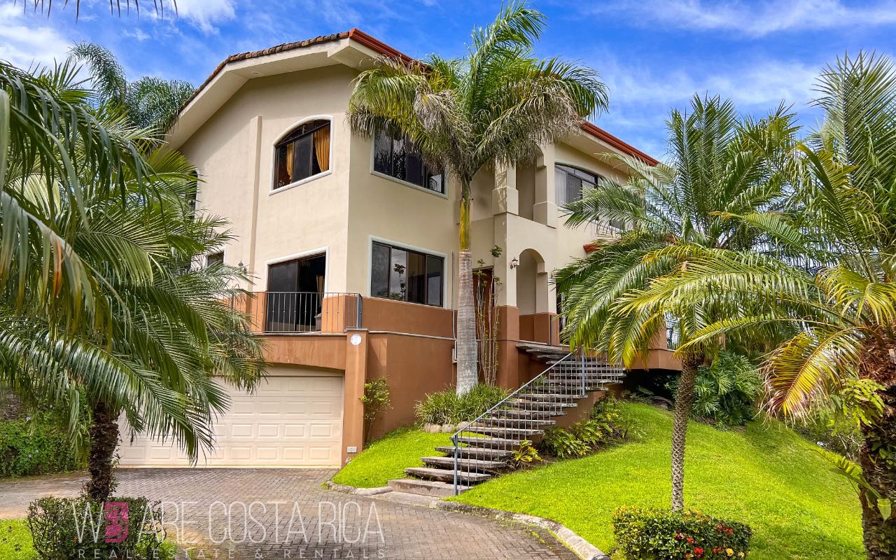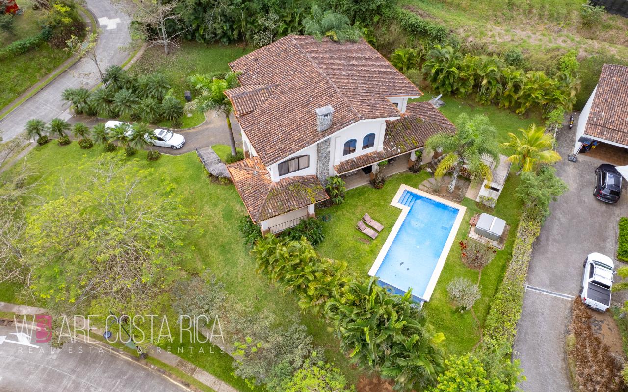 ID# 116564. Beautiful home for sale in Ciudad Colón, Cerro Colón condominium, 453 sqm construction, 2.140 sqm land, 3 bedrooms, 3 baths, US$890.000. Wonderful 3-story residence featuring a contemporary architecture, ample spaces, vast natural light, incredible outdoors areas and deluxe finishes in every corner. The lower level is destined for the service area with laundry room, maid’s quarters with bath and closed garage for 4 vehicles. The main living spaces are in level 2 and 3. Splendid social area, very spacious, open, with excellent natural light and nice natural view. Living room with chimney and formal dining, both with access to the terrace. Outdoors area equally gorgeous with the pool, BBQ area and landscaped garden. Wonderful panoramic views as well, ideal for entertaining with style. Large kitchen with custom wooden furniture, black granite finishes and breakfast nook. The upper level presents the private area of the house featuring 3 ample bedrooms, each with its own bath. The master bedroom has jacuzzi and walk-in closet. There’s also a home office and a nice balcony with views. The condominium offers 24/7 security and amenities such as pools for adults and for kids, BBQ rancho, tennis, basketball and multi-purpose courts, playground and lounge.