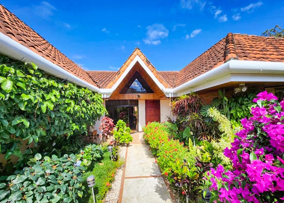 ID# 116701. Independent house for sale or rent in La Guácima, Hacienda Los Reyes condominium, 300 sqm construction, 2.000 sqm land, 3 bedrooms, 2.5 baths, US$620,000. This beautiful rustic house is a one-level property located in a tranquil and peaceful Hacienda Los Reyes, adjacent to one of its parks. It has 300-sqm of construction, built on a 2.000-sqm lot. The house features high coffered ceilings with exposed beams, a spacious and independent kitchen designed with a brick oven and custom made cabinetry. There is a dining room with direct access to a covered terrace with a second kitchen. The house also has 3 ample and comfortable bedrooms with garden vies, 2.5 bathrooms and a service room. The property has its own private well and irrigation system for easy maintenance of the gardens. The property has two covered parking spaces in the garage and two uncovered parking spaces. This rustic house is perfect for those looking for the easy going Pura Vida lifestyle in the countryside that Hacienda Los Reyes has to offer. With its independent kitchen, spacious dining room, and covered terrace, it is the ideal place to enjoy the best of the outdoors. Hacienda Los Reyes is a very family-oriented community that offers a full private security system, and a whole lot of excellent amenities for its residents to seize and enjoy. There are many recreational spaces such as polo, tennis and golf courts within an abundant nature environment that surrounds the houses. Enjoy an excellent climate, beautiful mountains, green meadows, lush trees, fresh air, water, forest reserves, and abundant nature in general.