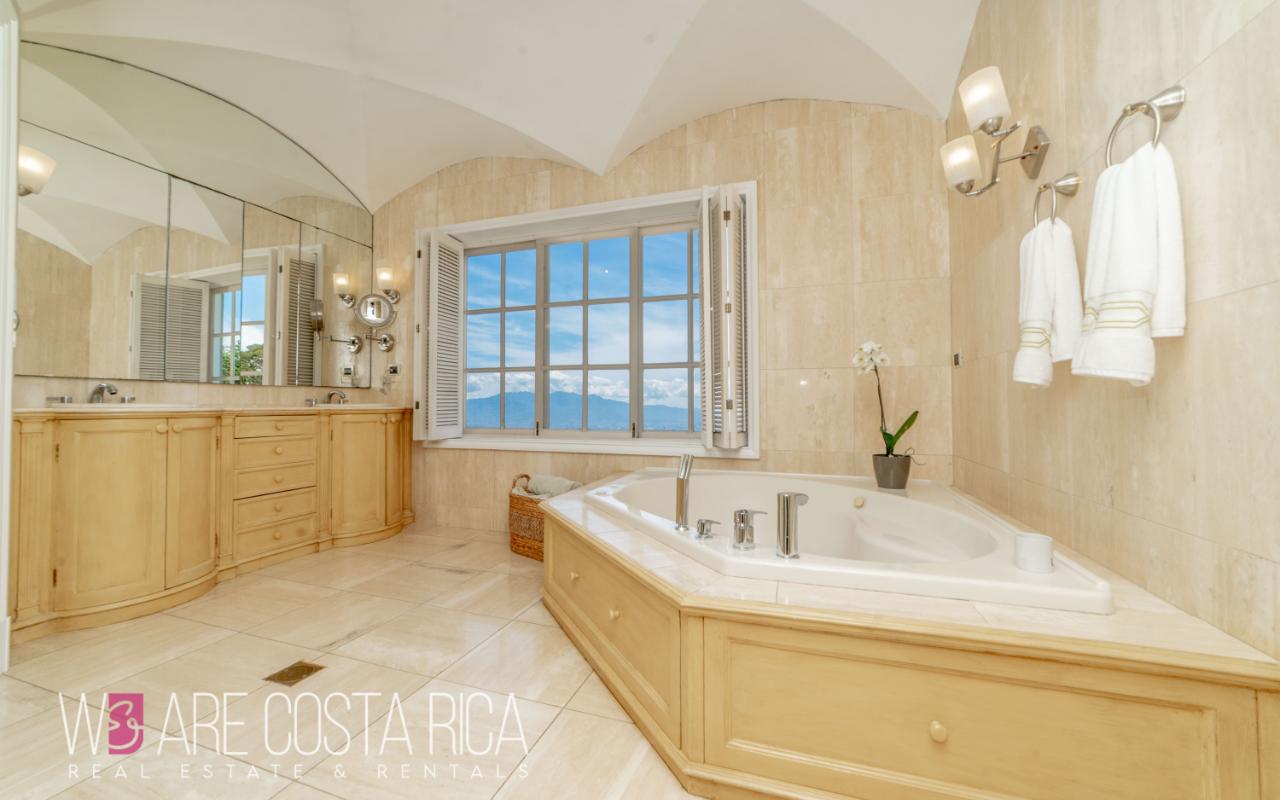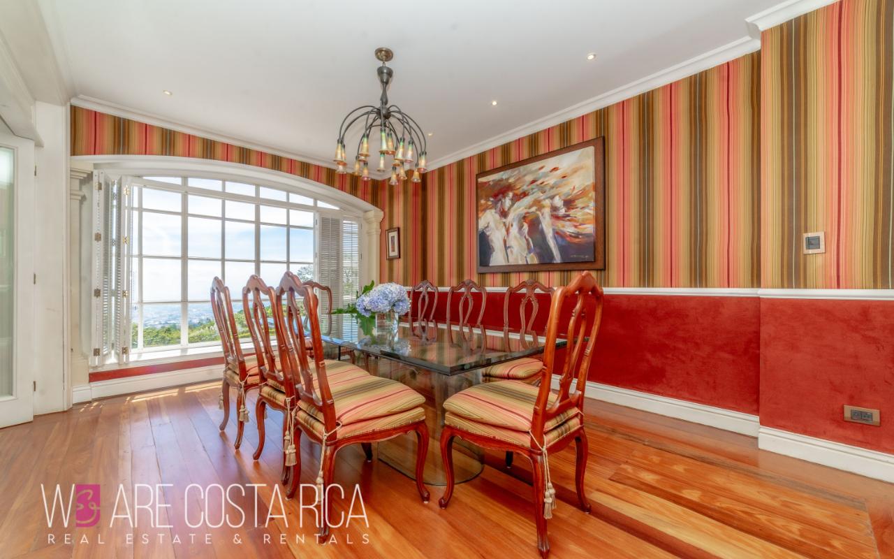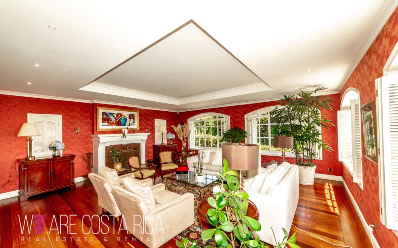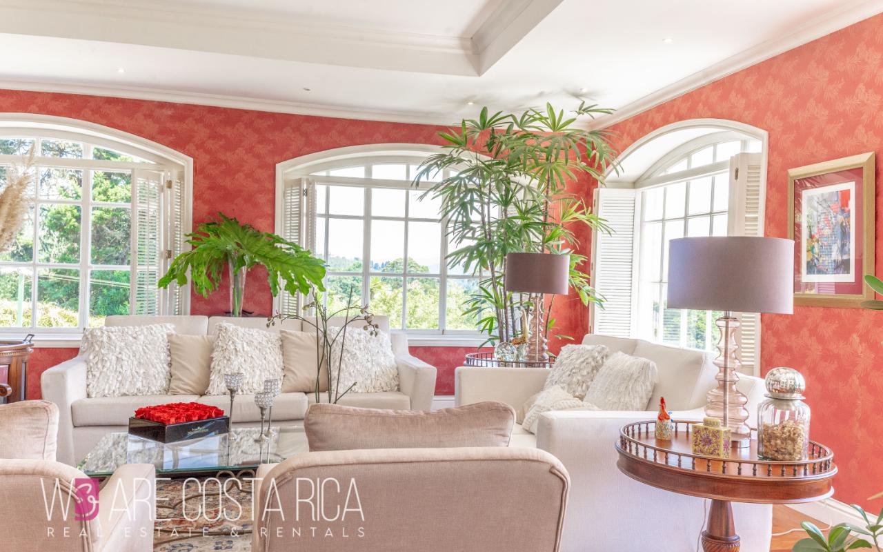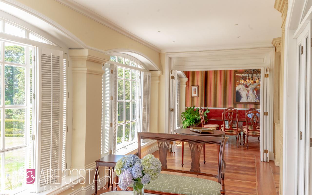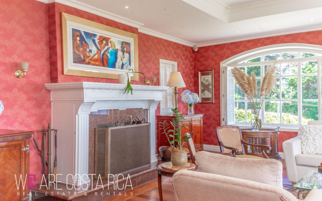 ID# 116809. Luxury home for sale in Rancho Redondo, Goicoechea, 800 sqm construction, 3.240 sqm land, 5 bedrooms, 5.5 baths, US$1.690.000. Nestled within the breathtaking beauty of the mountains, this spectacular house is a true architectural masterpiece. Designed in the 90s by the renowned architect Ronald Zurcher, this neoclassical gem showcases a harmonious blend of elegance and sophistication. As you approach this enchanting residence, you are immediately captivated by its dollhouse-like charm. The meticulously designed facade features a rhythmic interplay of arches, columns, and French windows, drawing your gaze towards the awe-inspiring vista of San José. This house is a testament to timeless design and impeccable craftsmanship, making it one of the most exclusive properties in the entire metropolitan area. Stepping inside, you are greeted by an exquisite interior that exudes warmth and character. The formal living room, with its grand fireplace and French windows, invites you to relax and bask in the ambiance of a bygone era. The traditional charm of this space is further enhanced by the intricate wallpaper and custom furniture, creating an atmosphere of refined elegance. With 5 bedrooms and 5.5 baths, this expansive residence offers ample space for comfortable living. Spanning an impressive 800 sqm of carefully crafted construction, every corner of this house has been thoughtfully designed to maximize both functionality and aesthetic appeal. The rooms are spacious and well-appointed, providing a sanctuary of tranquility and privacy for you and your family. The property sits on a sprawling 3.240 sqm of land, offering endless possibilities for outdoor enjoyment. Immerse yourself in the lush surroundings as you explore the manicured gardens, where vibrant blooms and towering trees create a serene backdrop. The house is equipped with an irrigation system, ensuring that the landscape remains vibrant and thriving year-round. Safety and security are paramount in this residence. For your peace of mind, the house is equipped with a comprehensive security system, including security cameras, an approach alarm, and an internal alarm. In addition, a backup generator and a water reserve tank of 15 cubic meters provide essential utilities during any unforeseen circumstances. Furthermore, the property features kennels for pet lovers, catering to the needs of your furry companions. Convenience meets functionality with underground electricity, ensuring an uninterrupted power supply and maintaining the pristine aesthetics of the surroundings. This attention to detail is a testament to the thoughtfulness and meticulous planning that went into every aspect of this remarkable property. Beyond the confines of this magnificent estate, Rancho Redondo offers a vibrant community with a plethora of amenities. Enjoy the convenience of nearby shopping centers, restaurants, and recreational facilities, all within easy reach. The area boasts excellent schools and medical facilities, making it an ideal location for families seeking both comfort and convenience. Embrace the opportunity to own a truly exceptional property in one of the most coveted areas of the metropolitan region.