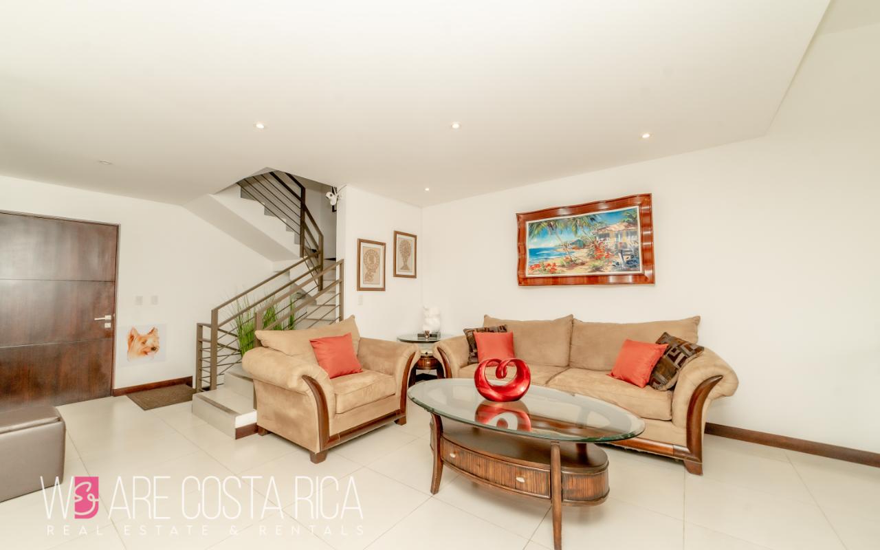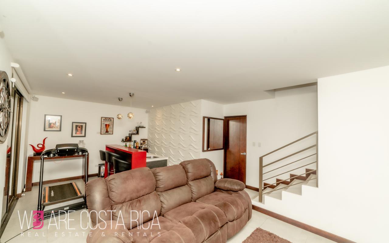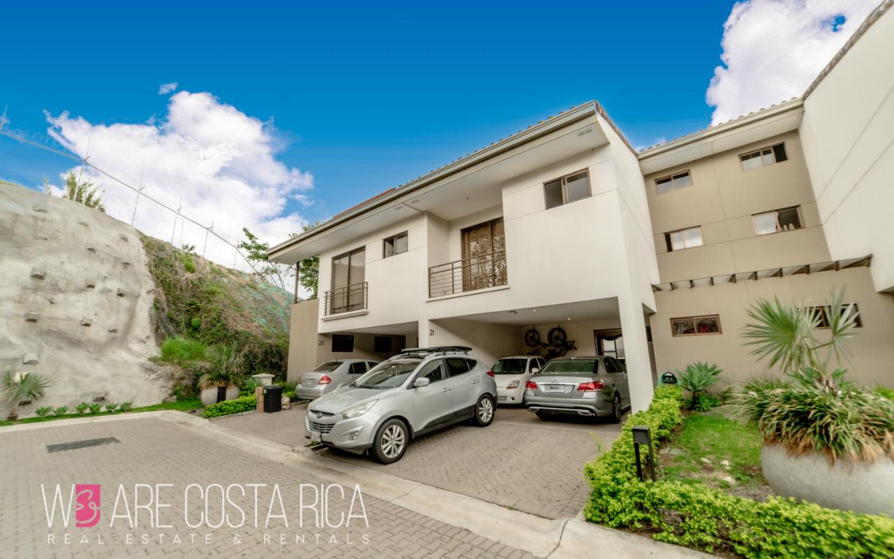ID# 116811. House for sale in Guachipelín, Escazú, Bosques del Café condominium, 230 sqm construction, 150 sqm land, 3 bedrooms, 3.5 baths, US$320.000. Welcome to your dream home in Bosques del Café, an exquisite 3-story house nestled in the vibrant barrio of Guachipelín, Escazú. This remarkable property offers a modern living experience that will captivate your senses and leave you enchanted. With its impeccable design, top-notch amenities, and strategic location, this house is a true gem waiting to be discovered. Spanning across a generous 150 square meters of land, this meticulously crafted residence boasts a spacious and comfortable layout, providing ample room for you and your loved ones. With 230 square meters of thoughtfully designed construction, every inch of this property exudes elegance and sophistication. As you step inside, you are greeted by a stunning first floor that encompasses the dining room, kitchen, sink, and a convenient half bathroom. This open and inviting space is perfect for hosting memorable gatherings with friends and family. The sleek and modern kitchen is a culinary enthusiast's dream, ample storage, and stylish finishes that make cooking a delightful experience. Ascending to the second floor, you will find a captivating TV room where you can unwind and enjoy your favorite shows or movies. The main room is a sanctuary of tranquility, complete with a spacious walk-in closet and a private bathroom that exudes luxury. Two secondary rooms on this floor share a beautifully designed bathroom, ensuring comfort and privacy for everyone in the household. Venturing further, the third floor presents a unique surprise - a tranquil garden and terrace area. Step outside and immerse yourself in a serene outdoor oasis, perfect for relaxation and unwinding amidst the breathtaking natural surroundings. Additionally, there is a large TV room with a full bathroom, offering versatility and endless possibilities for entertainment or creating a dedicated space for hobbies and leisure activities. This remarkable house features three bedrooms, providing ample space for family members or guests. The three and a half baths are elegantly designed, showcasing modern fixtures and premium materials that add a touch of opulence to your daily routine. With air conditioning in all rooms, you can enjoy a comfortable living environment throughout the year, regardless of the weather. Convenience is paramount, and this house offers two indoor parking spaces, ensuring that your vehicles are secure and protected. The inclusion of a laundry area simplifies your daily chores, making tasks effortless and efficient. The property also boasts two amenity spaces, providing you with additional areas to relax, exercise, or socialize. Located in the desirable barrio of Guachipelín, Escazú, this house offers a plethora of advantages. Known for its upscale residential communities and thriving real estate market, Escazú is a highly sought-after destination. You'll find yourself surrounded by an array of amenities such as prestigious schools, world-class dining establishments, upscale shopping centers, and recreational facilities. The proximity to the vibrant capital city of San Jose, just a short drive away, ensures easy access to business hubs, cultural attractions, and entertainment venues. Don't miss the chance to make this extraordinary house your forever home. Contact us now to schedule a viewing and embark on a remarkable journey of comfort, and serenity.