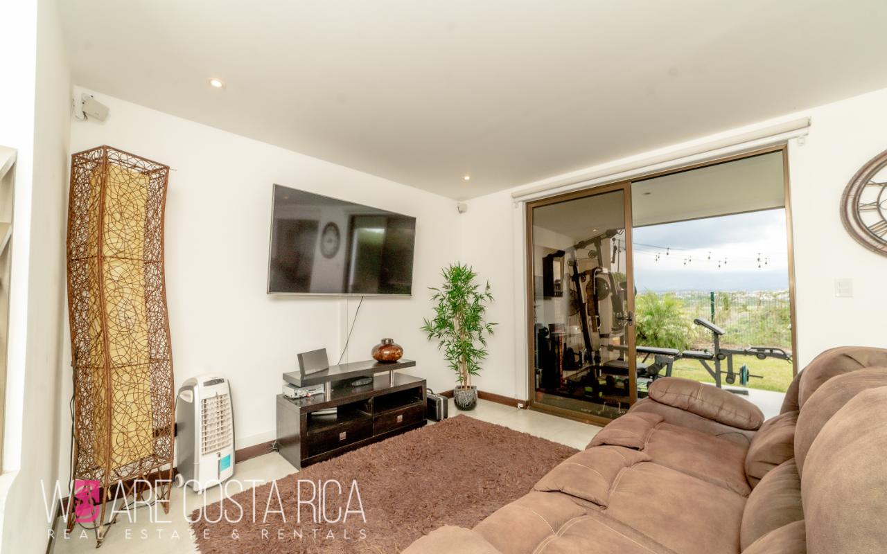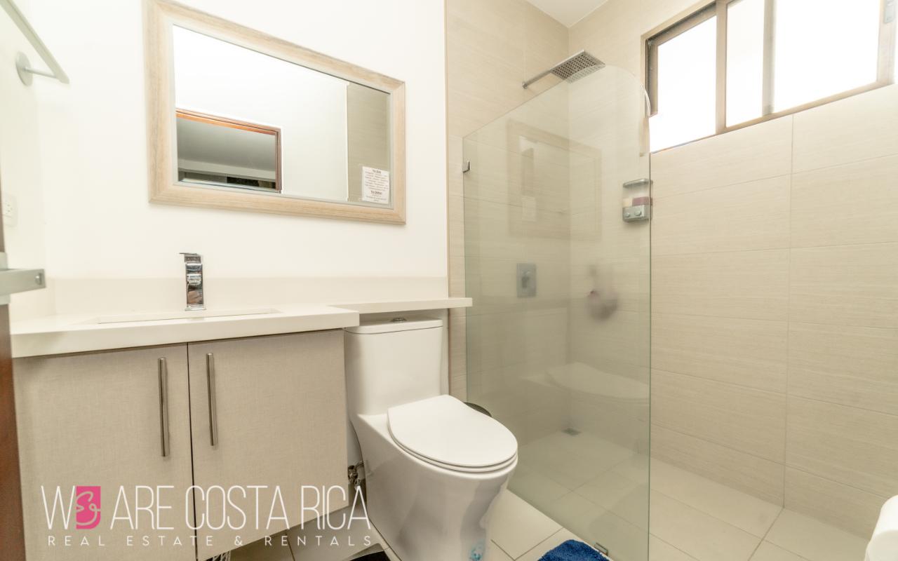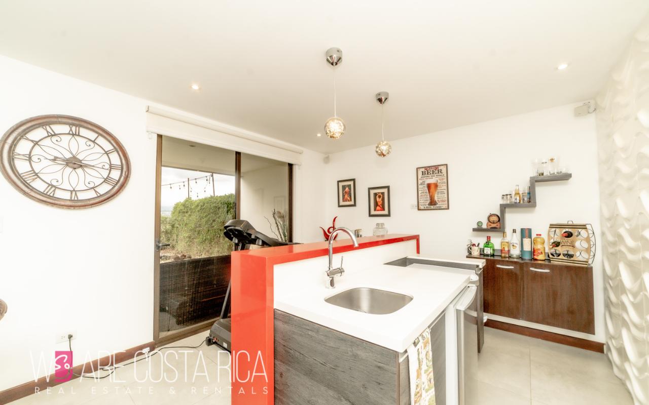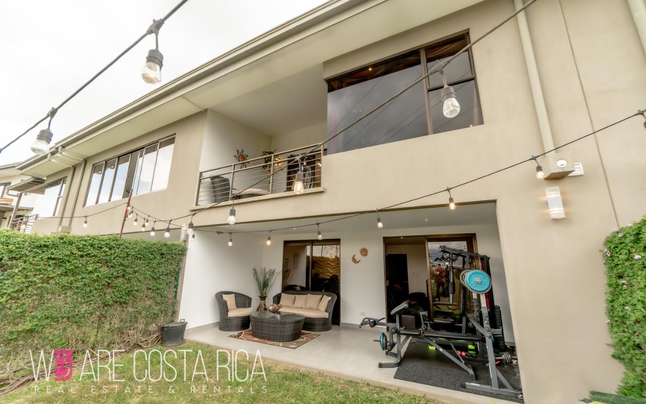 ID# 116811. House for sale in Guachipelín, Escazú, Bosques del Café condominium, 230 sqm construction, 150 sqm land, 3 bedrooms, 3.5 baths, US$320.000. Welcome to your dream home in Bosques del Café, an exquisite 3-story house nestled in the vibrant barrio of Guachipelín, Escazú. This remarkable property offers a modern living experience that will captivate your senses and leave you enchanted. With its impeccable design, top-notch amenities, and strategic location, this house is a true gem waiting to be discovered. Spanning across a generous 150 square meters of land, this meticulously crafted residence boasts a spacious and comfortable layout, providing ample room for you and your loved ones. With 230 square meters of thoughtfully designed construction, every inch of this property exudes elegance and sophistication. As you step inside, you are greeted by a stunning first floor that encompasses the dining room, kitchen, sink, and a convenient half bathroom. This open and inviting space is perfect for hosting memorable gatherings with friends and family. The sleek and modern kitchen is a culinary enthusiast's dream, ample storage, and stylish finishes that make cooking a delightful experience. Ascending to the second floor, you will find a captivating TV room where you can unwind and enjoy your favorite shows or movies. The main room is a sanctuary of tranquility, complete with a spacious walk-in closet and a private bathroom that exudes luxury. Two secondary rooms on this floor share a beautifully designed bathroom, ensuring comfort and privacy for everyone in the household. Venturing further, the third floor presents a unique surprise - a tranquil garden and terrace area. Step outside and immerse yourself in a serene outdoor oasis, perfect for relaxation and unwinding amidst the breathtaking natural surroundings. Additionally, there is a large TV room with a full bathroom, offering versatility and endless possibilities for entertainment or creating a dedicated space for hobbies and leisure activities. This remarkable house features three bedrooms, providing ample space for family members or guests. The three and a half baths are elegantly designed, showcasing modern fixtures and premium materials that add a touch of opulence to your daily routine. With air conditioning in all rooms, you can enjoy a comfortable living environment throughout the year, regardless of the weather. Convenience is paramount, and this house offers two indoor parking spaces, ensuring that your vehicles are secure and protected. The inclusion of a laundry area simplifies your daily chores, making tasks effortless and efficient. The property also boasts two amenity spaces, providing you with additional areas to relax, exercise, or socialize. Located in the desirable barrio of Guachipelín, Escazú, this house offers a plethora of advantages. Known for its upscale residential communities and thriving real estate market, Escazú is a highly sought-after destination. You'll find yourself surrounded by an array of amenities such as prestigious schools, world-class dining establishments, upscale shopping centers, and recreational facilities. The proximity to the vibrant capital city of San Jose, just a short drive away, ensures easy access to business hubs, cultural attractions, and entertainment venues. Don't miss the chance to make this extraordinary house your forever home. Contact us now to schedule a viewing and embark on a remarkable journey of comfort, and serenity.