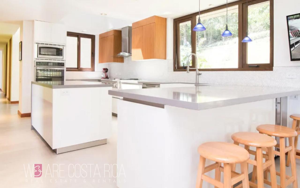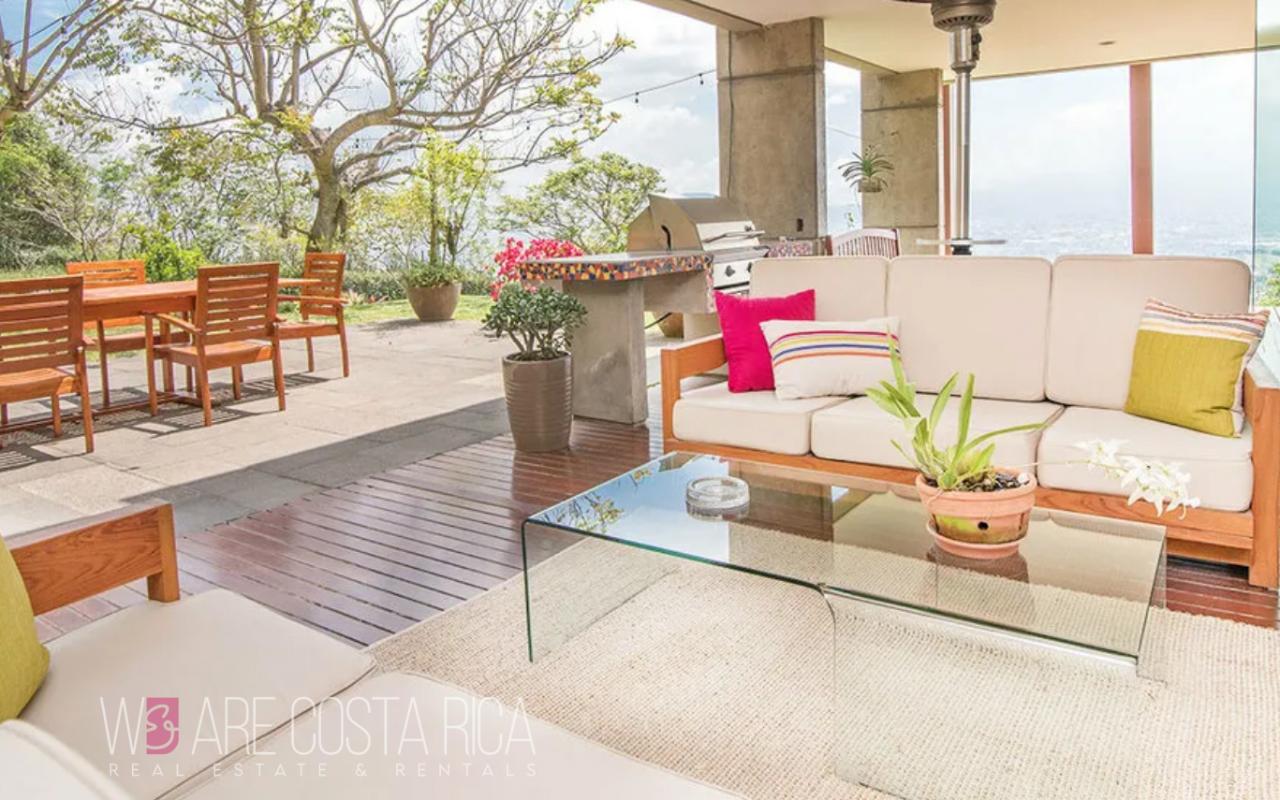 ID# 116816. Luxury house for sale in San Antonio, Escazú, 550 sqm construction, 10.800 sqm land, 4 bedrooms, 3 baths, US$2.000.000. Nestled within the breathtaking mountains of Escazú, Costa Rica, the magnificent Vista del Cielo unveils a world of unparalleled luxury and tranquility. This extraordinary residence, formerly known as The Escazú Mirador Home, is a true masterpiece of modern design, offering a seamless fusion of elegance, comfort, and panoramic vistas that will leave you in awe. Set on a sprawling 10.800-sqm land, this sanctuary of sophistication presents an unrivaled lifestyle for the discerning buyer seeking the pinnacle of mountain living. As you enter the gated entrance and make your way up the driveway, prepare to be captivated by the grandeur that awaits you. Aptly named Vista del Cielo, this mountaintop haven offers commanding views of San José's majestic Central Valley, showcasing a picturesque panorama that includes the iconic San Antonio Church, Costa Rica's National Stadium, the glittering city lights of San José, and the rolling peaks of several Central Valley volcanoes. This is where dreams of a blissful escape come to life. Step inside and be greeted by an open-design layout that effortlessly marries luxury with comfort. The grand social area, adorned with double-height ceilings and floor-to-ceiling windows, serves as the heart of the home, providing an immersive experience of the breathtaking vistas that surround you. Expansive glass doors open onto a terrace and dining area, seamlessly blending the indoors with the outdoors, allowing for a harmonious connection to nature. The exquisite dining area features a built-in white-Onyx buffet with custom internal lighting, adding a touch of sophistication to every meal. The terrace, with its elegant wood floors, wraps around the grand social area, providing an idyllic space to soak in the awe-inspiring views and creating an ambiance of serenity and tranquility. Enjoy dining with the built-in BBQ, or host memorable open-air events on the expansive flat garden. For a truly magical experience, venture up to the custom viewpoint deck, offering a captivating vantage point to witness the beauty of the surrounding landscape. Indulge your culinary desires in the custom wood-crafted kitchen, designed to satisfy the most discerning of chefs. Boasting black granite countertops, stainless steel GE and Whirlpool appliances, a gas stove and cooking range, and an integrated dining area, this kitchen is a haven for culinary creativity and entertaining. The service area on this level includes a full laundry and maid's quarters, ensuring convenience and functionality. Venture to the second floor to discover the private haven of Vista del Cielo. Here, you will find four bedrooms and three complete baths, all meticulously designed to provide comfort and tranquility. The master bedroom, a haven of serenity, boasts mesmerizing Central Valley views that can be enjoyed from both the room itself and the private balcony terrace. With high ceilings, a dedicated home/office area, a spacious walk-in closet, and an en-suite bathroom featuring his and hers sinks, white marble countertops, and a jacuzzi with a view, the master suite is a sanctuary of luxury and relaxation. Two of the bedrooms share a large bathroom, while the third bedroom enjoys the luxury of a private bath. Each bedroom features quartz countertops, wood cabinetry, porcelanato flooring, and American Standard fixtures. Additionally, one of the bedrooms offers a private terrace/balcony with enchanting backyard views. Beyond the extraordinary living spaces, Vista del Cielo encompasses a range of exclusive amenities and features. Covered parking for three vehicles, additional parking space, an independent caretaker's home, and ample storage area ensure convenience and practicality. Embrace sustainable living with a private electrical plant, a water reserve and pump, and an automatic sprinkler system. Every detail has been thoughtfully considered to elevate your living experience to new heights. Vista del Cielo is more than just a luxury residence; it is a haven of privacy and serenity, offering the perfect escape from the bustling city below. Immerse yourself in the splendor of nature while enjoying the modern comforts and cutting-edge design that this residence embodies. Experience the epitome of mountain living, where every day is a celebration of beauty, tranquility, and uncompromising luxury. Discover your sanctuary at Vista del Cielo, a hidden treasure in the mountains of Escazú. Contact us today to embark on a journey of unsurpassed grandeur and create a legacy of refined living amidst Costa Rica's natural splendor.