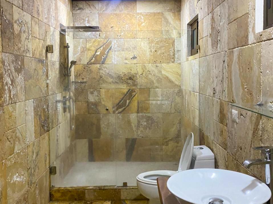 ID# 116832. Contemporary home for sale in La Guácima, Alajuela, Hacienda Los Reyes condominium, 550 sqm construction, 1.000 sqm land, 5 bedrooms, 5 baths, US$575.000. Spanning across 1.000 sqm of land, this remarkable property showcases a construction of 550 sqm, meticulously designed and thoughtfully crafted to provide a residence that exceeds expectations. As you approach the house, you are greeted by a grand entrance, with a driveway leading to a garage capable of accommodating 4 large vehicles, both under a roof and without a roof. The garage features an electric gate, providing security and ease of access for you and your family. Entering the house, you are welcomed into an anteroom adorned with exquisite guanacaste wood furniture, setting the tone for the elegance that awaits. The first floor boasts a porcelain floor throughout, adding a touch of sophistication to the living spaces. The dining room provides an ideal setting for memorable gatherings and culinary experiences, while the kitchen showcases guanacaste wood furniture, granite and quartz countertops, combining style and functionality seamlessly. The first floor also features a convenient laundry room and drying room, ensuring that your day-to-day chores are handled with ease. Additionally, an office with air conditioning provides a dedicated space for work or study, offering privacy and comfort. Two rooms with air conditioning and wall-to-wall cedar wood closets are also found on this floor, each with a full bathroom lined from floor to ceiling with exquisite marble and adorned with sliding glass doors. The bathroom furniture is crafted from cedar wood, adding a touch of warmth and natural beauty to the space. Completing the first floor is a full bathroom with marble veneer, cedar wood furniture, and a shower with a glass door. An external porcelain tile terrace provides a seamless connection between indoor and outdoor living, with access to the house through double glass doors. Moving to the second floor, you will discover an enchanting space adorned with imported one-inch almond wood flooring. This floor features a common area or TV room, perfect for relaxation and entertainment. Three bedrooms grace this level, including the master bedroom, which is equipped with air conditioning, a walk-in closet with a full-length mirror, and a luxurious bathroom veneered from floor to ceiling with marble. The master bathroom boasts a bath cabinet with a double sink, crafted from elegant cedar wood, and sliding glass doors. Two additional bedrooms with air conditioning and wall-to-wall cedar wood closets offer comfortable spaces for family members or guests. Another full bathroom with marble veneer, cedar wood furniture, and a shower with sliding glass doors is conveniently located on this floor. A unique room-oratory with air conditioning and three handmade stained glass windows adds a touch of spirituality and serenity to the home. An internal terrace with A/C and safety glass from floor to ceiling creates a tranquil sanctuary within the residence. All the doors of the rooms on the second floor are made of beautiful cedar wood, adding a touch of natural elegance. The attic of the house is exceptionally spacious, boasting a kerosene wood floor. This versatile area can be transformed into a playroom, home theater, or a personalized space to suit your specific needs and preferences. Throughout the house, a total of 16 doors are crafted from cedar wood, showcasing the attention to detail and commitment to quality that defines this residence. A solar tank supplies hot water to the entire house, offering energy efficiency and environmentally-friendly living. The roof is adorned with asphalt shingles, ensuring durability and protection for years to come. This magnificent house in Hacienda Los Reyes presents an extraordinary opportunity to own a residence that encapsulates the epitome of luxury living. With its spacious land, impeccable construction, and a myriad of thoughtful features, this home offers an exceptional living experience for you and your family. Don't miss the opportunity to make this exceptional house your new home.