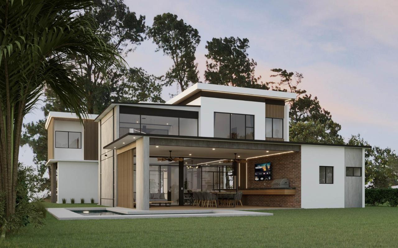 ID# 116945. House for sale in La Guácima, Hacienda Los Reyes, 350.73 m2 of construction, 647 m2 of land, 4 bedrooms, 4 bathrooms, US$559,000. This majestic two-story residence has been meticulously designed to satisfy the most discerning tastes. With a construction area of 350.73 m2, every detail has been carefully considered to provide a luxurious and comfortable lifestyle. Upon entering the house, you are greeted by a covered carport for two vehicles, with additional space for a storage unit, allowing you to keep your home impeccably organized. On this level, you will also find a versatile bedroom/office that can be adapted to your personal needs. This space benefits from a full bathroom, which also serves as a guest bathroom, perfect for welcoming guests with style and comfort. The kitchen, living room, and dining area are presented in an open-concept design, creating a spacious and inviting environment that is ideal for family living and entertaining. The kitchen is equipped with the latest amenities and high-quality finishes, making it the perfect place to explore your culinary creativity. Additionally, the first level features a convenient laundry area and a maid's room with a bathroom, ensuring that all your daily needs are effortlessly met. From the living area, you can access an impressive terrace that opens onto an exquisite pool, perfect for relaxing and enjoying Costa Rica's tropical climate. The second level houses two secondary bedrooms, each with its own private bathroom. These rooms offer ample space and high-quality finishes for maximum comfort. You will also find a TV room on this level, which is ideal for home movie nights or quality family time. The master bedroom is a masterpiece in itself. This private sanctuary features an en-suite bathroom and a walk-in closet, providing you with a luxurious personal space to relax and rejuvenate. Additionally, from the master bedroom, you can access a private balcony where you can enjoy panoramic views of the surroundings and contemplate the natural beauty of the environment. Living in Hacienda Los Reyes, La Guácima de Alajuela, offers an exclusive lifestyle in a natural and secure environment. This community features modern infrastructure, luxury amenities such as a golf course, tennis courts, and a social club, along with strict security measures. Its strategic location allows easy access to essential services and San José, offering a perfect balance between tranquility and urban convenience. Investing in a property here is a smart decision, as property values tend to appreciate over time.